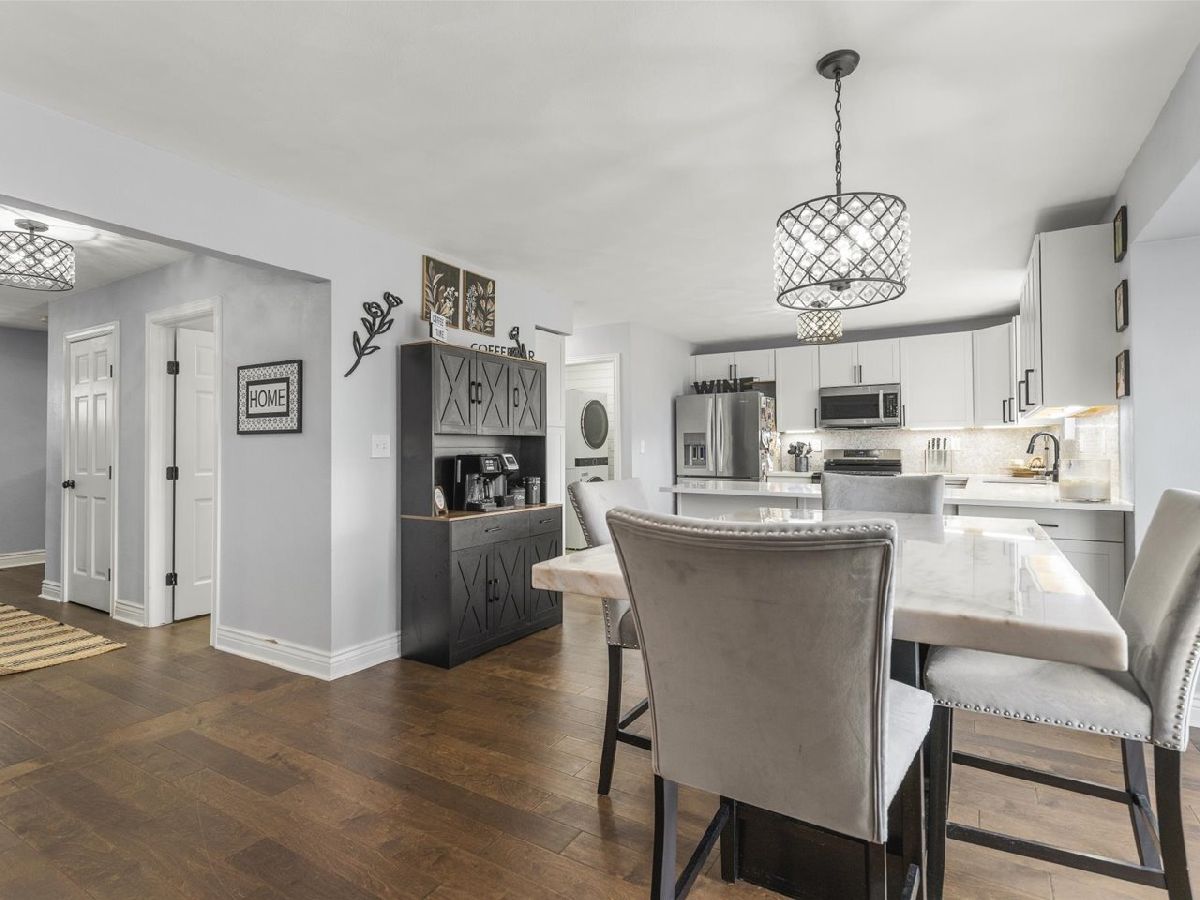 Step inside to find beautiful Birch hardwood floors and a bright, modern kitchen featuring quartz countertops, a tiled backsplash, under-cabinet lighting, crisp white cabinetry, and updated appliances. An eat-in dining area and open living room make this space ideal for entertaining, while a formal dining room provides additional flexibility for gatherings. Off the entryway, enjoy a den/second living space or the perfect home office. Convenient first-floor laundry with shiplap accents sits just off the attached 3-car garage. Upstairs offers four generous bedrooms, including a spacious primary suite with a large walk-in closet, dual sinks, and a luxurious tiled shower. All bathrooms throughout the home have been tastefully updated. The fully renovated lower level adds even more living space with a potential fifth bedroom and its own bathroom, along with an additional rec room/living area-great for guests, hobbies, or extra privacy. Outside, enjoy a fenced backyard with a deck and brick patio-ideal for outdoor dining and relaxation. Located close to restaurants, shopping, highway access, Rock Cut State Park, and the bike path, with a playground nearby for added convenience. Roof: 2020 Furnace:2024