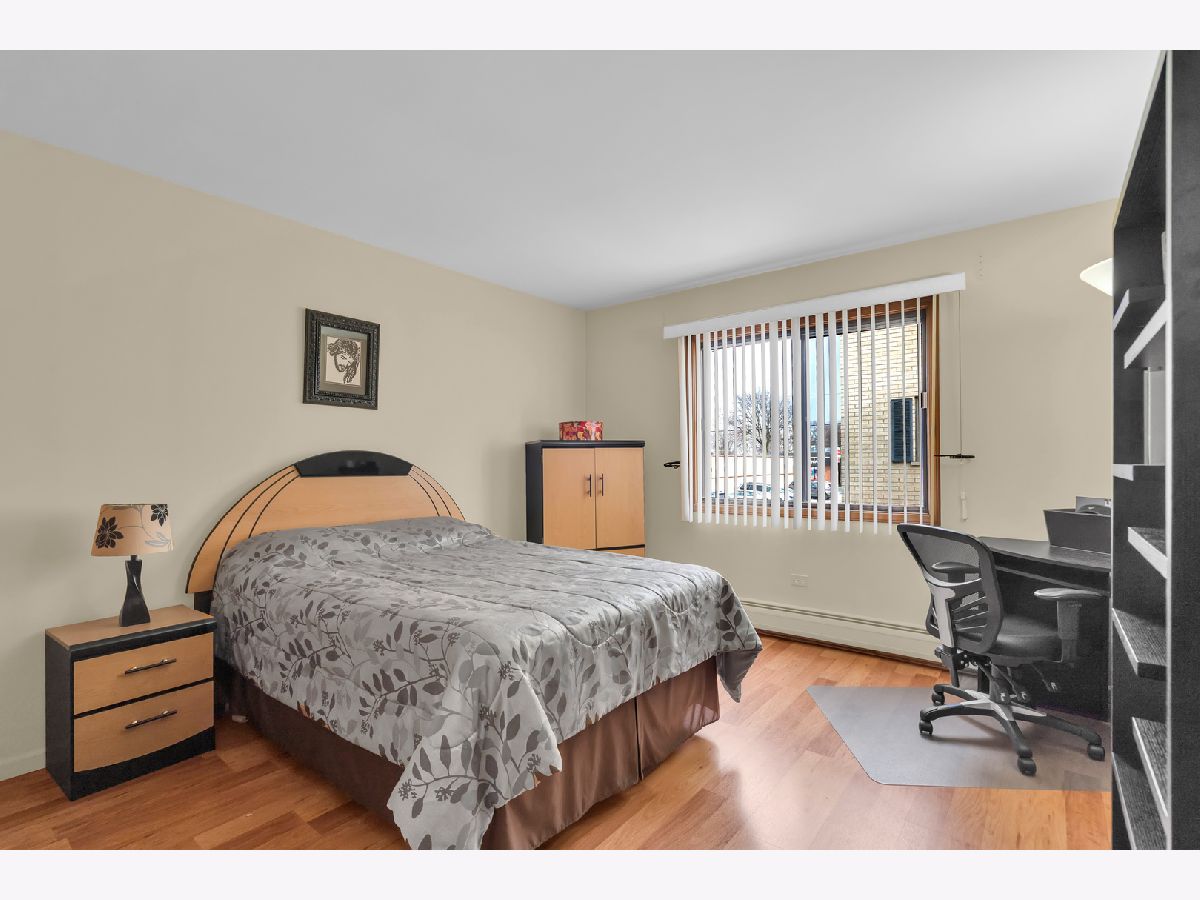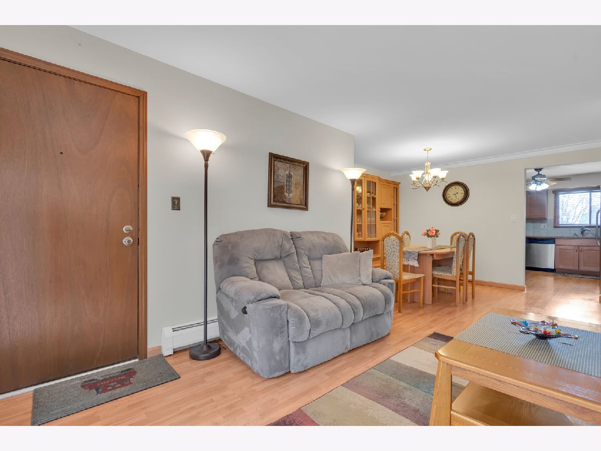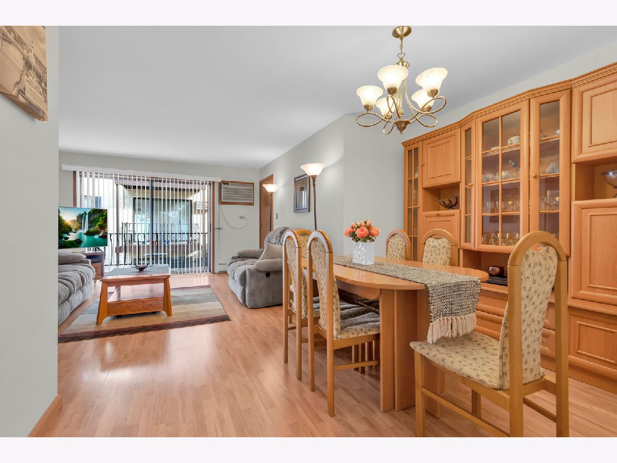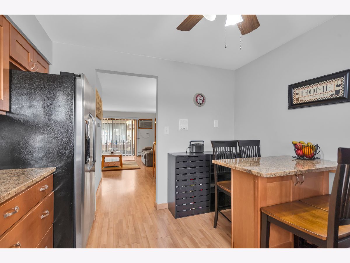Second floor beautiful condominium in Elmwood Park with walking distance to Metra and shopping. Living/dining combo with access to balcony. Gorgeous custom- made kitchen cabinets and granite counter tops. Stainless steel appliances. Ceramic tile bathroom. Pergo floors. Lots of closet space. Roof was replaced in 2023.Coin laundry and additional storage in a basement. Heat, water and gas included in assessment. Assigned parking space at the north side of building. No rentals.Very clean and ready to move in unit.