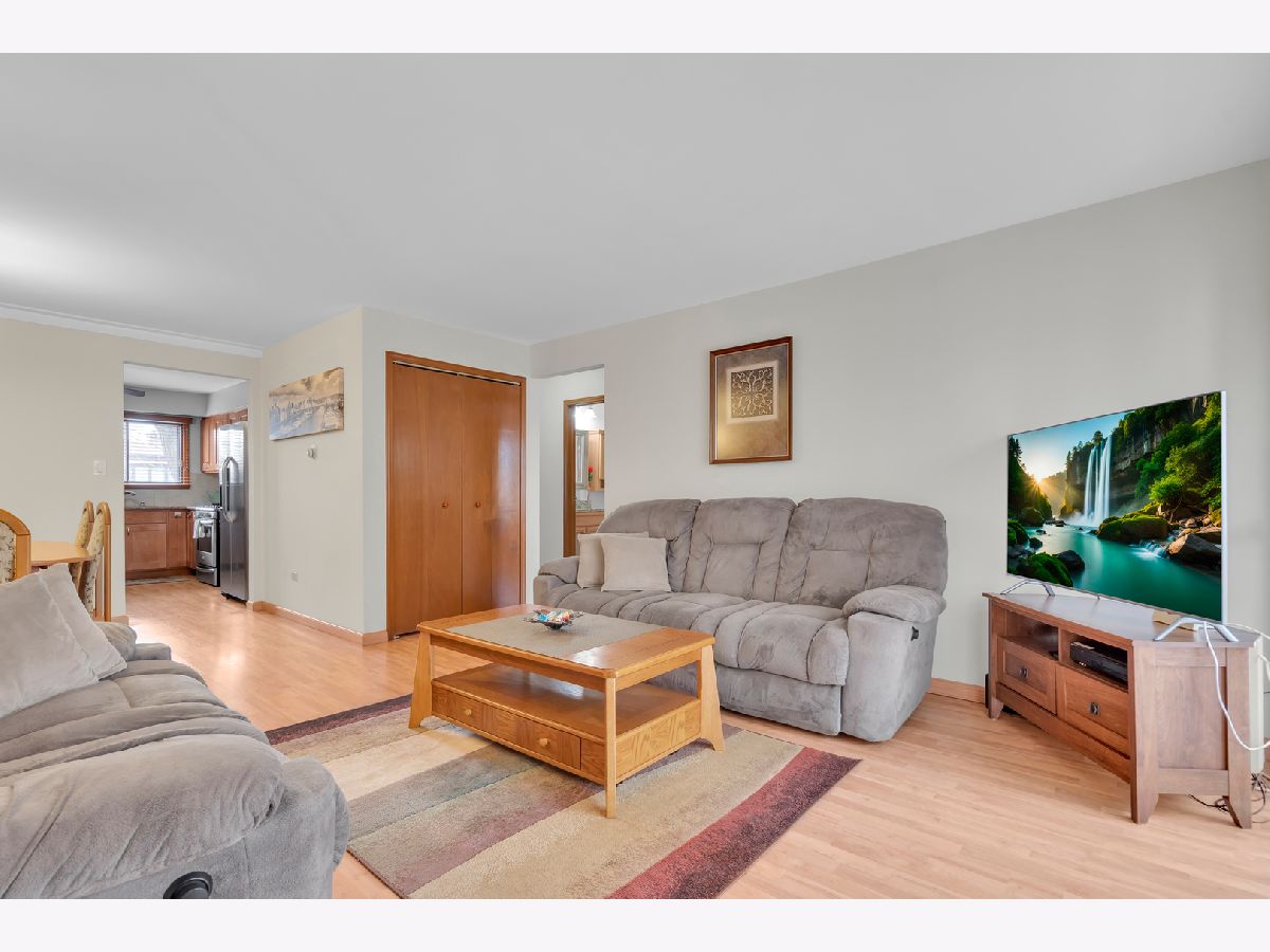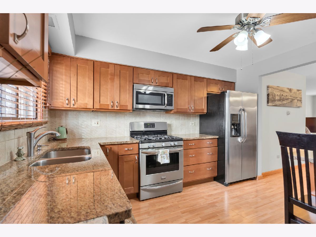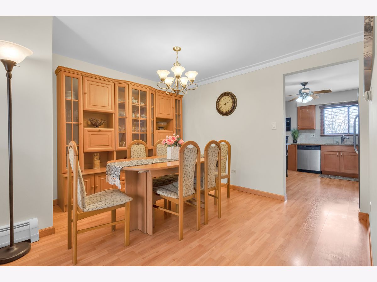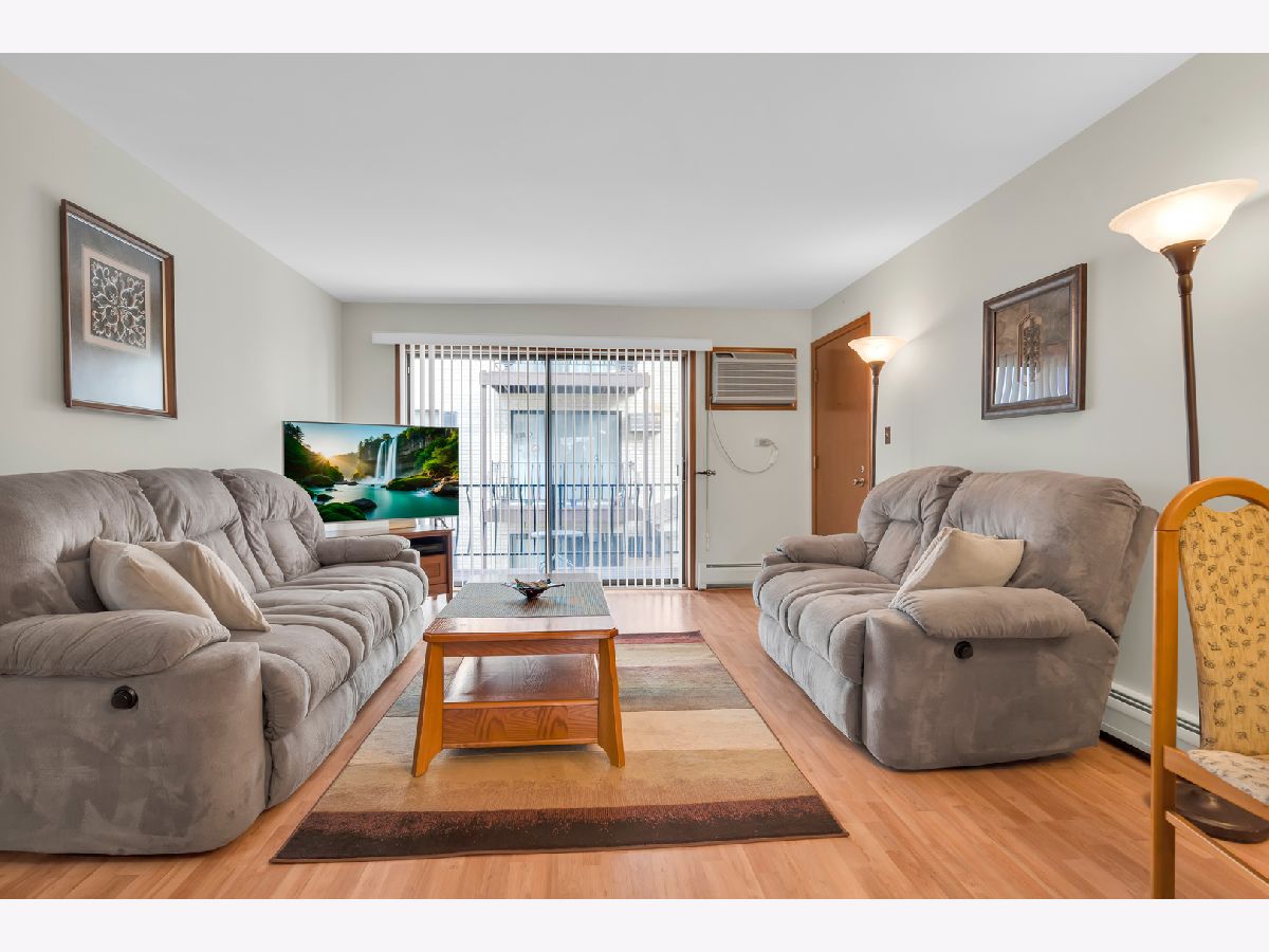 Second floor beautiful condominium in Elmwood Park with walking distance to Metra and shopping. Living/dining combo with access to balcony. Gorgeous custom- made kitchen cabinets and granite counter tops. Stainless steel appliances. Ceramic tile bathroom. Pergo floors. Lots of closet space. Roof was replaced in 2023.Coin laundry and additional storage in a basement. Heat, water and gas included in assessment. Assigned parking space at the north side of building. No rentals.Very clean and ready to move in unit.