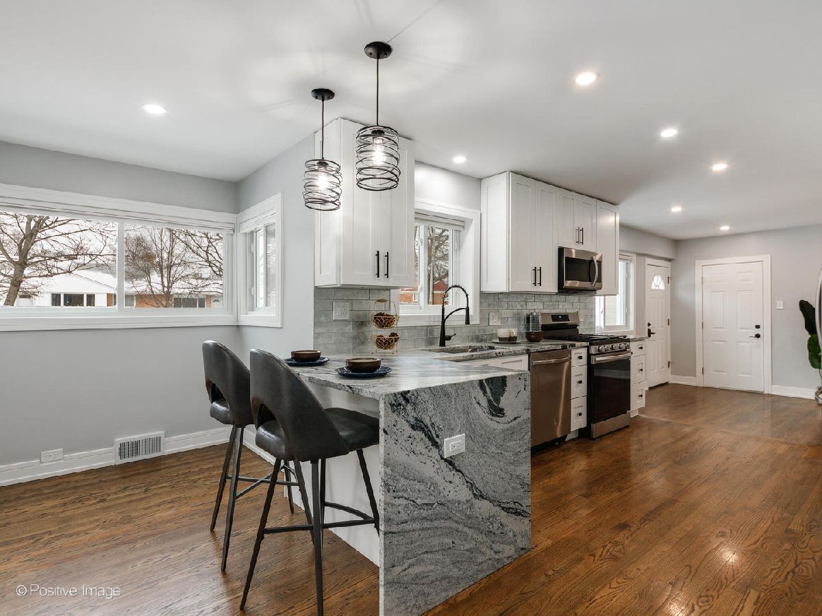 Completely Remodeled, Jumbo split level home with 4 bedrooms and 2 1/2 bathrooms with over 2500 square feet of total living space. Located in super desirable Lincolnwood, this home has newer everything; Kitchen, bathrooms, windows, floors, HVAC, plumbing, electric, appliances, etc. Centrally positioned kitchen with solid wood, white custom cabinetry blended with exquisite leathered quartzite countertops, stainless steel appliances, custom backsplash, beverage/wine cooler, and breakfast bar. Perfectly positioned dining room, large living room and family room with powder room. Second level has 3 well sized bedrooms and beautiful marble bathroom. Lower level has large family room, another beautifully finished bathroom, laundry and mechanical room. Newer patio in rear with lounge area (with TV) and fenced in yard. 2 car attached garage! Everything in this home is newer and ready for you to move in.