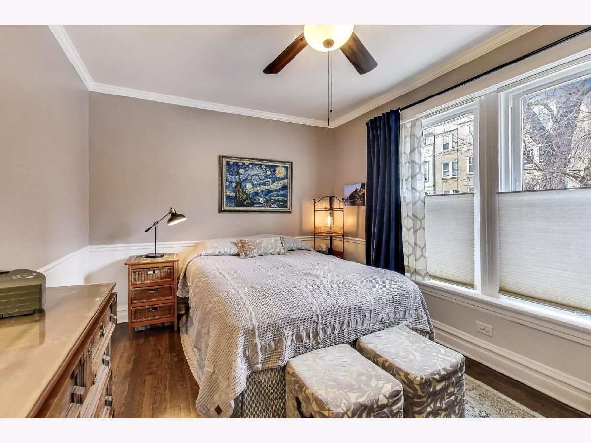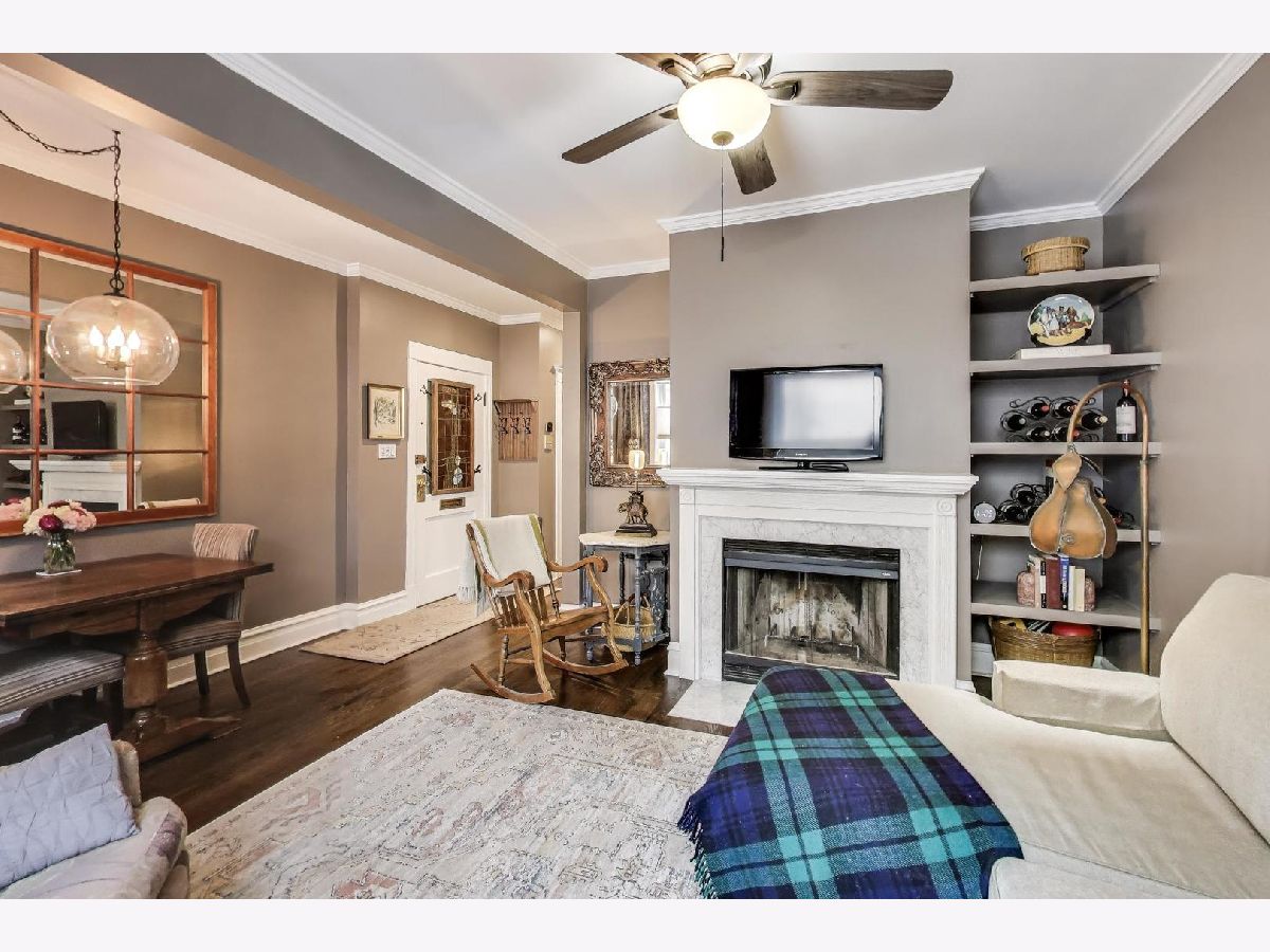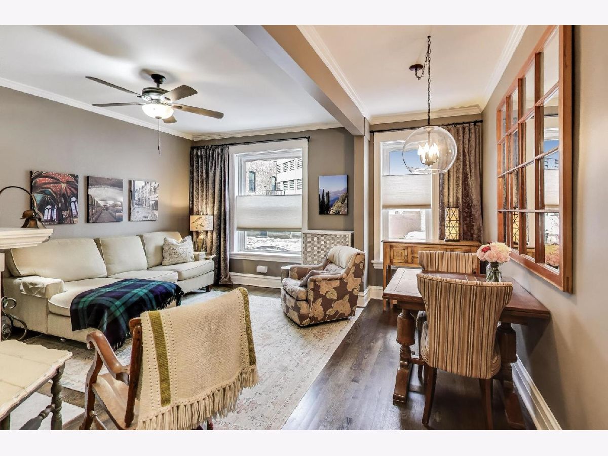 This charming vintage condo is located in the heart of Lincoln Park in a lovely brick building on the corner of Belden and Burling Street, combining historic character with modern updates. The unit was professionally painted, hardwood floors refinished, LVT flooring installed in kitchen 2023 and features new windows installed in 2022, plus the added comfort of central AC alongside cozy radiator heat, with all radiators fitted with custom protective covers. Upon entering, residents are greeted by a gracious living/dining room centered around a wood-burning fireplace detailed with elegant white and grey marble stone. The updated kitchen boasts stainless steel appliances (stove, refrigerator, and dishwasher added in 2022). The two large bedrooms offer generous closet space with organizers; both have hardwood flooring and ceiling fans. The bathroom was fully renovated in 2018 with a new layout, marble flooring, an oversized tub with a glass door, new vanity, and a built-in Bluetooth speaker. In-unit laundry is provided by a ventless combo washer/dryer conveniently housed in a large storage cabinet with built-in shelves. There is a dryer vent that has been capped in case one wants to install a stackable unit that's vented. Building amenities further enhance convenience with an additional free laundry room (two washers and two dryers), bike storage, and a private 6x6 storage room in the basement. Residents benefit from easy permitted parking, and the monthly assessment covers radiator heat, hot water, trash and recycling service and common area cleaning. This non-smoking, gated, secured, and extremely well-managed building is financially sound with good reserves, continual roof maintenance, updated tuckpointing, new boiler in 2023 and hot water heater in 2019. Cats are welcome, though dogs are not allowed. The superb Lincoln Park location provides immediate proximity to the Lakefront, Oz Park, the Lincoln Park Zoo, numerous shopping, bar, and restaurant options, DePaul University, Trader Joe's at Orchard and Diversey, and the Fullerton CTA station (Red, Brown, and Purple Lines). May be rented after 1 year owner occupancy. 3 unit rental cap. 1 rented.