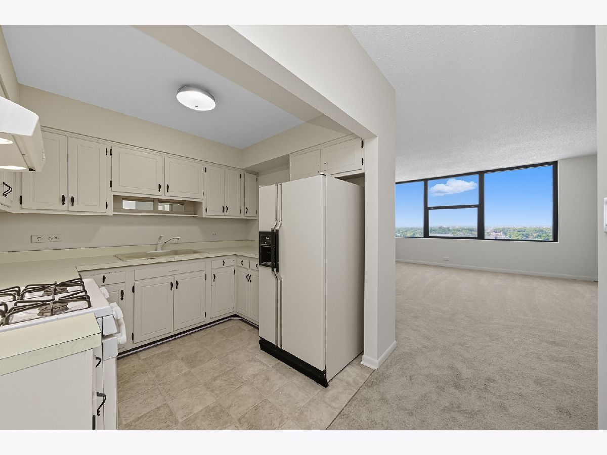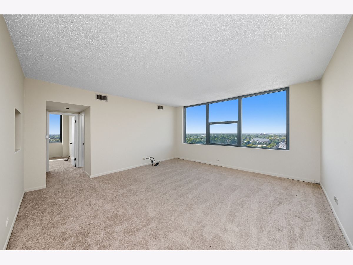 Welcome to this bright and spacious 2-bedroom, 1-bath condo perched on the 17th floor of a well-maintained 18-story building. The views are extraordinary! With multiple elevators, this building is easily accessible for everyone. Freshly updated with brand-new carpet and new paint, this home offers sweeping views you can enjoy year-round. The open living and dining space flows seamlessly, creating a comfortable setting for everyday living or entertaining. The white cabinets in the kitchen keep the unit feeling bright, and there is plenty of countertop space for cooking. Laundry is available on every floor, and a private, secure storage unit is in the laundry room for you. Enjoy a party room on the top floor with views of the city or spend time out on the deck and enjoy the pool! Ideally located with easy access to shopping, dining, and the vibrant downtown areas of both Forest Park and Oak Park, this condo combines comfort and convenience in one.
