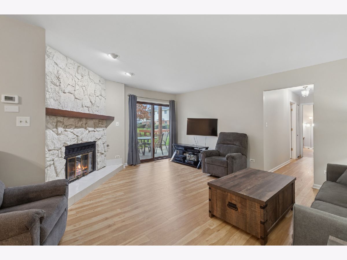 Welcome to 724 Maplewood Court, a beautifully maintained 3-bedroom, 2-bath end-unit ranch with an attached garage and in-unit laundry offering comfort, convenience, and true one-level living. As you step inside, you are welcomed by a spacious living room featuring a stunning stone fireplace as its focal point. Large sliding glass doors fill the room with natural light and lead directly to a private, beautifully landscaped patio, perfect for morning coffee, outdoor dining, or relaxing afternoons. Adjacent to the living room is a generous dining room, ideal for hosting family and friends. The bright eat-in kitchen offers plenty of cabinetry, ample counter space, and room for a breakfast table, making it both functional and inviting. Down the hall, the primary suite provides exceptional comfort with two large closets and a private master bath complete with a walk-in shower. Two additional bedrooms offer flexibility for guests, a home office, or extra storage, and are conveniently located near the second full bath. This end-unit ranch also features loads of storage throughout, ensuring everything has its place. The attached garage adds everyday convenience and ease of access and is located at the far right of the row when facing the building. With its ideal layout, abundant natural light, and desirable single-story design, this home is a wonderful opportunity in a great location. Not FHA approved.