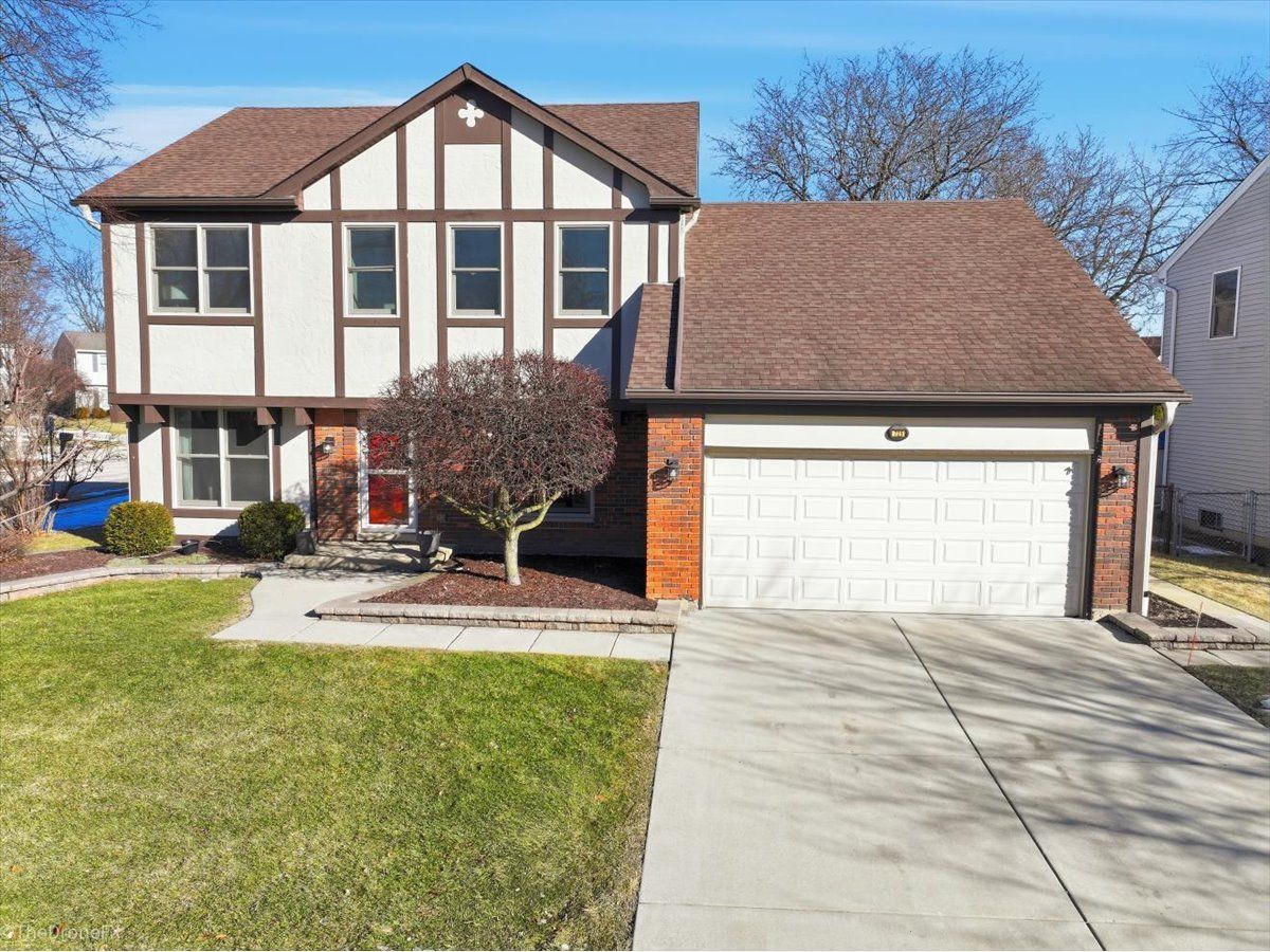 Welcome to 725 Leslie Lane, in popular Sheffield Estates! This inviting 4-bedroom, 2.1-bath home with a rarely offered first-floor den features hardwood floors throughout the main level, a cozy family room with stacked-stone fireplace, and an updated kitchen featuring white cabinetry, granite countertops, stainless-steel appliances, and a center island. Upstairs, the primary suite includes double closets and an updated ensuite bath, while three additional bedrooms share an updated hall bath. Enjoy outdoor living on a professionally landscaped corner lot with a paver patio and decorative half wall-perfect for relaxing or entertaining. Prime interior location on quiet a cul-de-sac. Numerous updates include: concrete driveway, gutter guards, underground downspouts, epoxy garage floor, garage door and opener, windows and roof ('09), siding ('11), and furnace ('17). The neat and clean basement is ready for your finishing touches with lots of storage in the encapsulated crawl space with vapor barrier. Located in highly desired SD 54 and HS 211, close to parks, elementary school, walking paths, shopping, Metra, and easy I-90 access. This move in ready home will check all your boxes!!