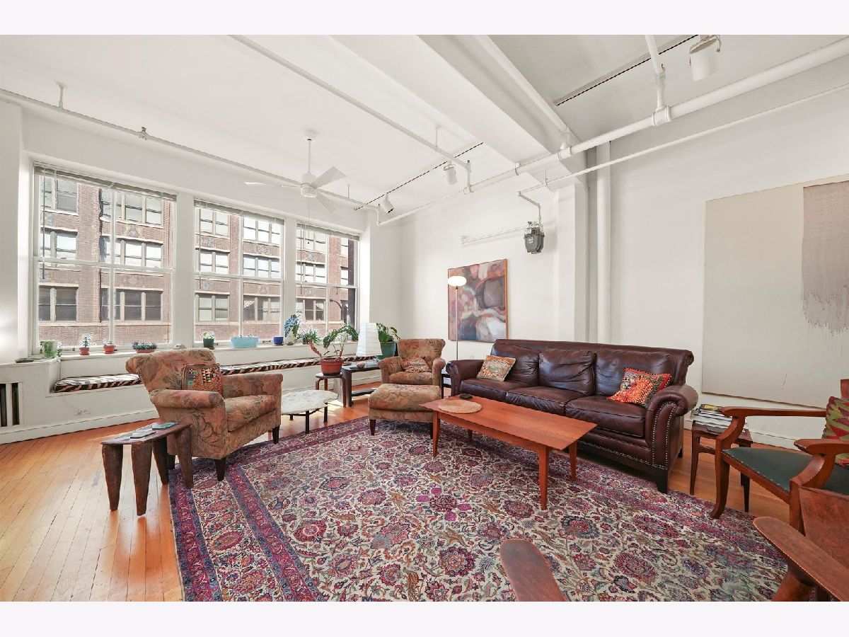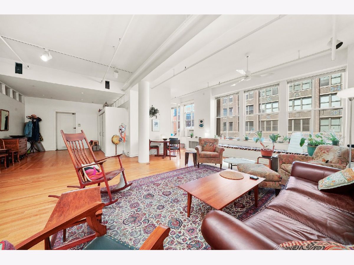 Rare opportunity to own a truly iconic Chicago loft in the historic Donohue Building, widely recognized as one of the city's first industrial-to-residential conversions by legendary architect Harry Weese. Spanning nearly 3,000 square feet from Dearborn to Plymouth, this expansive concrete loft offers exceptional scale, character, and provenance-rumored to have been originally designed as Weese's own residence. Bathed in natural light from both east and west exposures, the home features soaring 10+ ft ceilings, oversized 7-ft windows with built-in seating, and the authentic architectural elements loft buyers seek-exposed columns, hardwood floors, and original structural detailing built to support the building's printing press history. The kitchen is the heart of the home, featuring an oversized island (plumbed for gas), and an impressive walk-in pantry offering exceptional storage rarely found in loft living. Adjacent to the kitchen, a stunning library/media room showcases a unique curved ceiling and terrazzo flooring, an unforgettable space perfect for movie nights, gatherings, or creative use. The private primary suite offers a peaceful retreat with a spacious sitting area, an oversized dressing room lined with closets, and a well-appointed bath. Additional features include in-unit laundry, abundant storage throughout, and direct access to a freight elevator for easy move-in/out of large furnishings or artwork. Constructed in the building's concrete section, you'll benefit from substantial sound insulation, uncommon in loft buildings. Residents also enjoy access to the building's historic birdcage elevator, one of the few remaining in Chicago. Located in the heart of Printers Row, this home is surrounded by some of the city's most charming cafes, restaurants, bookstores, and the beloved weekly farmers market. Easy access to public transportation, major expressways, and the Loop makes this an unbeatable location for both lifestyle and convenience. Deeded garage parking available. This is more than a home, it's a piece of Chicago architectural history.