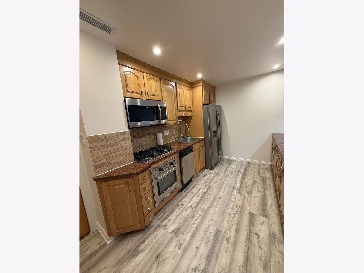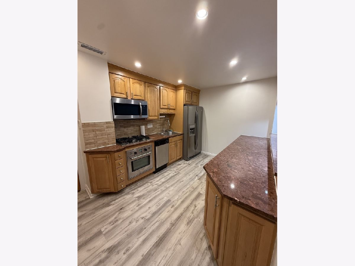 Spacious and freshly remodeled, this 2-bedroom, 1-bath condo offers 1,100 sq ft of comfortable living in a desirable location. The unit features brand new LifeProof flooring throughout, granite kitchen countertops, stainless steel appliances, oak cabinets, and a beautifully finished bathroom. The primary bedroom includes a walk-in closet which currently holds a washer and dryer, and large windows provide lovely views of the landscaped tennis courtyard and park. Community amenities include tennis and basketball courts, soccer fields, and walking paths. Monthly assessment covers heat, water, and cooking gas! This vacant unit allows for a quick closing and immediate move-in, ideal for both investors and owner-occupants. Rentals are permitted. Convenient location near shopping, dining, schools, and public transportation.