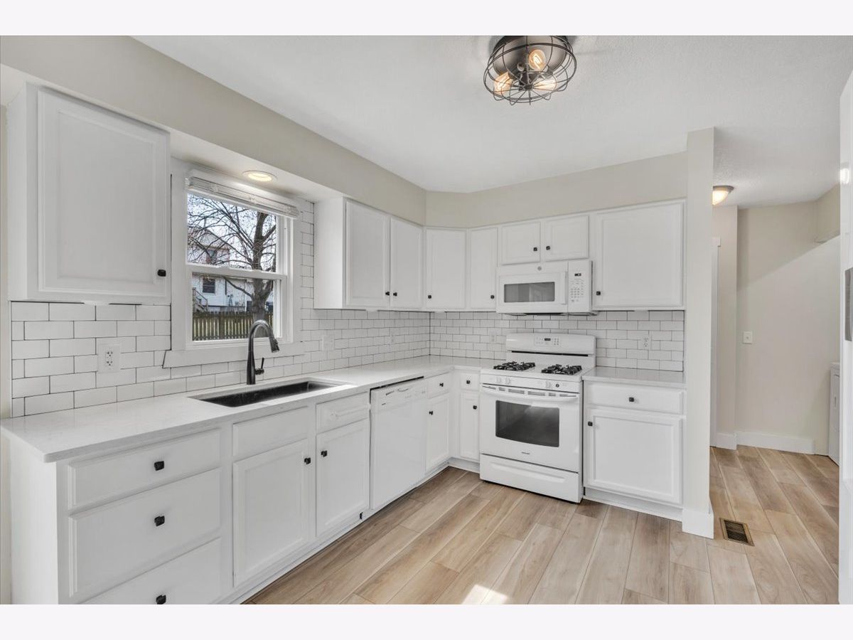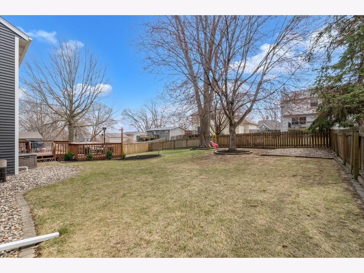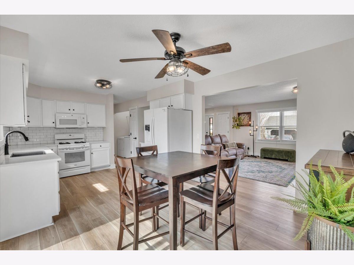 This move-in ready home offers a clean, updated feel inside and out, with great curb appeal, fresh mulch, and clean, well-maintained landscaping. The fully fenced backyard features a spacious deck and well-kept outdoor space that's perfect for relaxing or entertaining. The main level features new luxury vinyl flooring (2025) and an updated kitchen with quartz countertops, updated hardware, sink, faucet, and garbage disposal (2020). Upstairs, the full bathroom was completely updated in 2022 with a new tub and shower, tile flooring, shiplap detail, vanity, and fixtures, along with fresh paint throughout the upper level. Major exterior improvements include new roof, siding, and gutters (2023), along with a new garage door (2025). Additional updates include furnace (2019), water heater (2022), new carpet in the basement and stairs (2025), and a new washing machine (2026).