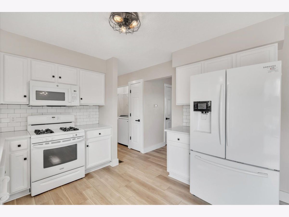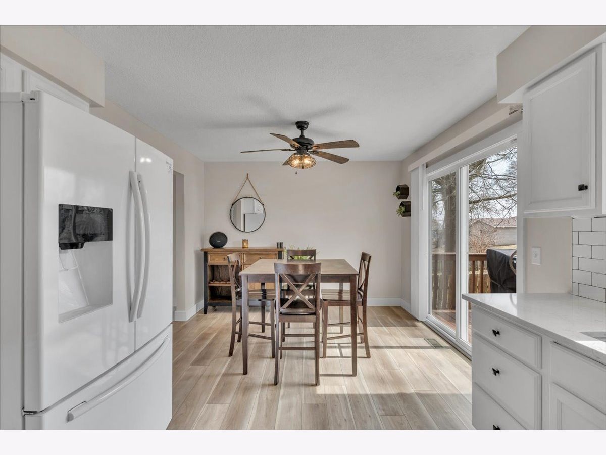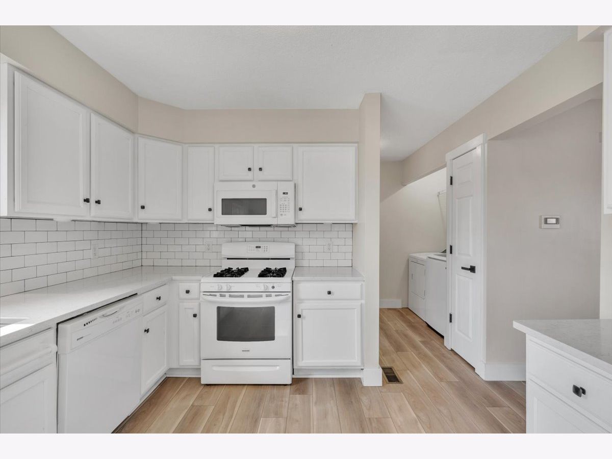 This move-in ready home offers a clean, updated feel inside and out, with great curb appeal, fresh mulch, and clean, well-maintained landscaping. The fully fenced backyard features a spacious deck and well-kept outdoor space that's perfect for relaxing or entertaining. The main level features new luxury vinyl flooring (2025) and an updated kitchen with quartz countertops, updated hardware, sink, faucet, and garbage disposal (2020). Upstairs, the full bathroom was completely updated in 2022 with a new tub and shower, tile flooring, shiplap detail, vanity, and fixtures, along with fresh paint throughout the upper level. Major exterior improvements include new roof, siding, and gutters (2023), along with a new garage door (2025). Additional updates include furnace (2019), water heater (2022), new carpet in the basement and stairs (2025), and a new washing machine (2026).