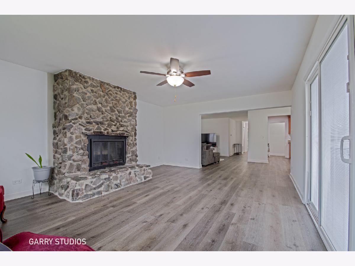 Sprawling move-in-ready ranch home with stair-free living and all major updates already taken care of! This home features four bedrooms, two updated full bathrooms, new vinyl flooring (2021), a cozy gas-burning fireplace, and a nice kitchen with a tile backsplash and plenty of storage. Major improvements include a new roof (2022), gutters (2022), leaf guards (2022), siding on house, garage, shed (2022), windows (2019), furnace (2021), air conditioning (2021), water heater (2021), washer and dryer (2021), driveway (2024), and a radon mitigation system. The fully fenced yard offers great outdoor space, two sheds, patio, and an extra deep two-car detached garage. Perfectly situated on a quiet cul-de-sac near parks, trails, shopping, dining, and major commuter routes such as 290 and I-90, this home offers comfort, convenience, and access to District 54 and District 211 schools.