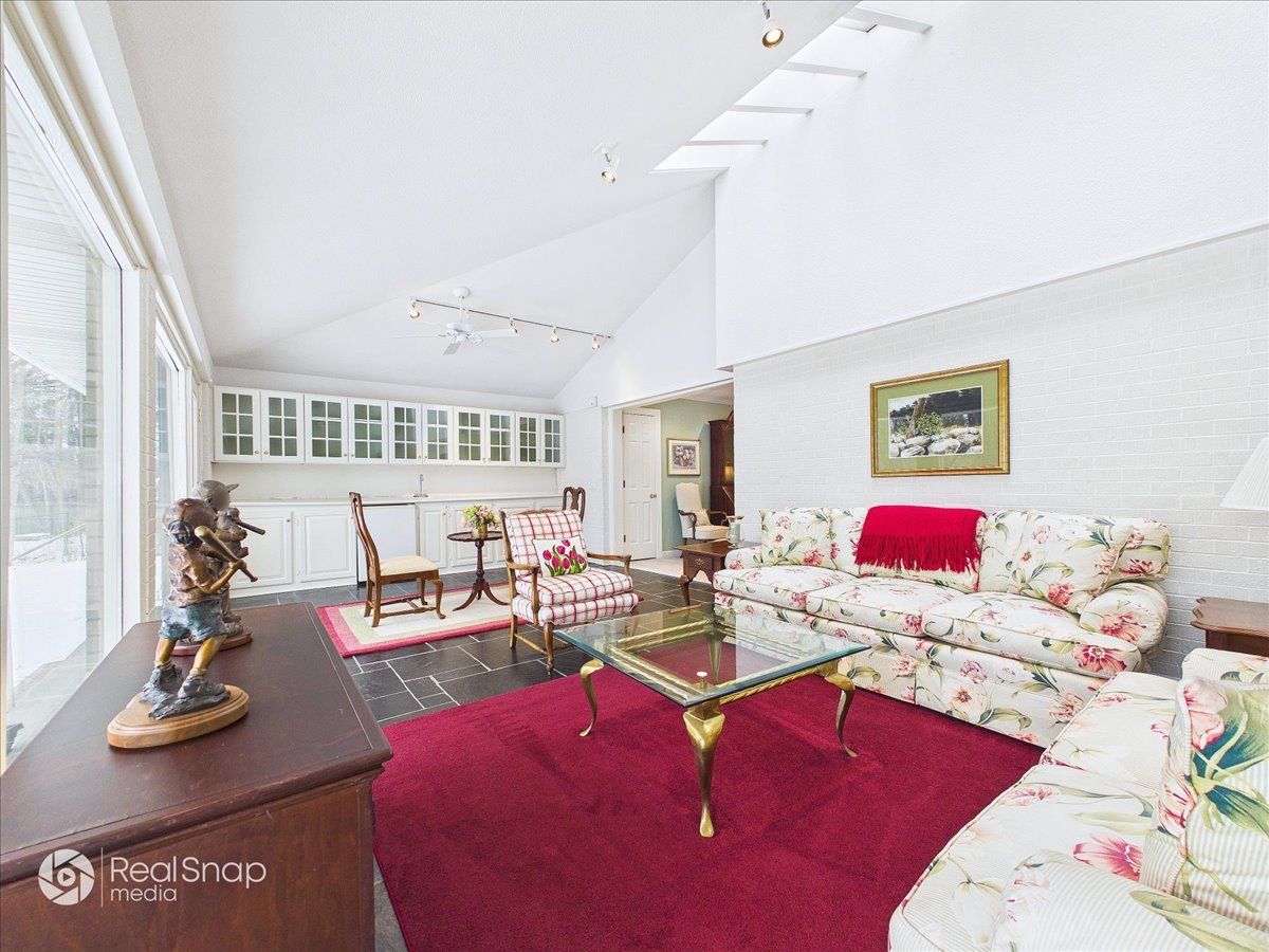 Sprawling 50's ranch in prime location to schools and downtown Lake Forest. 33 x 14 Sunroom with slate floor, wet bar, vaulted ceiling, skylights and sliding doors to fenced backyard. Sunroom is back-to-back with living room and has 2 entries from the living room. Paneled den with vaulted and beamed ceiling can also serve as office or another bedroom as it has a closet. Kitchen with island, plenty of cabinets with pull out drawers, newer refrigerator, stove, ovens, stone floor and breakfast nook that accommodates table. Hall bath remodeled with Kohler cast iron tub, new tile, toilet, and granite countertop. 3rd bedroom and full bath are in the basement. Garage has epoxy floor and built-in cabinets. 2,866 sq ft AS IS sale.