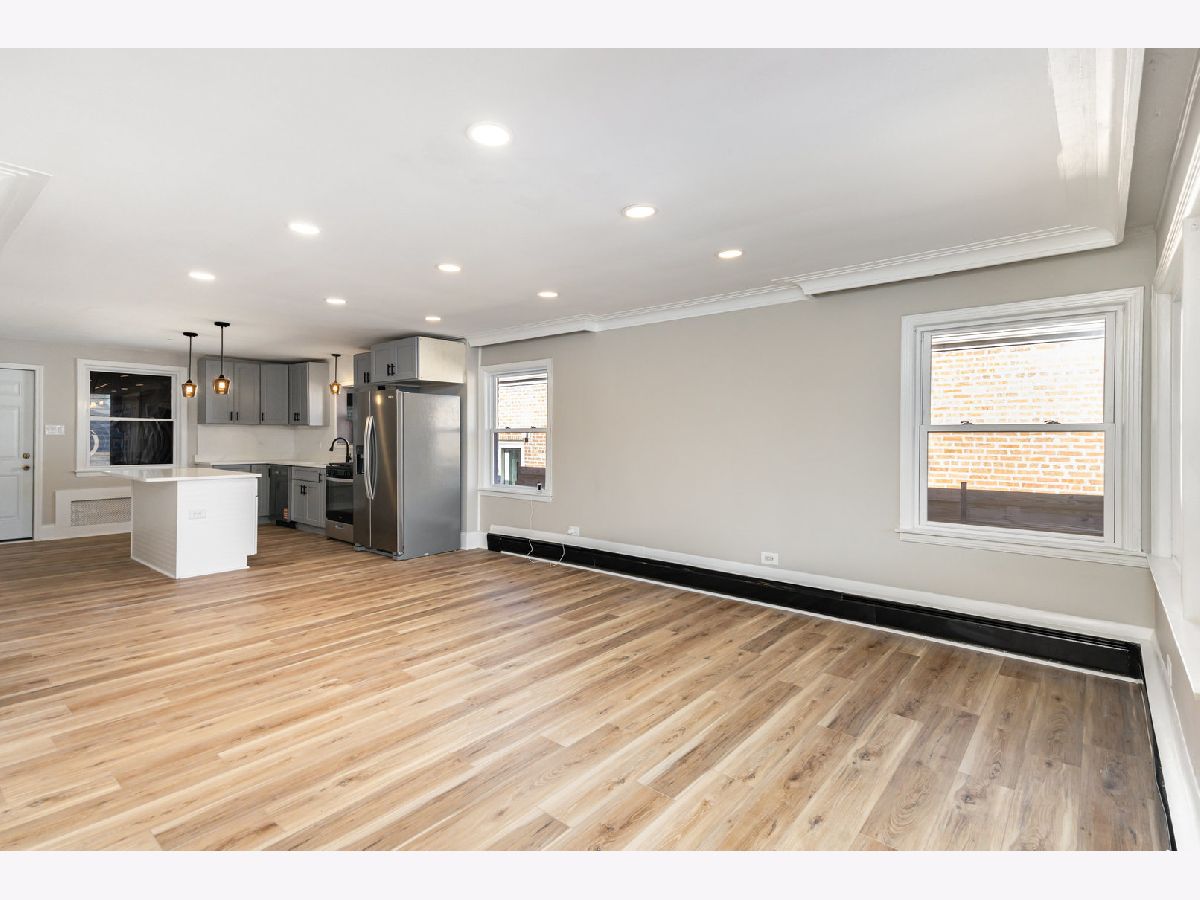 Welcome to this beautifully renovated 3 bed, 2 bath brick bungalow featuring a full finished basement and fenced yard. The open concept main level has a stunning eat-in kitchen with new cabinetry, quartz counters, ss appliances, large island, and gorgeous new LVP flooring that flows seamlessly throughout. Off the kitchen , step out to a screened porch and sizeable concrete patio that's perfect for relaxing or entertaining. Separate dining area and spacious living room with extensive can lighting offers an inviting space for everyday living and family gatherings. Two main level bedrooms and a renovated full bath with large soaker tub complete the main level. The finished lower level offers even more living space with a generous recreation room, third bedroom, striking full bath with walk-in shower, laundry room and ample storage. Detached 2 car garage for convenience and additional storage. All new cabinetry/vanities, lighting, flooring and paint throughout. Ideally situated near shopping/dining, parks, schools, public transportation, Midway Airport and I90/94.