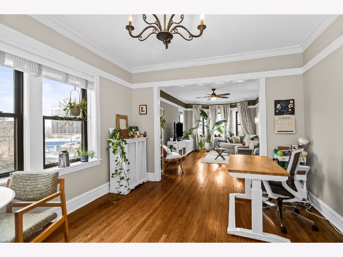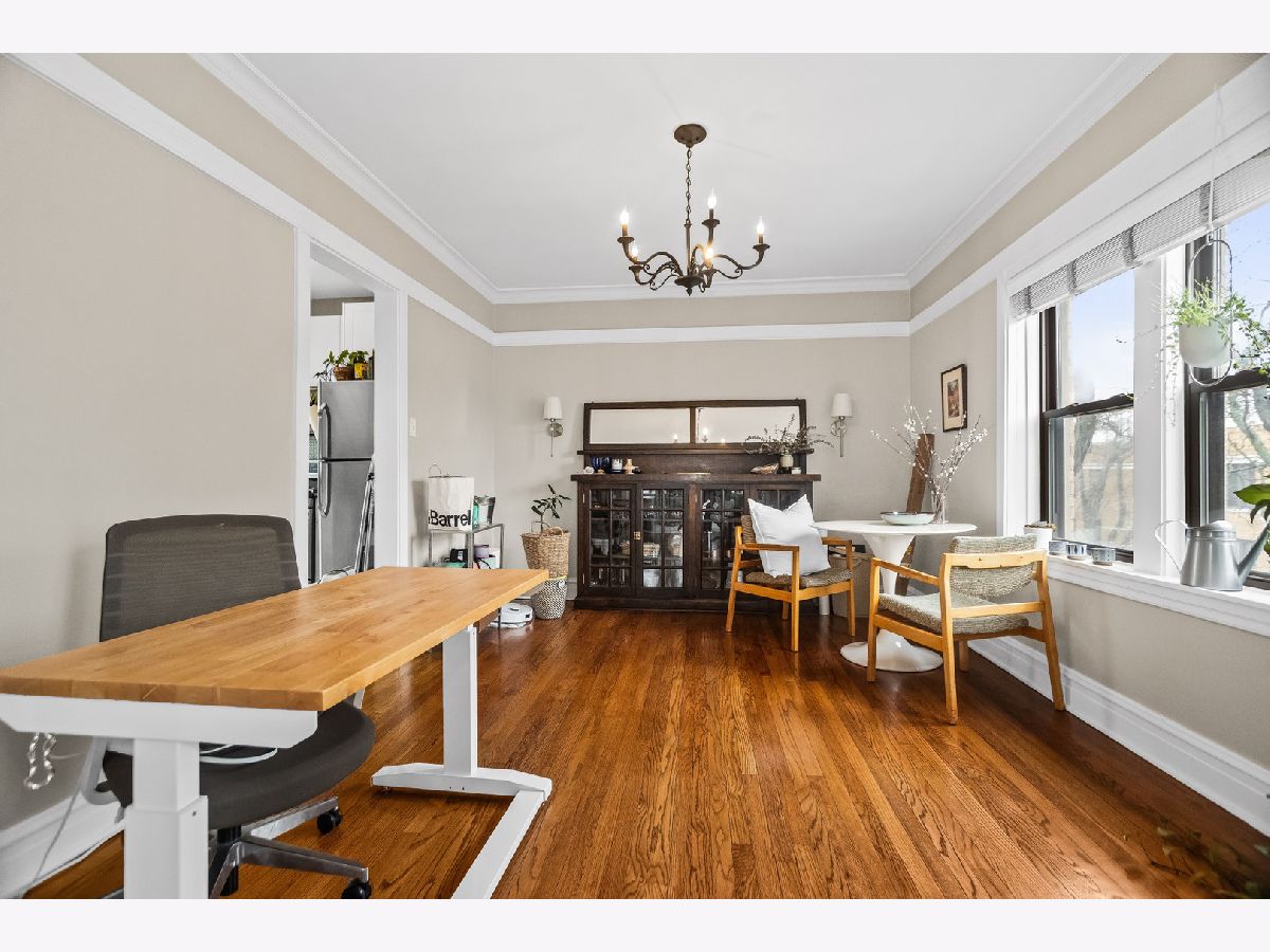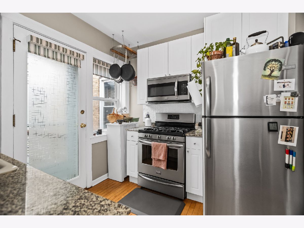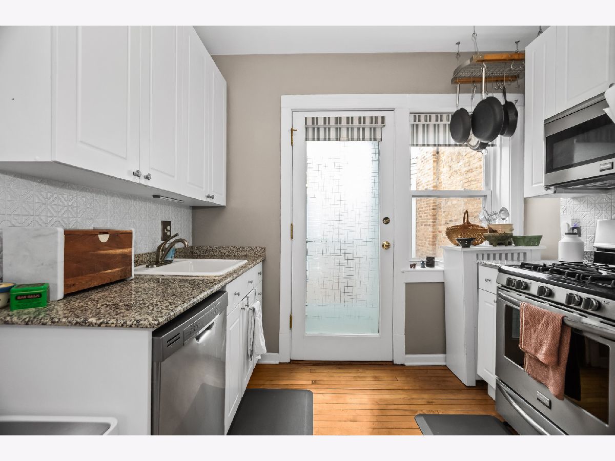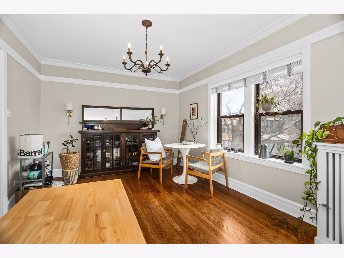 Welcome to this charming vintage one-bedroom in the heart of Lakeview with exceptional space and natural light. This bright, south facing 1-bedroom boasts massive rooms that feel like a 2-bedroom, featuring a gracious living room with bay windows that flows seamlessly into a large formal dining room, perfect for entertaining or easily convertible to a second bedroom or office. Beautiful hardwood floors, classic trim, and tall ceilings highlight the home's timeless character. The bright kitchen offers granite countertops, stainless steel appliances, and direct access to a private deck ideal for grilling and outdoor relaxation. Spacious bedroom with ample closet space and an updated bath. Additional features include in-building laundry and extra storage. Well-maintained brick building on a quiet tree-lined street just steps from the lakefront, Belmont Harbor, parks, restaurants, nightlife, and public transit.