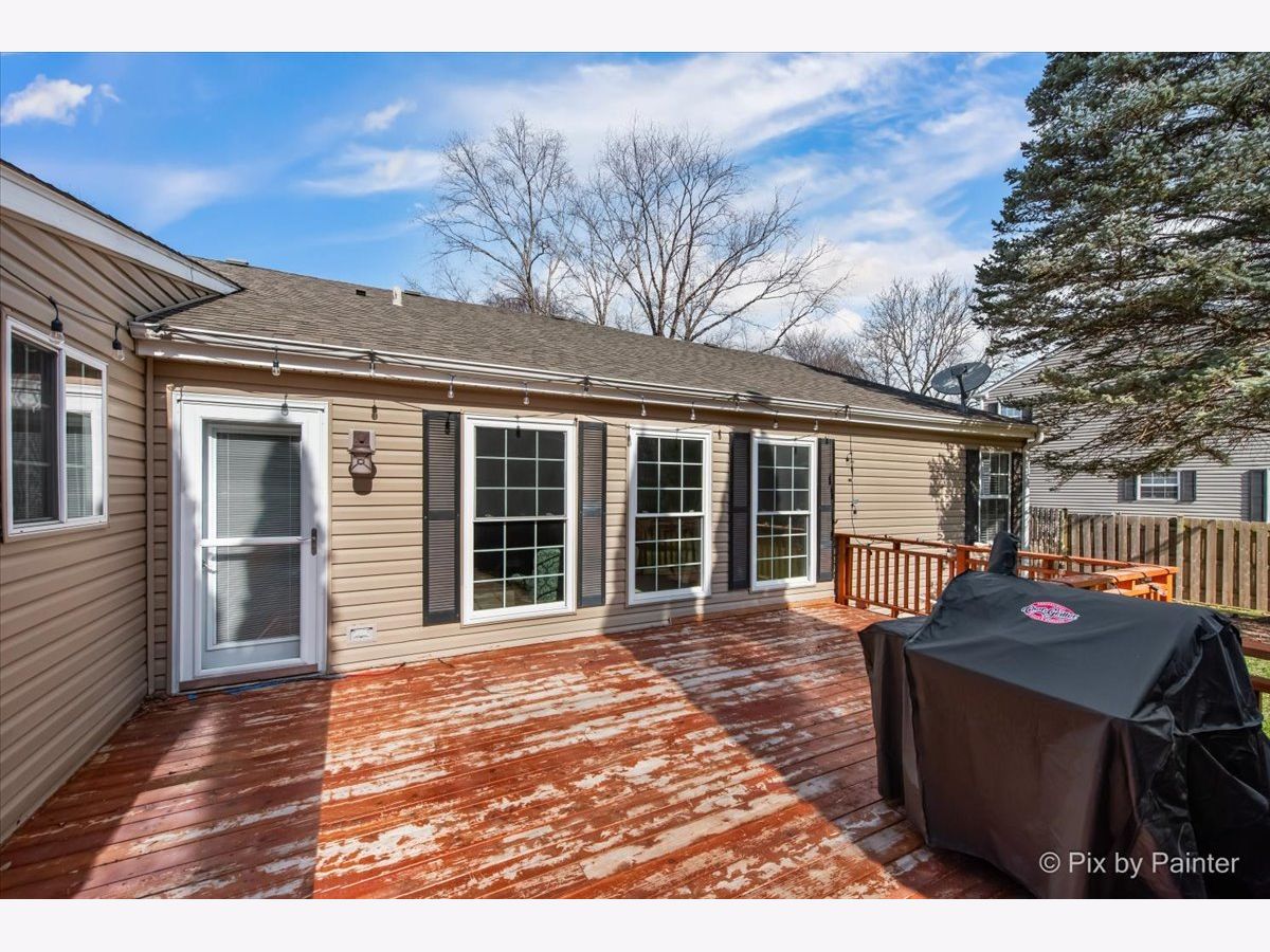 Here is your opportunity for one level living! Open and airy 3 bedroom, 2 bath ranch with 2 car attached garage located within the Cary School District in Fox Trails! The open concept floor plan offers spacious and seamless flow throughout the living room, dining room, and kitchen areas. Kitchen includes beautiful granite counters, ample cabinet space, pantry, eating bar, and breakfast table area. Vaulted primary suite features nicely updated bath with dual bowls, separate shower, and soaker tub! Yard is fully fenced with deck and shed for additional storage. Main floor laundry with additional hookups in basement. The unfinished basement is huge! This home is move-in ready! Enjoy the area amenities, Rotary Park, Disc Golf, Dog Park, Splash Pad, numerous parks, and paths! Close to Metra and in town local eateries!