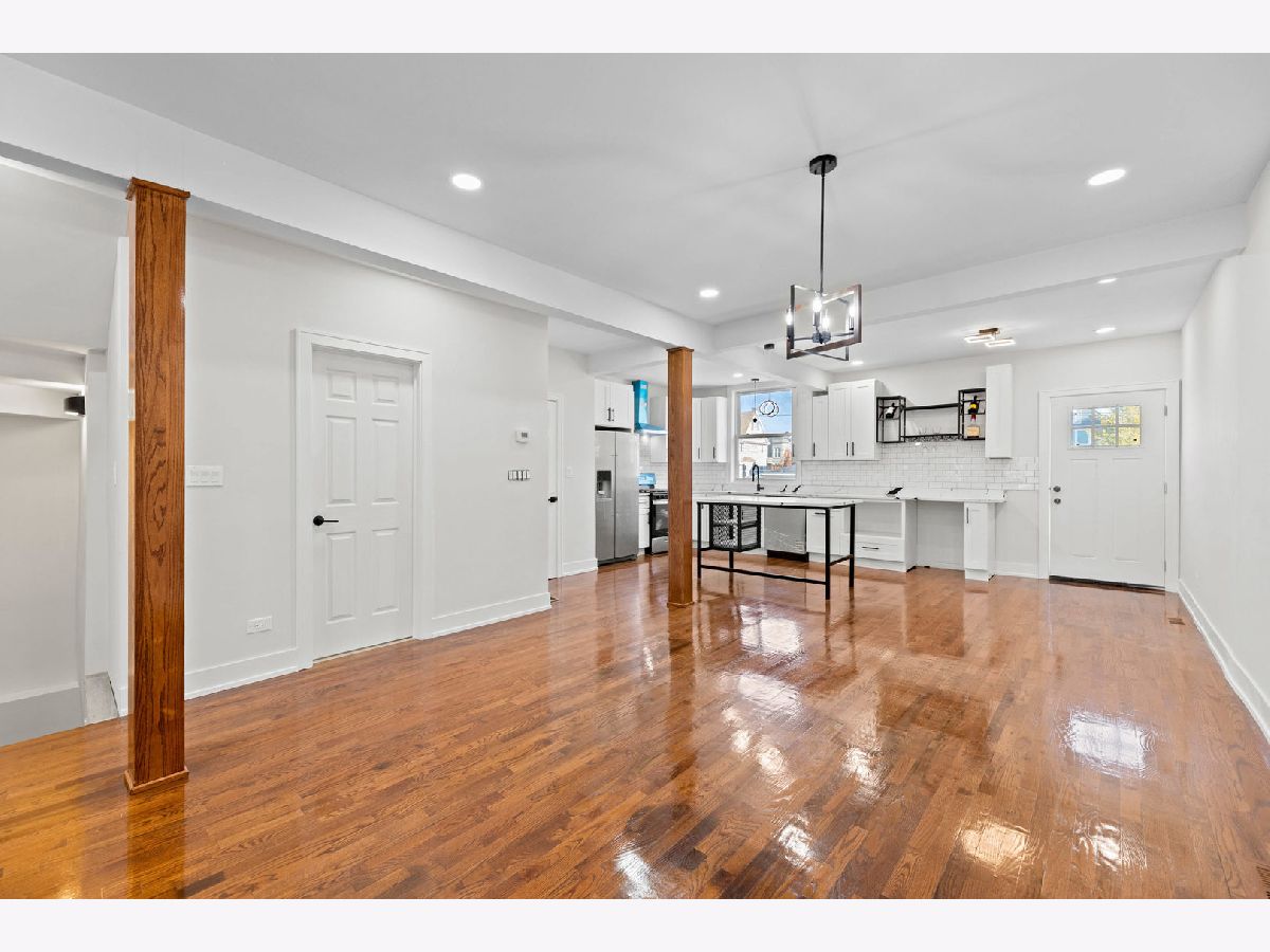 Welcome home to this beautifully renovated 4-bedroom, 2.5-bath residence with three levels of living space, a two-car garage, and a spacious yard. The main floor features high ceilings, original hardwood floors, recessed lighting, and an open layout that flows seamlessly between the living and dining areas. The stunning kitchen offers new shaker cabinets, quartz countertops, modern black fixtures, a custom island with pendant lighting, stainless steel appliances, and a beverage fridge. Upstairs, you'll find four bright bedrooms and two full baths. The finished basement adds a large family or recreation room, storage, and laundry space. Every detail showcases quality craftsmanship and modern design-move-in ready and perfect for the holidays. Schedule your showing today!