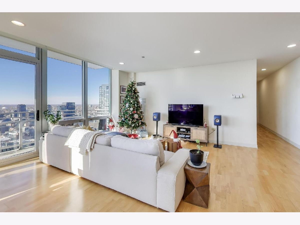 Experience the ease and elegance of refined West Loop living in this exceptional 2-bedroom, 2-bath residence offering 1,400 square feet of thoughtfully designed luxury. Perched high above the city, this home is wrapped in dramatic floor-to-ceiling windows that bathe the interiors in natural light while framing rare, unobstructed west-facing skyline views stretching endlessly toward Indiana, Iowa, and Missouri. Each sunset becomes a daily ritual, transforming the cityscape into a breathtaking backdrop for everyday living. The thoughtfully designed floor plan blends sophistication and comfort with effortless flow. The primary suite offers a true sense of retreat, thoughtfully scaled to feel both expansive and intimate. A generous walk-in closet and a beautifully appointed ensuite bath create a private sanctuary ideal for unwinding at the end of the day. The second bedroom provides flexible living space for guests, a home office, or additional lounge space, complemented by a full second bath that ensures comfort and privacy. Plush new carpeting installed in both bedrooms in 2023 enhances warmth and tranquility, while hardwood floors throughout the living room and hallway anchor the home in timeless elegance. The kitchen is equipped for modern luxury living with newer stainless steel appliances, including a refrigerator, dishwasher, and washer from 2023 to 2024. A rare, oversized in-unit laundry room adds exceptional convenience, additional storage, and functionality seldom found in condo living. A private storage unit located on the lower level, unit #330, is included in the price. Step onto the private balcony and take in commanding skyline views that feel endless. Whether enjoying a quiet morning coffee, hosting friends, or unwinding in the evening as the city lights begin to glow, this outdoor space offers a peaceful retreat above the vibrant energy of the neighborhood. The building supports a seamless urban lifestyle with secure access, a concierge, a dedicated mailroom for package deliveries, and on-site dry cleaning services. Heated, secure garage parking space 322 is available for an additional $30,000, providing comfort and convenience year-round. Both the building and the surrounding neighborhood are pet-friendly, allowing city living to extend effortlessly to every member of the household. Located directly above Whole Foods in the heart of the highly sought-after West Loop, this residence places you steps from Chicago's finest amenities. Walk to Fulton Market, the Riverwalk, Mary Bartelme Park, award-winning restaurants, boutique shopping, and Skinner Elementary School. Effortless access to CTA buses, trains, and major highways ensures seamless connectivity throughout the city. This is more than a residence. It is a home that balances light, space, and location in one of Chicago's most dynamic neighborhoods. Opportunities to own a home of this size, view orientation, and livability in the West Loop are exceptionally rare. A refined offering for those seeking comfort, convenience, and an elevated urban lifestyle.