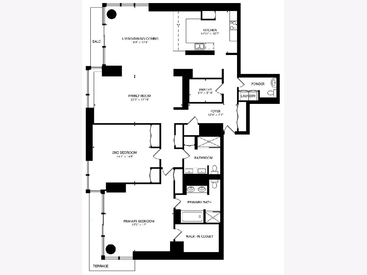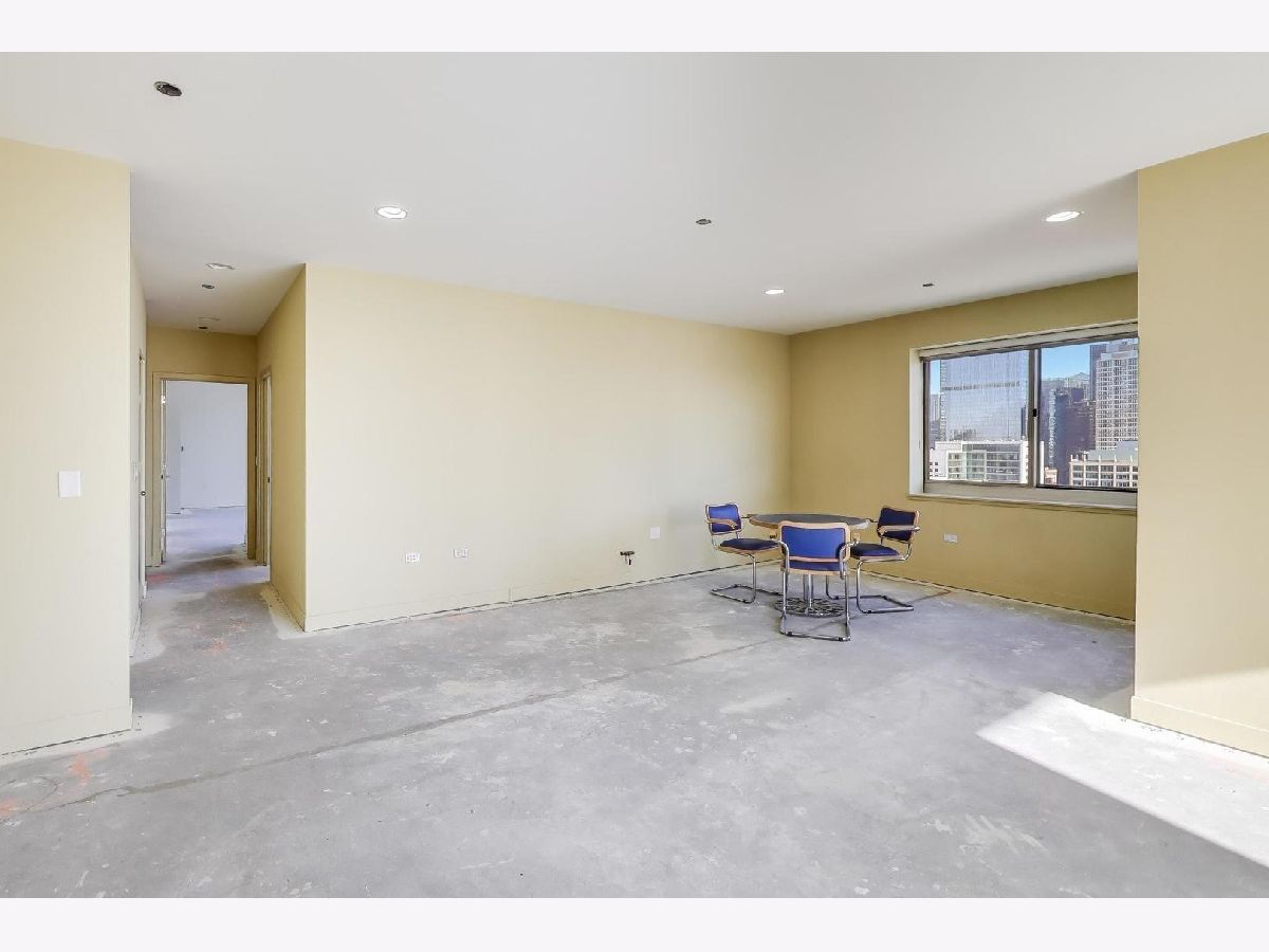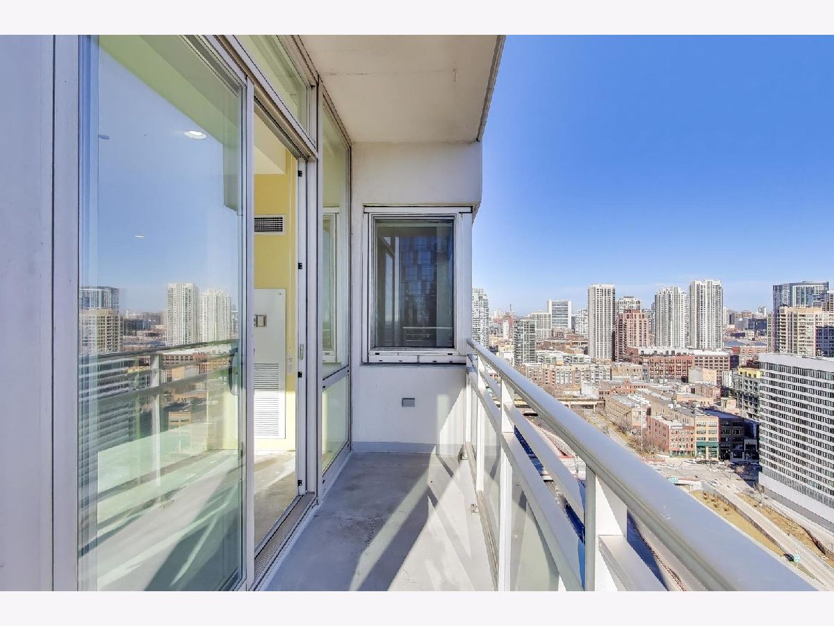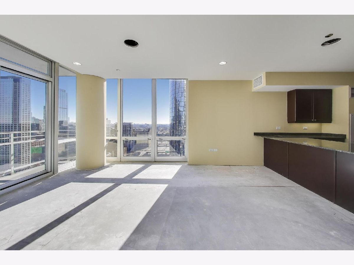 Soak in breathtaking east-facing skyline views from this bright and spacious 2 bed / 2.1 bath plus family room West Loop condo, perfectly positioned in a full-amenity elevator building. 2300+ SF unit provides floor-to-ceiling windows which flood the space with natural light and frame postcard-worthy city views from nearly every room. The open layout offers flexible living and dining options plus a bonus family room, ideal for entertaining or everyday living. Step outside to your private east-facing balcony off the living area, the perfect spot to sip your morning coffee or sunset cocktails. The spacious, open kitchen features abundant cherry cabinetry with excellent storage and granite countertops with an oversized breakfast bar. A massive walk-in pantry could also easily convert to a home office. The primary suite is a true retreat, featuring a wraparound terrace with both east and north exposures, generous walk-in closet, and ensuite bath with jetted tub, separate shower and double vanity. The concrete subfloors are ready for your finishing touch, allowing you to customize with hardwood, tile, or carpet. Side-by-side in-unit washer/dryer adds to your easy living. Building amenities include a rooftop deck, fitness center, party room, bike room, dog run, package receiving, dry-cleaner drop-off, on-site management, 24-hour door staff and a direct connect to Whole Foods. Two deeded side-by-side garage parking spaces included in price! All of these modern conveniences included in an unbeatable location just steps to Ogilvie, easy to public trans and highway, and a short stroll to the best dining, nightlife, and culture the West Loop and Fulton Market has to offer.