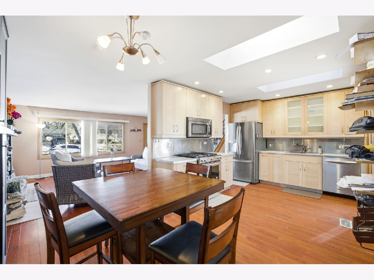 Beautiful split-level home located in a quiet, desirable neighborhood! This inviting property features a welcoming living room with a cozy fireplace, a nicely sized kitchen and dining area with modern appliances, abundant counter space, and sleek cabinetry-perfect for everyday living and entertaining. Just beyond, enjoy a huge family room filled with natural light from large windows and featuring a second fireplace, creating a warm and comfortable gathering space. Upstairs offers three generously sized bedrooms and an updated full bathroom. The lower level provides a versatile flex/entertainment room, an additional updated bathroom, and a large utility area with plenty of storage. Step outside to enjoy the expansive fenced yard with mature trees, a private patio, and a bright three-season room-ideal for relaxing and taking in the beauty of every season. The outdoor hot tub stays, offering a perfect place to unwind. Please do not open the garage; the dog will be secured there during showings.
