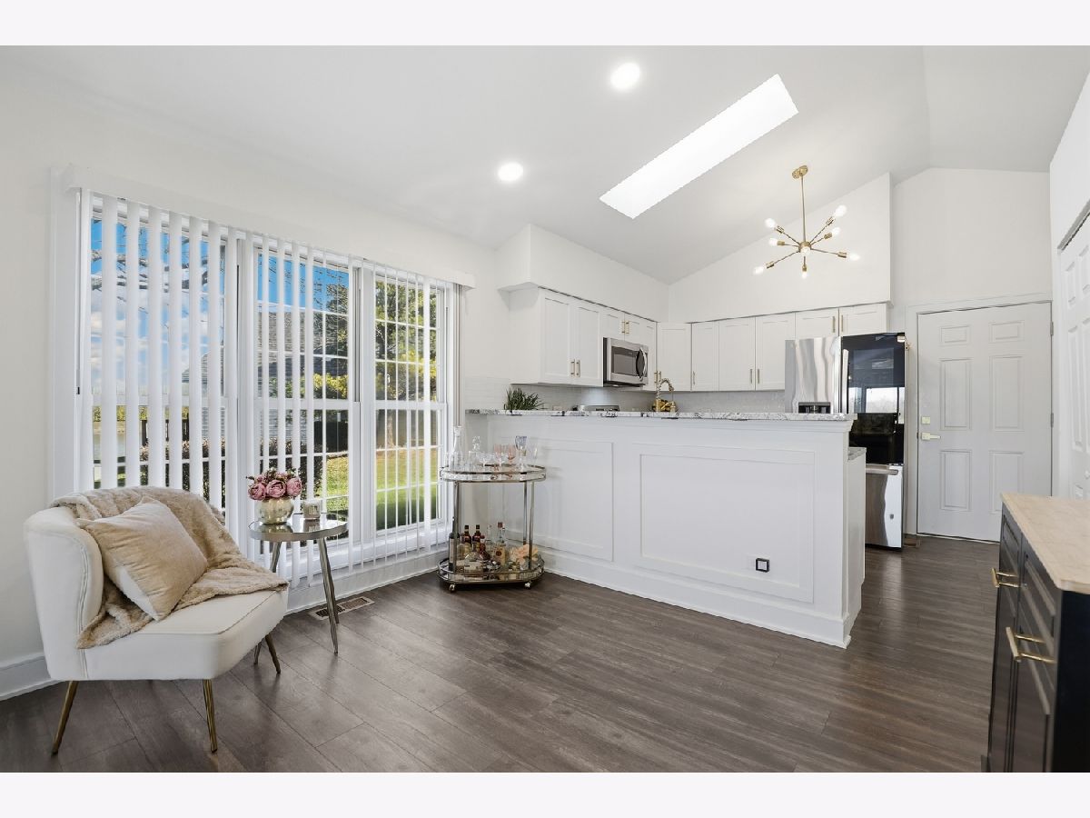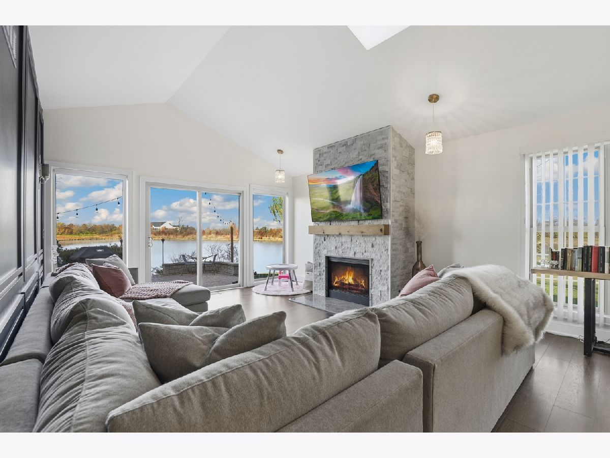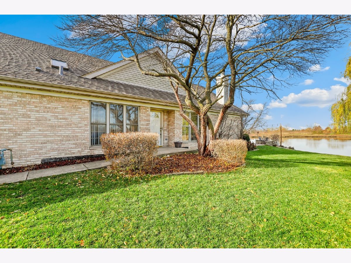 Welcome to Odyssey Country Club Townhomes- a gated community with gorgeous views, a golf course, and easy access to I-80 and I-57. This stunning and updated end-unit RANCH townhome offers breathtaking pond views outside and timeless elegance inside. The whole home was remodeled in 2023 and 2024. It offers a gorgeous, sleek kitchen with granite countertops, SS appliances and upgraded light fixtures. The open, vaulted great room features a fireplace with new mantle and newer LVP flooring. You can step outside the sliding doors to a serene brick patio with sweeping pond views. The main level also features a primary suite with updated ensuite and walk-in closet, as well as a second bedroom and updated full bathroom. Be sure to head downstairs to see the newly renovated, fully finished basement! It features two more bedrooms, a full bathroom and a gorgeous fireplace in the rec room. HVAC replaced in 2023! Enjoy the convenience of low-maintenance living with the HOA covering exterior upkeep, landscaping and snow removal.