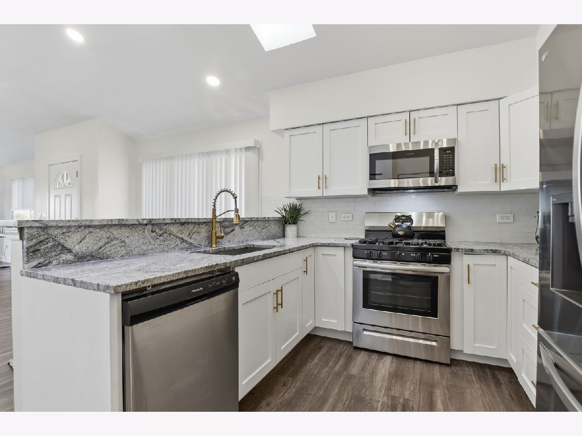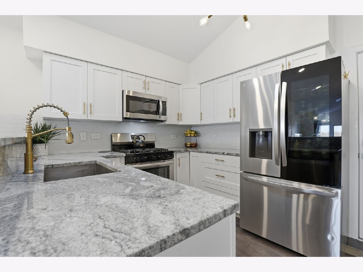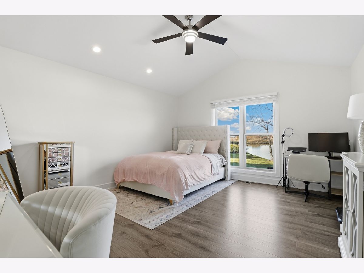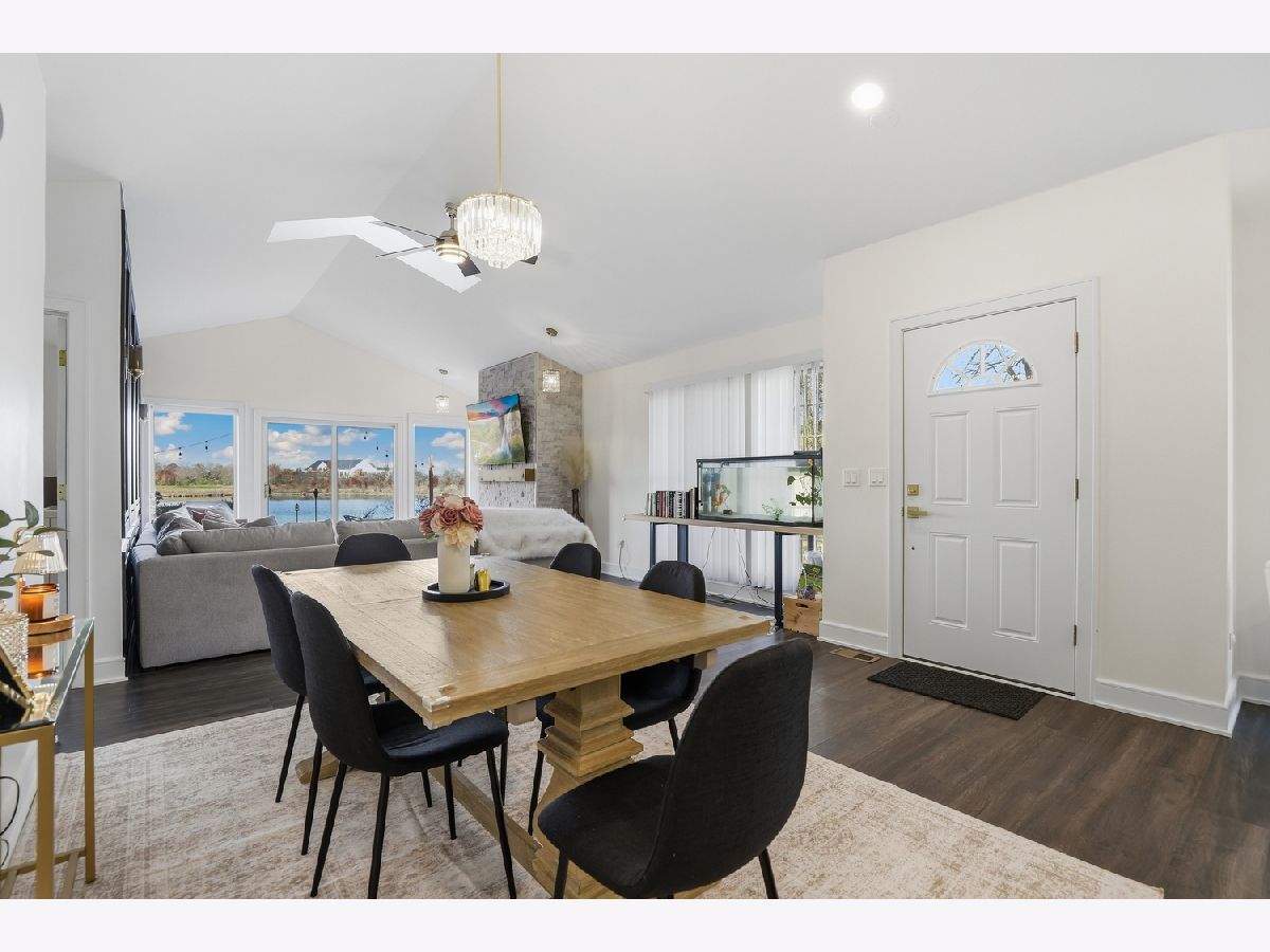 Welcome to Odyssey Country Club Townhomes- a gated community with gorgeous views, a golf course, and easy access to I-80 and I-57. This stunning and updated end-unit RANCH townhome offers breathtaking pond views outside and timeless elegance inside. The whole home was remodeled in 2023 and 2024. It offers a gorgeous, sleek kitchen with granite countertops, SS appliances and upgraded light fixtures. The open, vaulted great room features a fireplace with new mantle and newer LVP flooring. You can step outside the sliding doors to a serene brick patio with sweeping pond views. The main level also features a primary suite with updated ensuite and walk-in closet, as well as a second bedroom and updated full bathroom. Be sure to head downstairs to see the newly renovated, fully finished basement! It features two more bedrooms, a full bathroom and a gorgeous fireplace in the rec room. HVAC replaced in 2023! Enjoy the convenience of low-maintenance living with the HOA covering exterior upkeep, landscaping and snow removal.