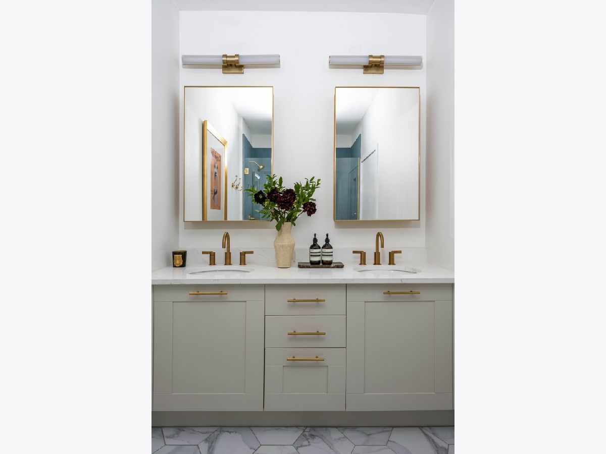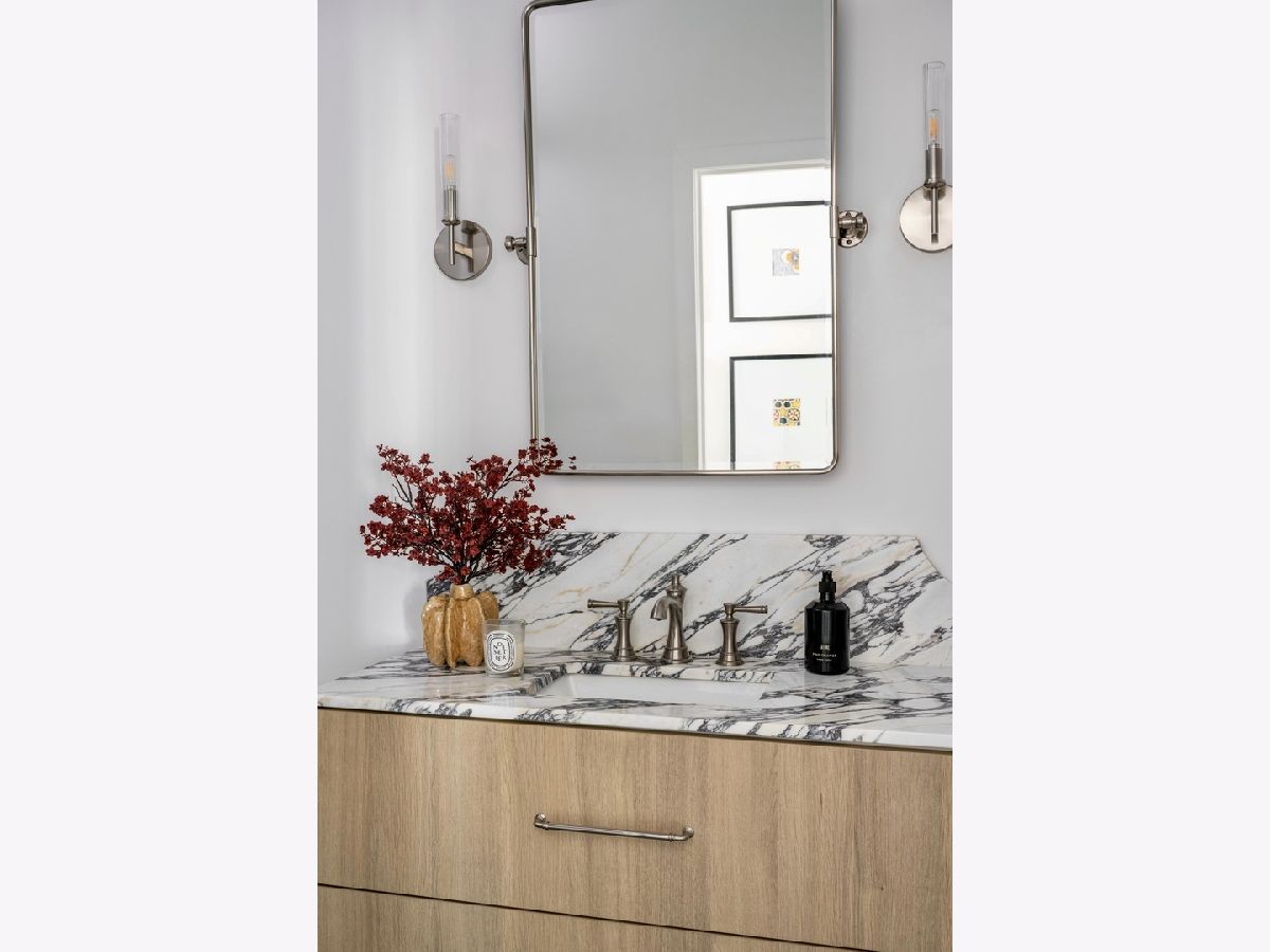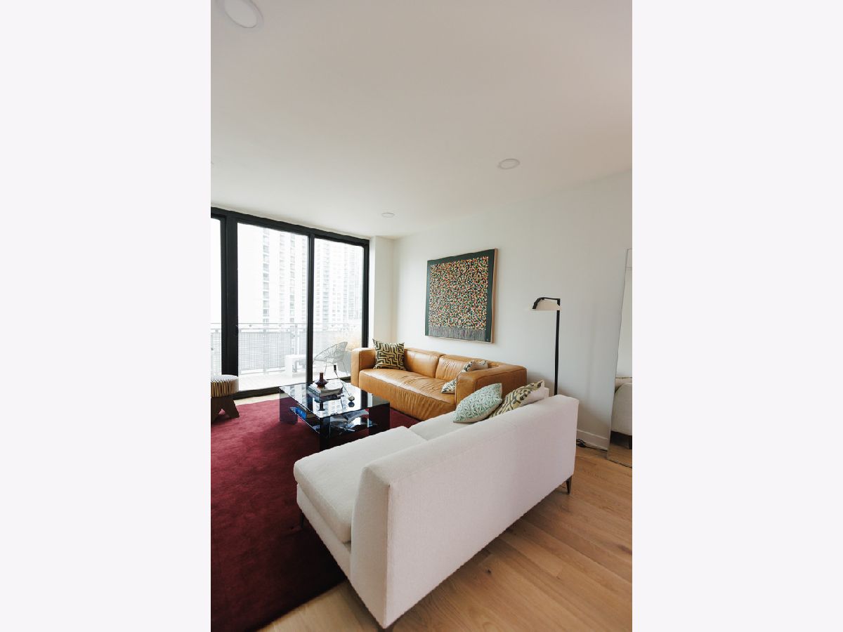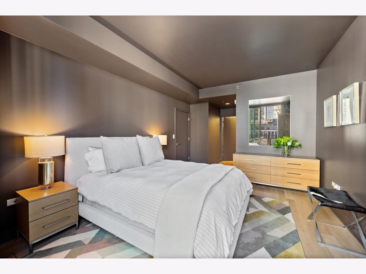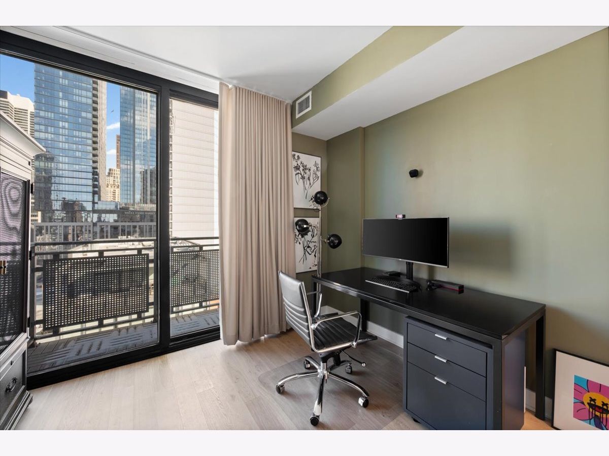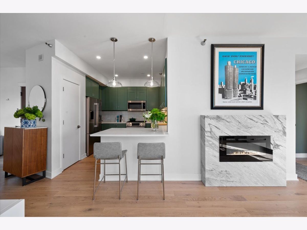 Experience elevated sophistication in this extraordinary, expansive penthouse sanctuary, a designer-renovated 2-bedroom plus den, corner residence perched high above the vibrant streets of River North. Many units in this highly desired tier have converted this 2-bedroom into a 3-bedroom. Wrapped in walls of glass and graced with three private terraces, this home offers breathtaking skyline vistas and abundant natural light from every angle. Completely reimagined in a 2025 full-scale renovation, the open-concept living and entertaining space is a masterclass in modern elegance. White oak flooring flows seamlessly throughout, complemented by curated designer lighting and a striking Calacatta Bluette marble fireplace - a sculptural focal point that anchors the room in refined luxury. The chef's kitchen is equally impressive, outfitted with premium 2022 Bosch appliances, sleek quartz countertops, and custom cabinetry designed for both beauty and function - an exquisite backdrop for intimate dinners or sophisticated gatherings. Indulge in spa-caliber serenity within the fully gut-renovated baths: guest bathroom adorned with a dramatic Calacatta Viola marble vanity. The oversized primary suite is a private retreat in the sky, showcasing sweeping skyline views, custom floor-to-ceiling drapery, designer sconces, and a tranquil, spa-inspired bath featuring a glass walk-in shower and elegant quartz vanity. Every detail has been elevated-from bespoke custom floor-to-ceiling window treatments to thoughtfully upgraded lighting throughout. Step outside to three newly updated private terraces, finished with modern tile flooring and offering panoramic city views. Perfectly positioned just steps from the prestigious Gold Coast and moments from Whole Foods Market, Life Time, and River North's finest dining, boutiques, and nightlife, this penthouse is perfection!