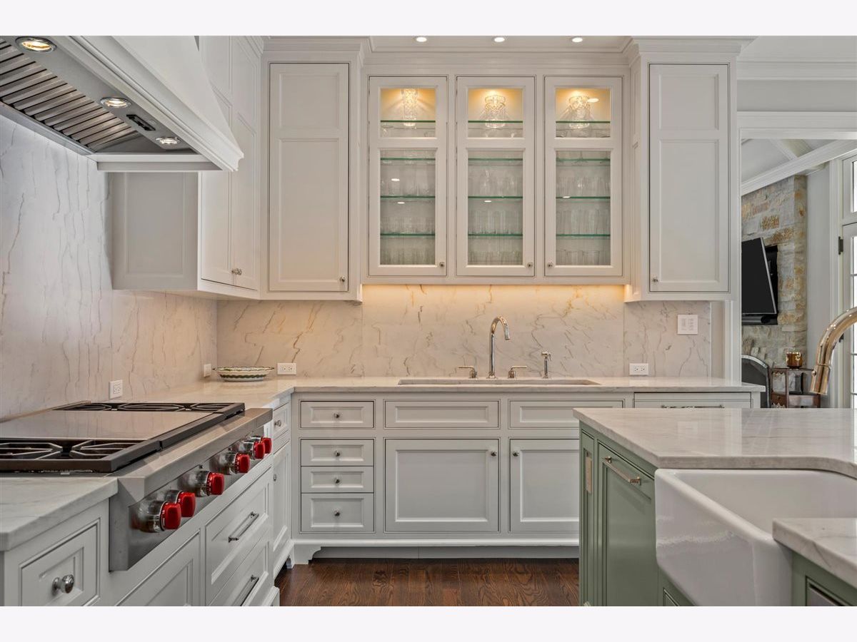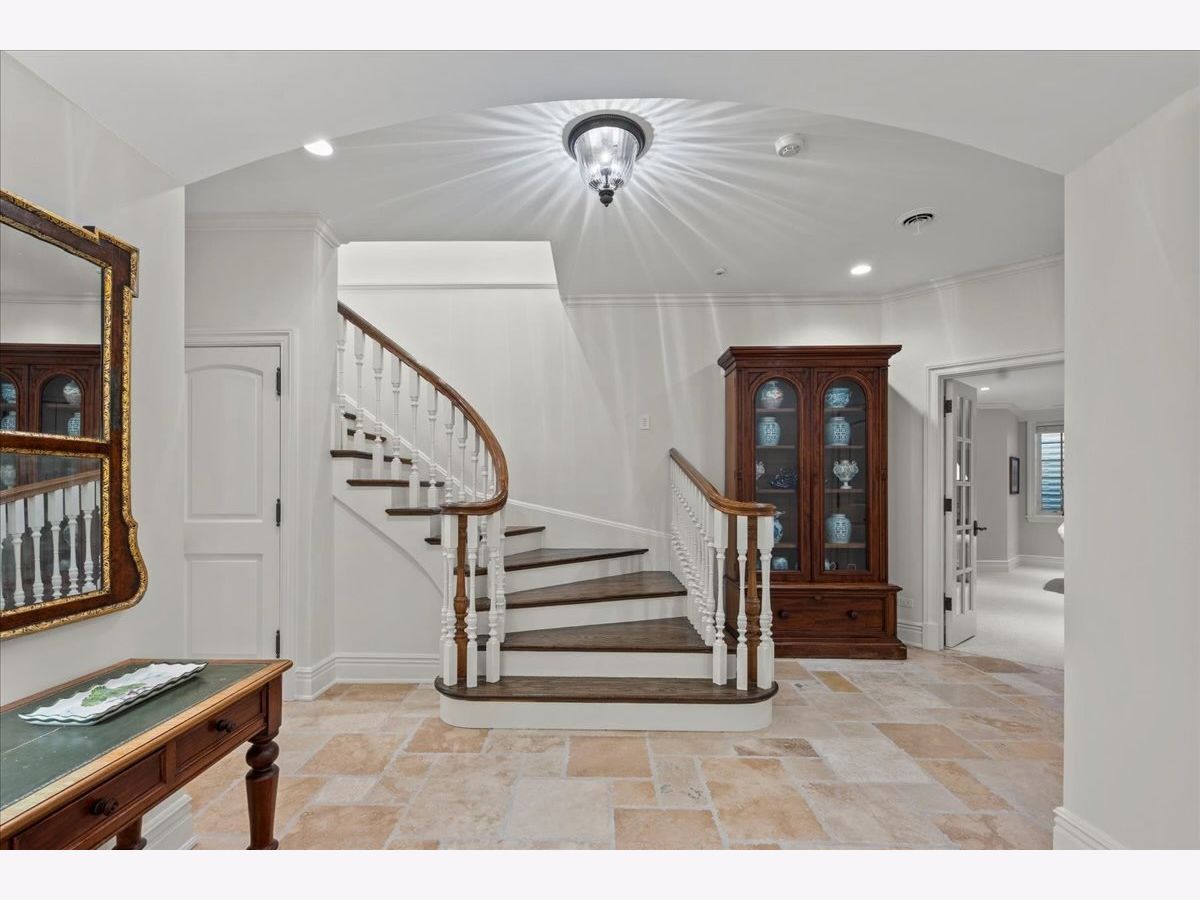 745 East Woodland Road is an exceptional east Lake Forest residence that offers a rare blend of architectural excellence, modern luxury, and serene natural beauty. Originally built in 2006 and extensively renovated between 2022-2024, this English Country estate was honored with the Historic Preservation Award for New Construction, and has since been enriched with significant upgrades. Beyond the gated entrance, a private bridge spans a natural ravine, leading to a circular brick paver drive, creating a dramatic and private approach to the home. Set on 1.23 acres, the striking exterior showcases a Ludowici clay tile roof, zinc-coated copper gutters, and hand-chiseled limestone--materials that reflect enduring quality and craftsmanship. Inside, timeless character and refined luxury define every inch of the home. Highlights include French limestone floors, high ceilings, extraordinary millwork, oak hardwood flooring, four wood burning fireplaces (with gas logs), and an abundance of windows and French doors that fill the interior with natural light. The gracious formal living room enjoys three distinct exposures and features a traditional wood-burning fireplace with herringbone-patterned firebrick. The formal dining room has expansive French doors that open to a bluestone terrace-ideal for seamless indoor/outdoor entertaining. A cozy pine-paneled library with fireplace and charming bay window offers a warm and inviting retreat. Both the original architectural design and the comprehensive renovations were masterfully executed by Melichar Architects. The recent improvements include new mechanical systems, upgraded electrical service to 600 amps, extensive new low-voltage lighting, a Lutron lighting system and all new Marvin exterior French doors. In addition, the entirely new and reimagined kitchen features custom white cabinetry, a large center island with seating, marble counters, professional-grade appliances (Wolf, Sub-Zero, Miele), a serving/beverage center with dining room access, and a spacious eating area with expansive new windows that offer inviting views of the rear lawn. The kitchen opens to a magnificent family room with vaulted beamed ceiling, French doors, and a handsome stone fireplace with herringbone-patterned fire brick and gas logs. The second level, accessible by handcrafted front and back staircases or a wood-paneled elevator, boasts wide hallways, a luxurious primary suite, three additional ensuite bedrooms with deluxe bathrooms and generous closets, and a full laundry room. The redesigned primary suite is a private sanctuary, complete with two new luxurious marble bathrooms, steam shower, WaterWorks polished nickel fixtures, spacious walk-in closets, a freestanding WaterWorks soaking tub, and a sitting room. The renovated lower level has high ceilings, radiant heated floors, an expansive recreation room, a billiards room with a convenient beverage bar, a fifth bedroom suite (currently used as an exercise room), a media room with fireplace, and a private office with an impressive glass wall. This lower-level "redesign" is ideal for fun, informal gatherings. Additional highlights include a heated 3.5-car garage, first and second floor laundry rooms, a mud room with ample built-in storage, and of course, the exceptional location close to the lake, beach, town, schools, and parks. 745 East Woodland Road represents a rare opportunity to own a pristine newer home in east Lake Forest--where architectural authenticity, modern luxury, and natural serenity exist in perfect balance.