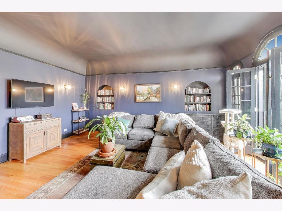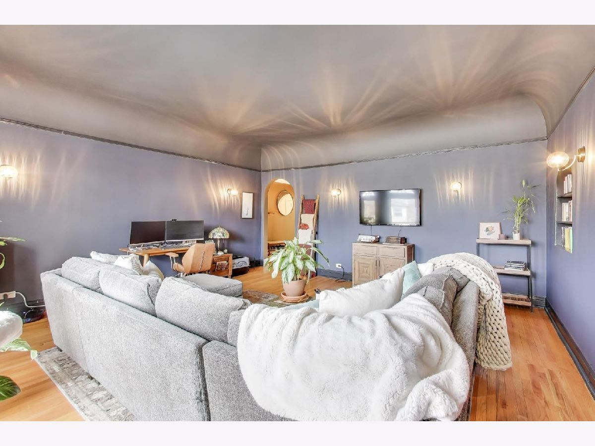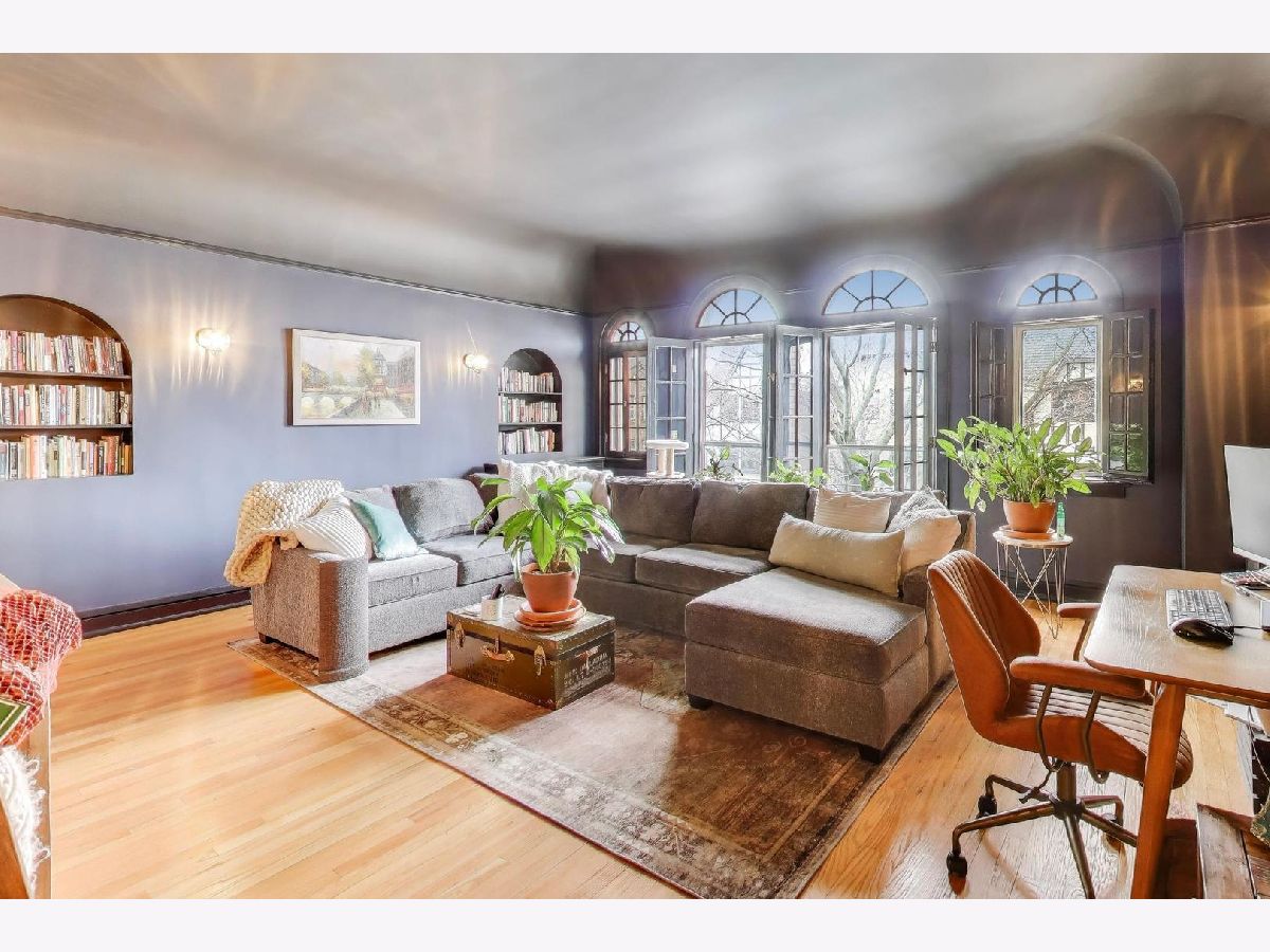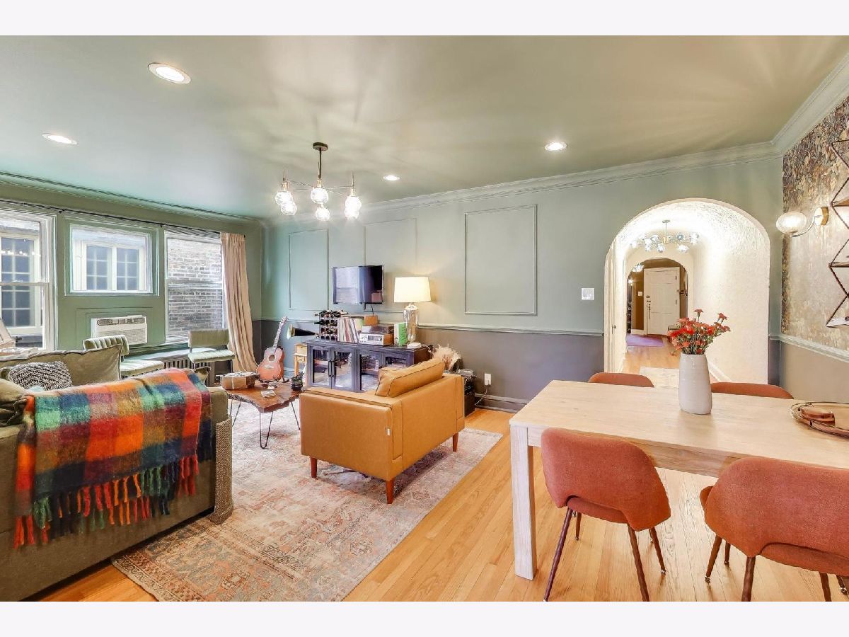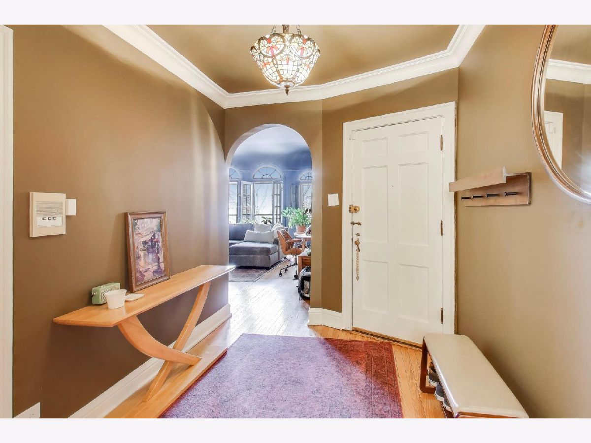 On a quiet, tree-lined block of classic six-flats, this vintage 3-bedroom, 2-bath residence pairs timeless architectural detail with everyday ease. A gracious foyer opens to a dramatic gallery hallway, setting the tone for generously scaled rooms with arched doorways and hardwood floors throughout. The living room is a true focal point, featuring a striking coved ceiling, cozy fireplace, and French doors that open to a charming wrought-iron balcony nestled among mature trees. Adjustable awnings invite sunshine in or create a more private, tranquil retreat. The oversized dining room offers the perfect backdrop for gatherings both large and small. Thoughtful updates-including newer windows, refreshed kitchen finishes, renovated baths, and updated electrical-enhance the home's vintage character. A back porch provides additional storage, and the shared backyard extends the living space outdoors. Ideally located near shopping at Gateway Center Plaza, public transit at the Howard Street Red Line Station, and the lakefront along Lake Michigan, this home offers a seamless blend of neighborhood charm and city accessibility. Some homes are measured in square feet. This one is measured in light, warmth, and a quiet sense of belonging.