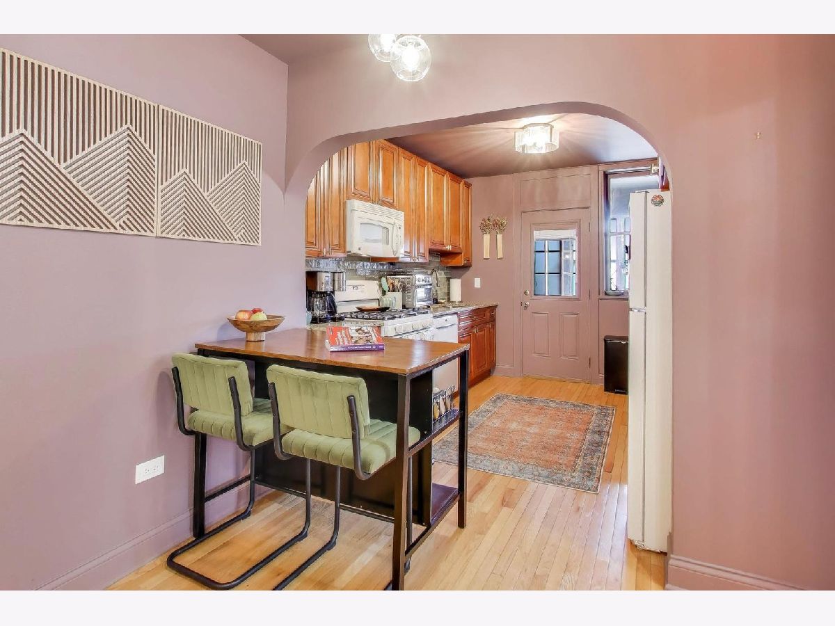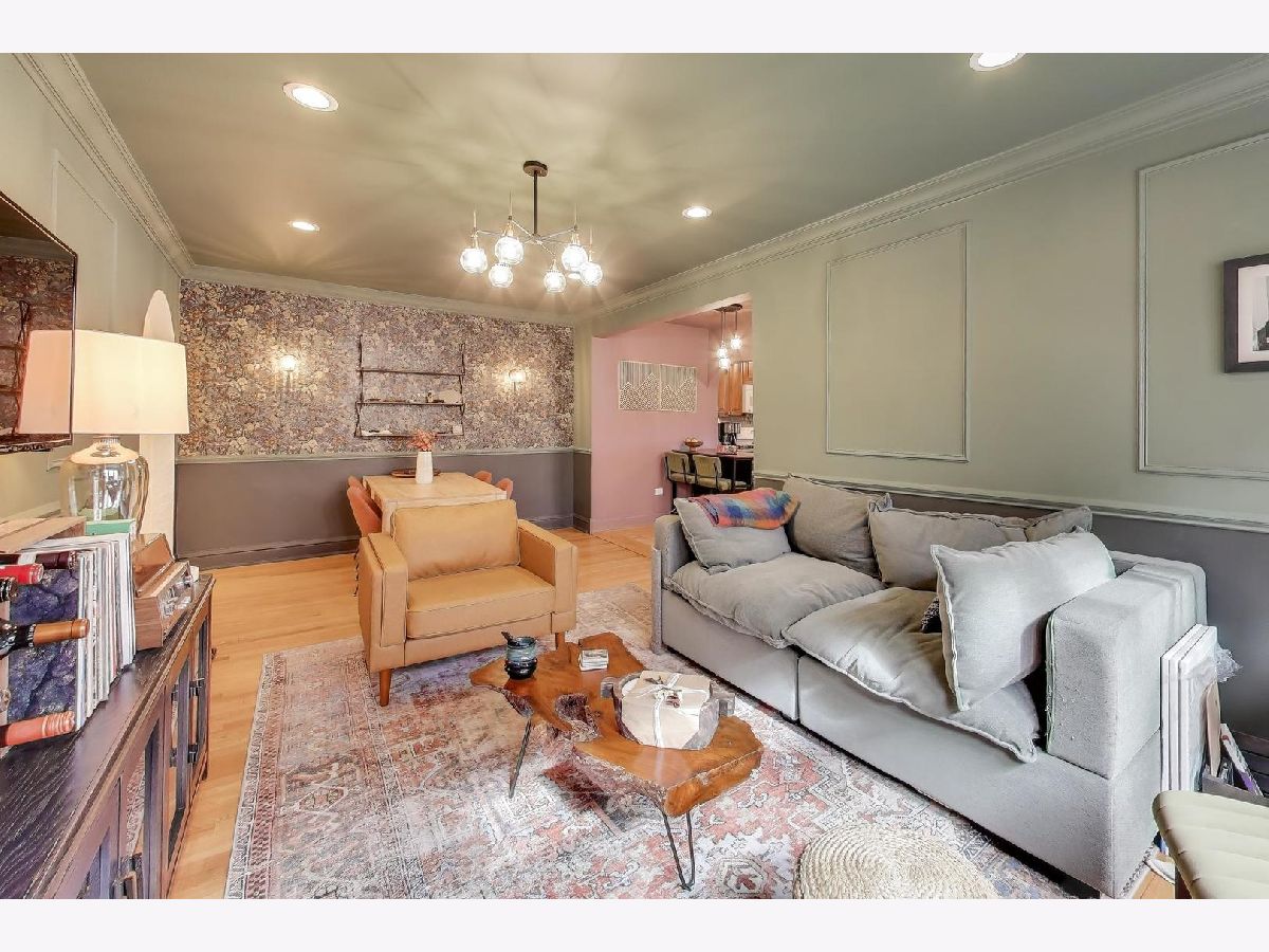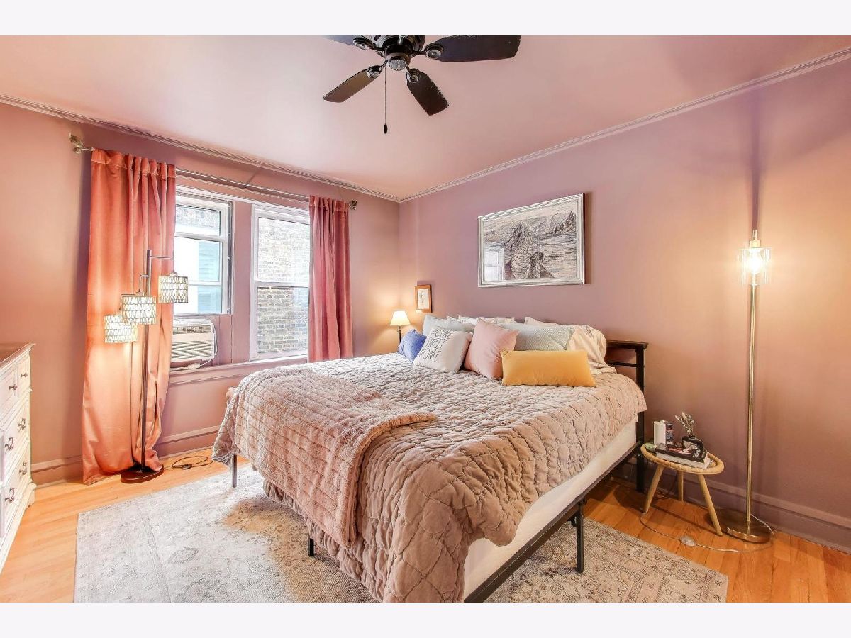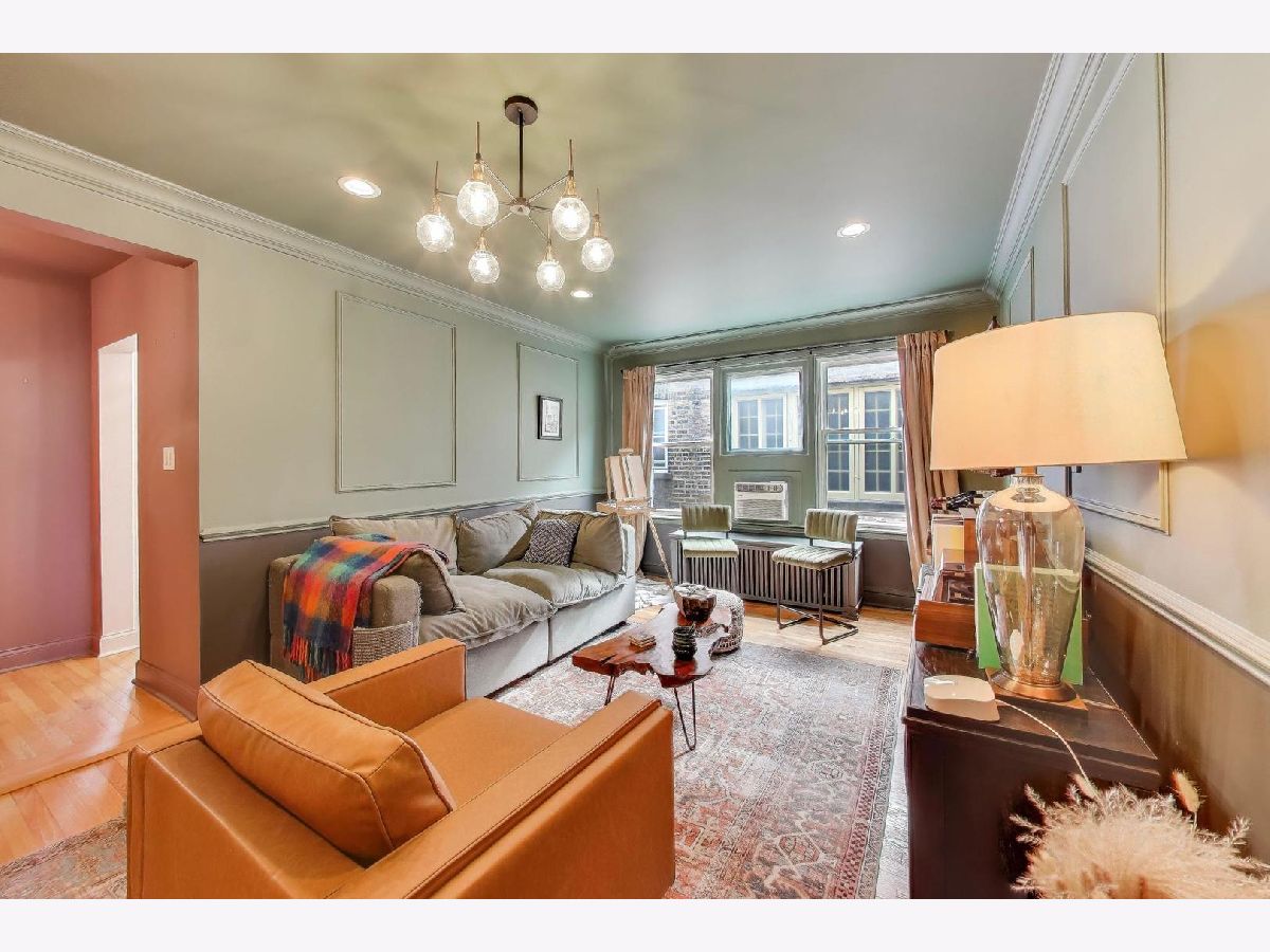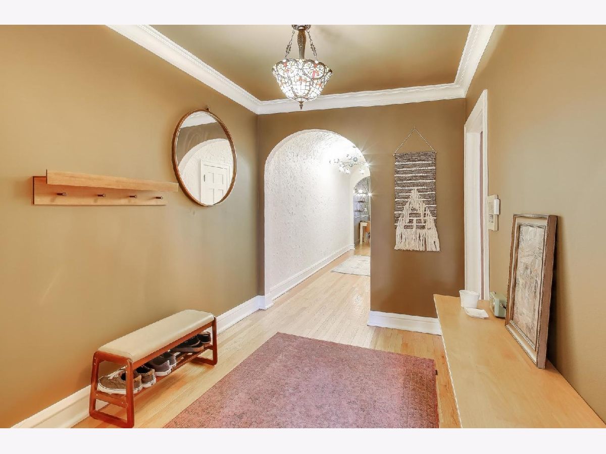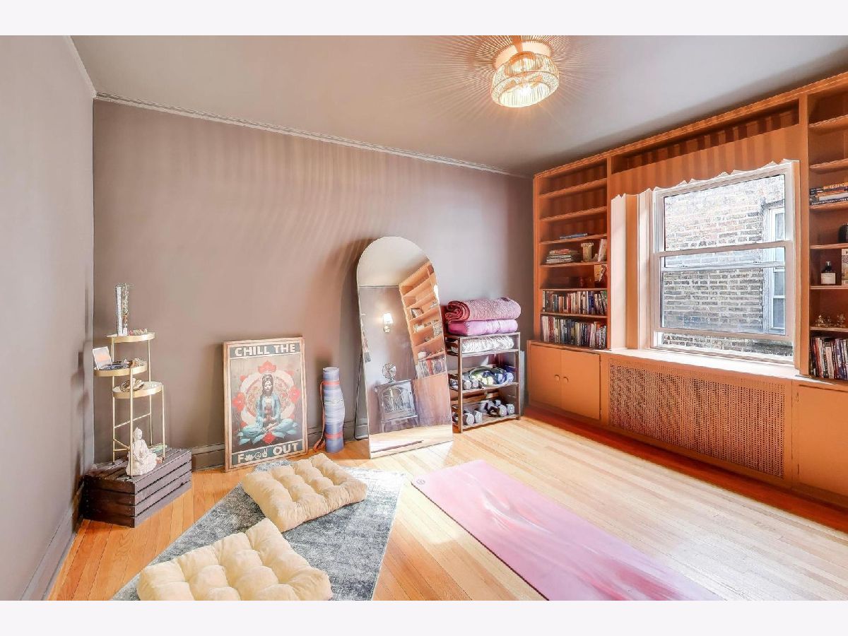 On a quiet, tree-lined block of classic six-flats, this vintage 3-bedroom, 2-bath residence pairs timeless architectural detail with everyday ease. A gracious foyer opens to a dramatic gallery hallway, setting the tone for generously scaled rooms with arched doorways and hardwood floors throughout. The living room is a true focal point, featuring a striking coved ceiling, cozy fireplace, and French doors that open to a charming wrought-iron balcony nestled among mature trees. Adjustable awnings invite sunshine in or create a more private, tranquil retreat. The oversized dining room offers the perfect backdrop for gatherings both large and small. Thoughtful updates-including newer windows, refreshed kitchen finishes, renovated baths, and updated electrical-enhance the home's vintage character. A back porch provides additional storage, and the shared backyard extends the living space outdoors. Ideally located near shopping at Gateway Center Plaza, public transit at the Howard Street Red Line Station, and the lakefront along Lake Michigan, this home offers a seamless blend of neighborhood charm and city accessibility. Some homes are measured in square feet. This one is measured in light, warmth, and a quiet sense of belonging.