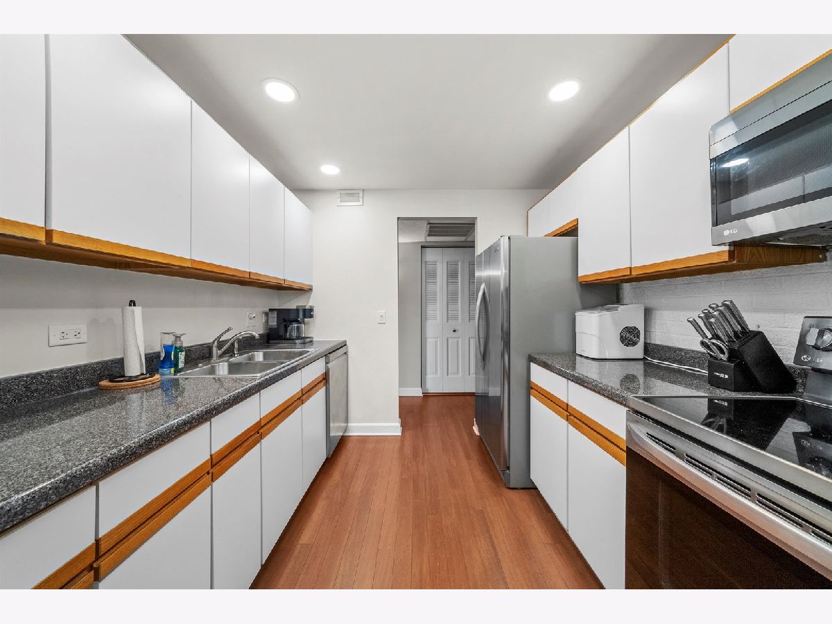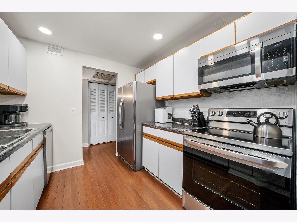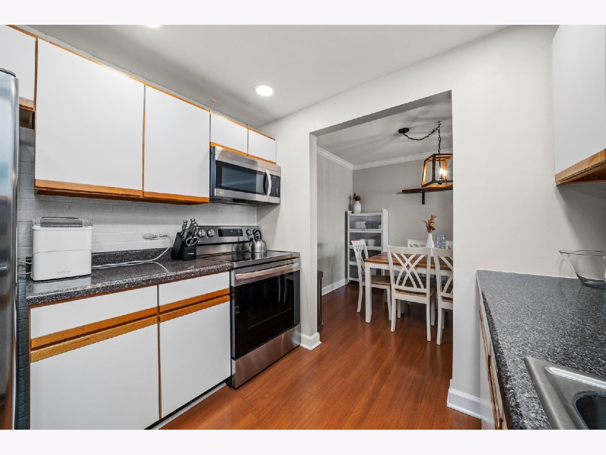 Unbeatable Downtown La Grange Location - Top-Floor Condo Living. Experience exceptional downtown La Grange living in this beautifully maintained, top-floor 2-bedroom, 1.5-bath condominium offering a true walk-to-everything lifestyle. This bright, open-concept home features gleaming hardwood floors, fresh paint, crown molding in the living and dining rooms, and tastefully updated bathrooms. The kitchen is filled with natural light and city views, showcasing updated stainless-steel appliances, ample cabinetry, and a large pantry that may also serve as a convenient coat closet. In-unit laundry and generous closet space add to the home's everyday functionality. Located in a secure, elevator building, this move-in-ready residence offers comfortable, stair-free living. Included is one of the most desirable heated garage parking spaces in the building, with additional guest parking available on the street or in the Village garage directly across from the front entrance. Building amenities include a party room and a versatile exercise/office/library space. The unbeatable location places you just steps from Metra, restaurants, boutiques, Starbucks, the movie theater, and everything downtown La Grange has to offer. A rare opportunity to enjoy the perfect blend of lifestyle, comfort, and convenience-welcome home.