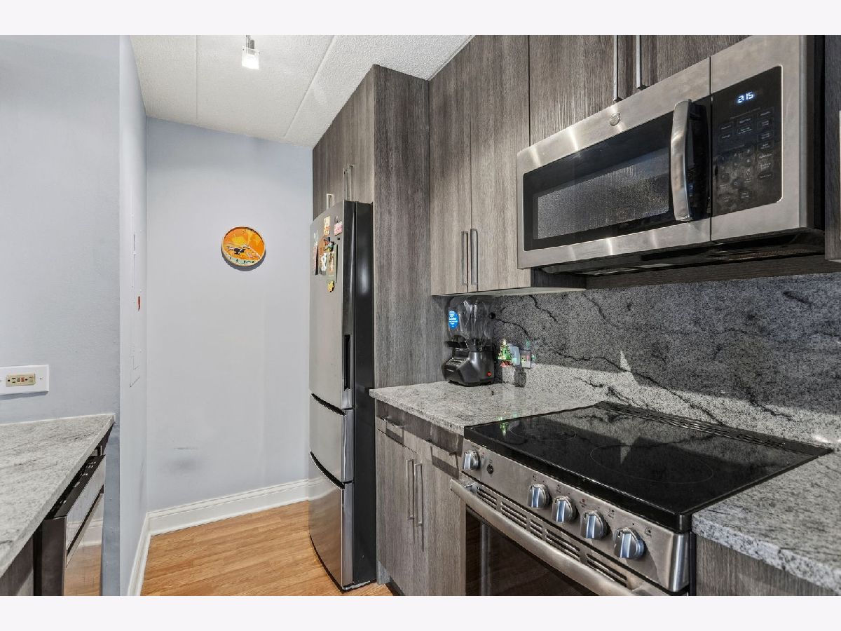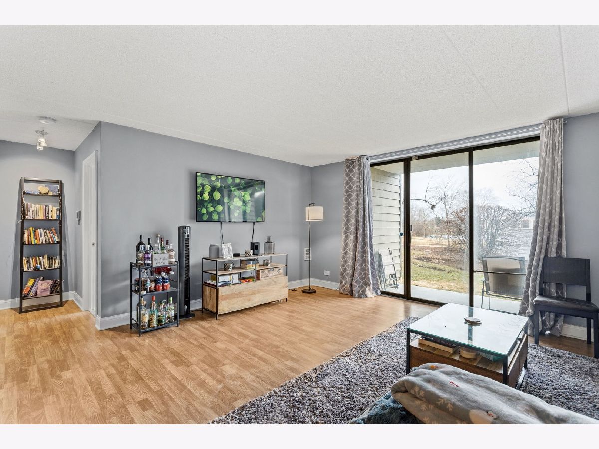 Move-in ready updated 1st floor condo in fantastic Schaumburg location! Open layout w/large sliders that lead to patio that faces pool and clubhouse- great for summer and clubhouse activities. Newly remodeled kitchen w/upscale finishes featuring Allure custom cabinets, quartz counter tops, custom back splash, breakfast bar, under-mount sink, and stainless appliances. Living room/dining room combo and large bedroom with ample closet space. Full updated bath w/newer shower surround and in-unit laundry. Dedicated storage locker on the same floor. Monthly HOA dues include water, scavenger, landscaping, and snow removal. Owner pays electric. Must see, don't miss out on this opportunity!