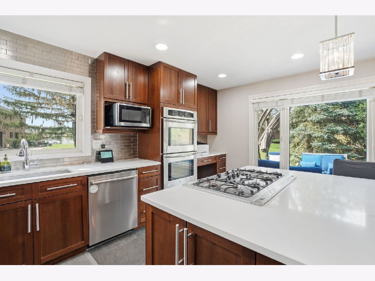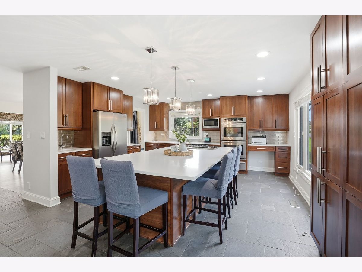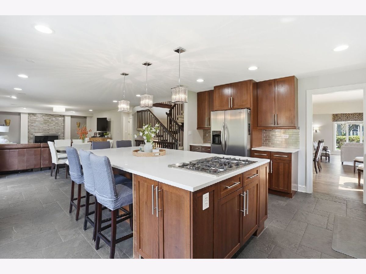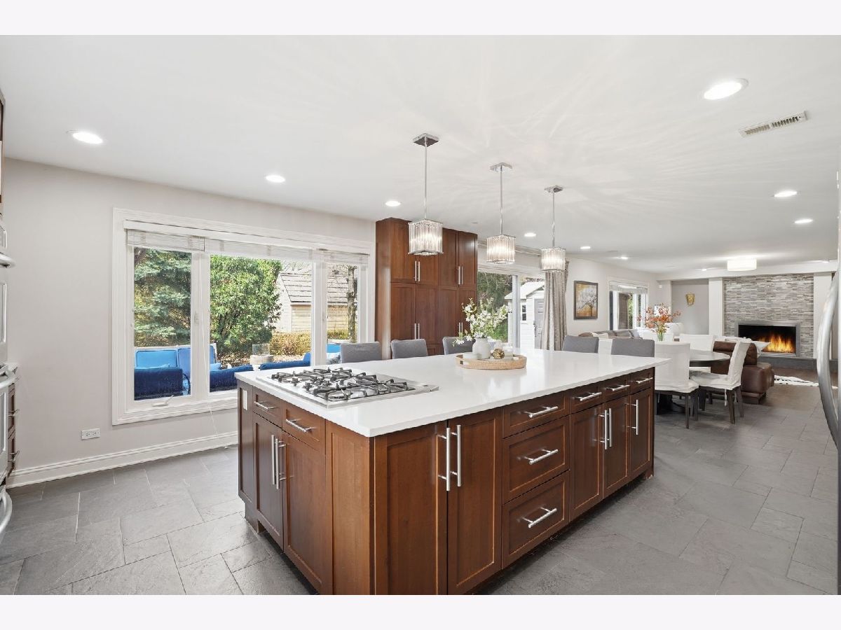 Professional photos coming soon. Beautifully updated, Mid century modern inspired home in Brook Forest, Oak Brook. 5 bedrooms, 4.1 bathrooms. Spacious 2.5 car garage. Open floor plan. Vaulted ceilings. 4103 sq ft plus 1481 sq ft basement. 2 story entry foyer and living room has a fireplace, vaulted ceilings, open to the dining room. The updated kitchen has stainless steel appliances, large island with breakfast bar, steel backsplash, quartz countertops, custom cabinetry and wet bar. The breakfast area has patio doors to the patio, yard and the family room with a fireplace. The large laundry/mud room has built in cabinetry and closets. The first floor half bathroom was a full bathroom prior to sellers converting to a powder room and can be converted back. The second floor has 4 bedrooms. The primary bedroom suite has vaulted ceilings, large walk in closet and luxurious primary bedroom. There is a princess bedroom suite with ensuite bathroom. The other 2 bedrooms are serviced by a large hall bathroom. The second floor loft with closet, overlooking the 2 story living room and foyer. This is a great place for lounging, office or den. The finished basement has a bedroom and full bathroom and a recreation area and second kitchen and bar. There is plenty of room for storage. The spacious garage is heated and has epoxy flooring. There is a covered front porch and a circular driveway. The backyard is has a beautiful rear patio made for entertaining and family enjoyment. The shed can be used for storage den,etc. The home is located across from the Brook Forest Elementary School, playgrounds, tennis courts and park. Great location with easy access to major roads, highways, Oak Brook Shopping center, Lifetime Fitness, Fullersburg Woods, Oak Brook Golf course. Butterfield Country Club and Oak Brook Sports Core.