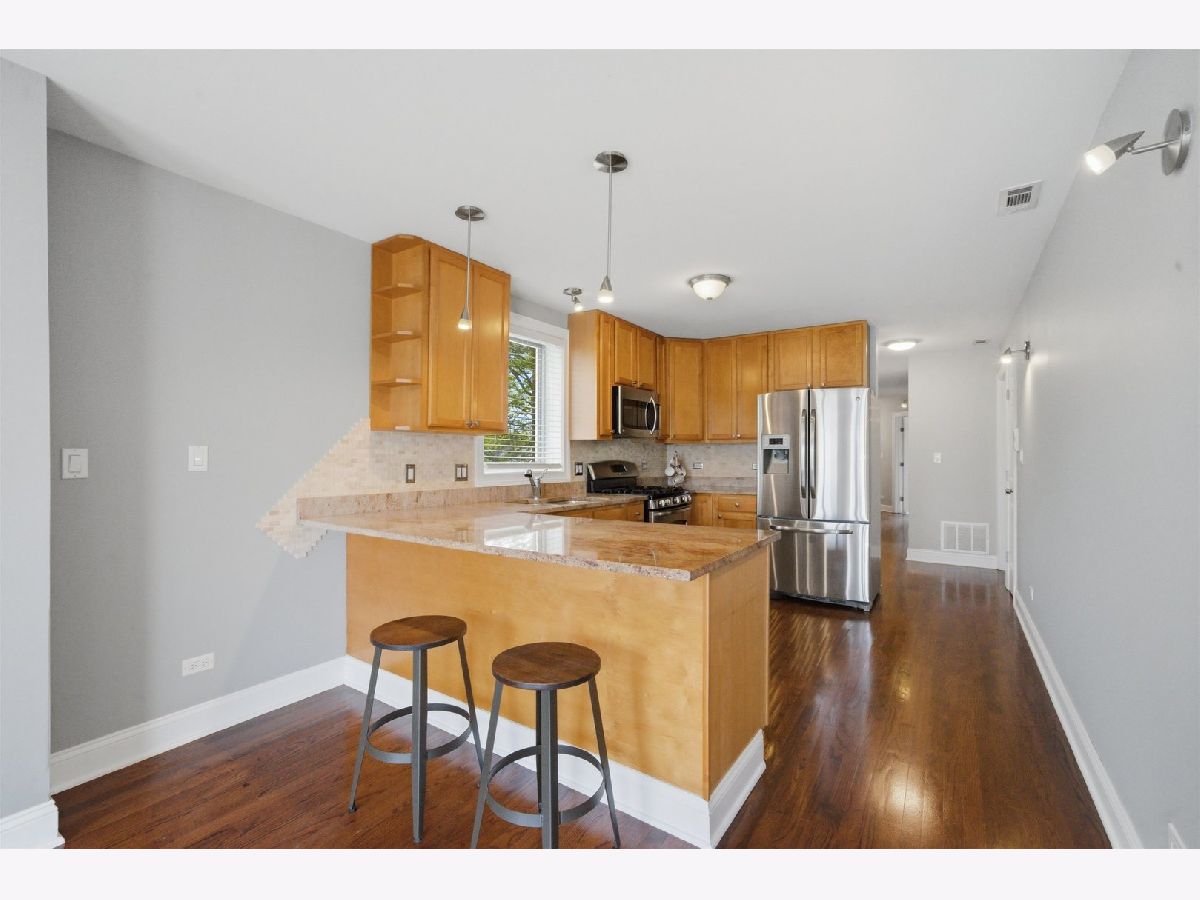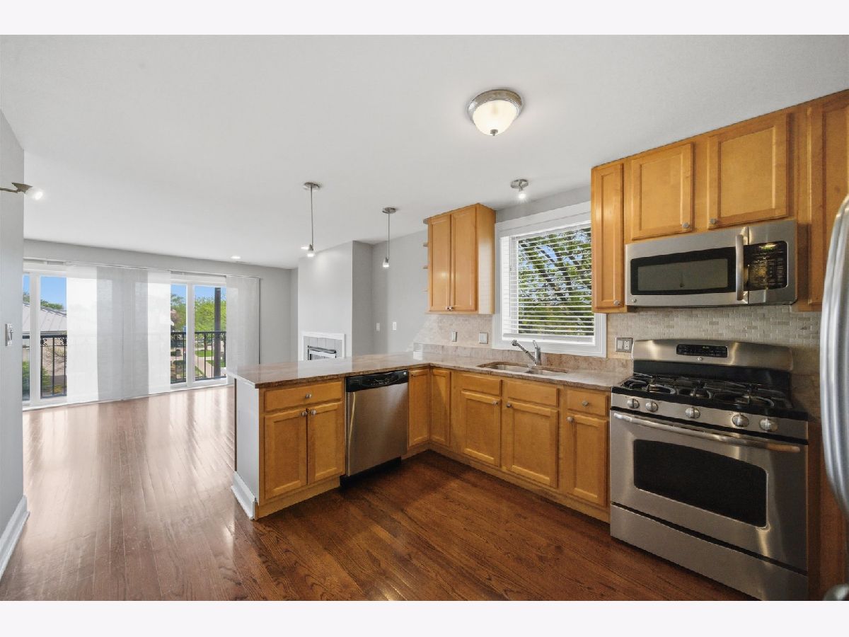 Come and see this incredible 2 bedroom, 2 bath, 2nd floor condo with modern features, hardwood floors and natural sunlight throughout this spacious unit! The main living area has an open floor plan, real fireplace and a Juliet balcony. The kitchen is a home chef's dream and has 42" inch maple cabinets, stainless steel appliances, granite counters and breakfast bar seating. The master bedroom has double closets, private rear deck access, and an on suite bathroom with a jacuzzi tub. The in-unit washer/dryer is tucked away in a hallway storage closet and there are 2 assigned exterior parking spaces! This unit is a must see for anyone looking for a Chicago address with affordable taxes and low monthly assessments. Rear stairs were recently replaced and there are no contemplated future special assessments. The property is within walking distance to Norridge Commons shopping center has easy access to I-90/94 and O'Hare airport! Call your agent and schedule your showing today as this one wont last long!