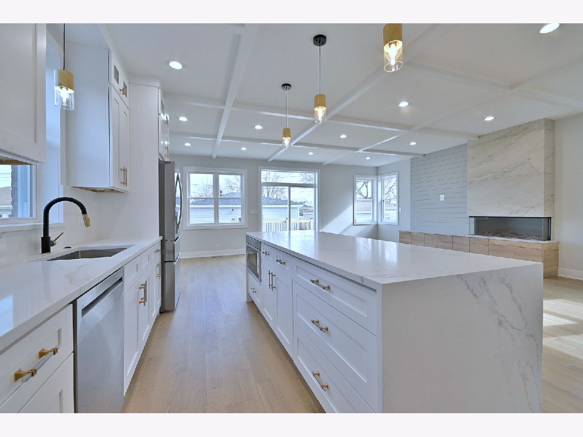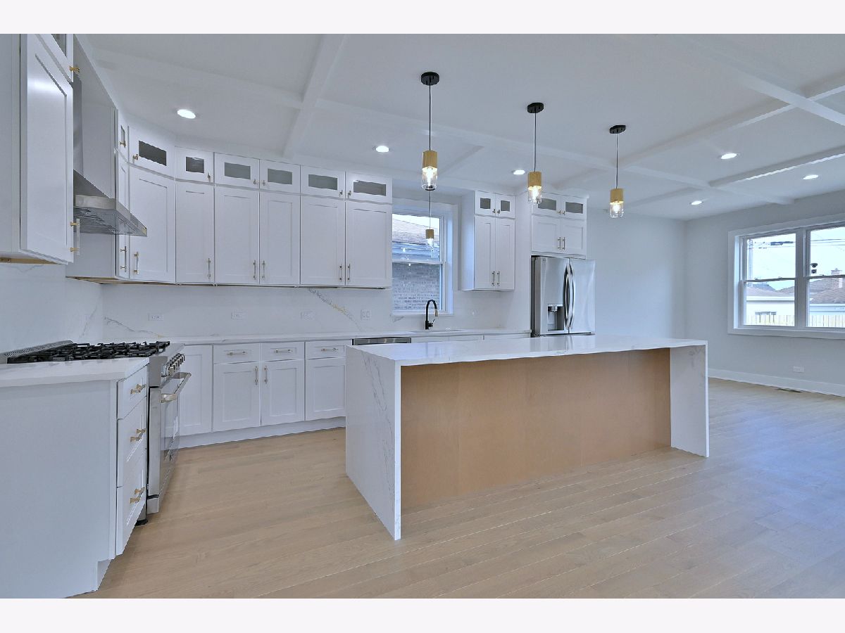 Awesome new home in Edison Park! This custom home sits on a 36 ft-wide lot and features 3,600 sq ft of floor area. No expense was spared in the expansion. The first floor offers 9 ft ceilings with an open-concept living space filled with natural light. There is a generous-sized kitchen complete with stainless steel appliances and quartz countertops that connects seamlessly with family room, which includes an entertainment center with a fireplace and TV stand. 2nd floor boasts 4 bedrooms. The luxurious Master suite features a free-standing spa tub and a steam shower. The three well-sized secondary bedrooms on this level feature custom closets and ample light even on gloomy days. A laundry room is also located on the 2nd flr for ease and convenience! The beautiful hall bath offers a double vanity and a bathtub with shower. Need more bedroom space? The full walk-out basement offers a guest bedroom, full bathroom, and huge recreational room with space for a pool table and wet bar. The large exterior features a new deck and a brick-paved patio. Built on the original foundation and will have lower real estate tax, but it is like new construction. Great location, preschool at the corner, and great elementary scholl just three blocks away.