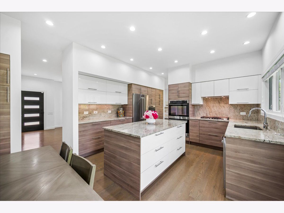 Stunning Glencoe mid-century modern home, thoughtfully rehabbed in 2017, with a freshly painted exterior and set on a beautifully landscaped .25-acre. This 4-bedroom, 3-bath residence offers the perfect blend of style, space, and functionality. The expansive living room features rich white oak hardwood floors, a dramatic stone fireplace ideal for cozy winter evenings, and oversized windows that flood the space with natural light. The open-concept layout creates seamless flow for both everyday living and effortless entertaining. The spacious dining area is perfect for hosting holidays or intimate dinners, while the sleek, modern kitchen impresses with European-style cabinetry, abundant storage, pantry space, a large island, and a sunny eat-in area. The primary suite feels like a luxurious retreat, complete with a generous bedroom, an enormous custom walk-in closet, and a spa-like bathroom featuring beautiful tile work and a private water closet. Upstairs, you'll find two additional well-sized bedrooms and a hall bath with a double vanity and tub/shower. The oversized family room offers sliding doors that open to a lush backyard-perfect for relaxing or movie nights. A fourth bedroom provides excellent flexibility as a guest room or home office. Additional highlights include a 2-car attached garage that opens to a convenient mudroom, a generator, lawn irrigation system, and mechanical updates including a new water heater, furnace, and A/C (2021). The large basement offers ample recreation space along with a dedicated workout area. Enjoy outdoor living with a patio ideal for BBQs and plenty of green space for activities. All this in a great location-just a short walk to schools, parks, town, and the train.