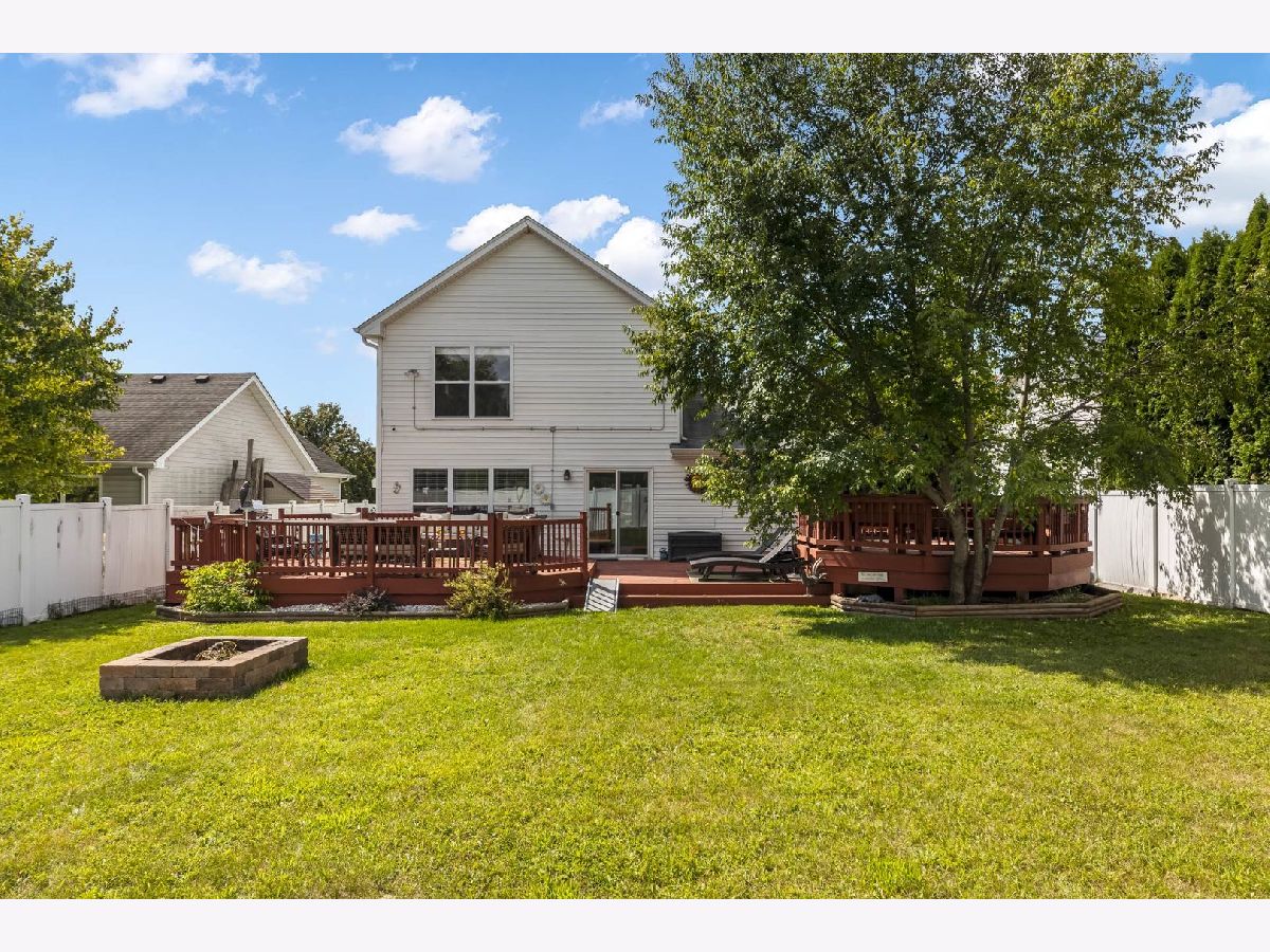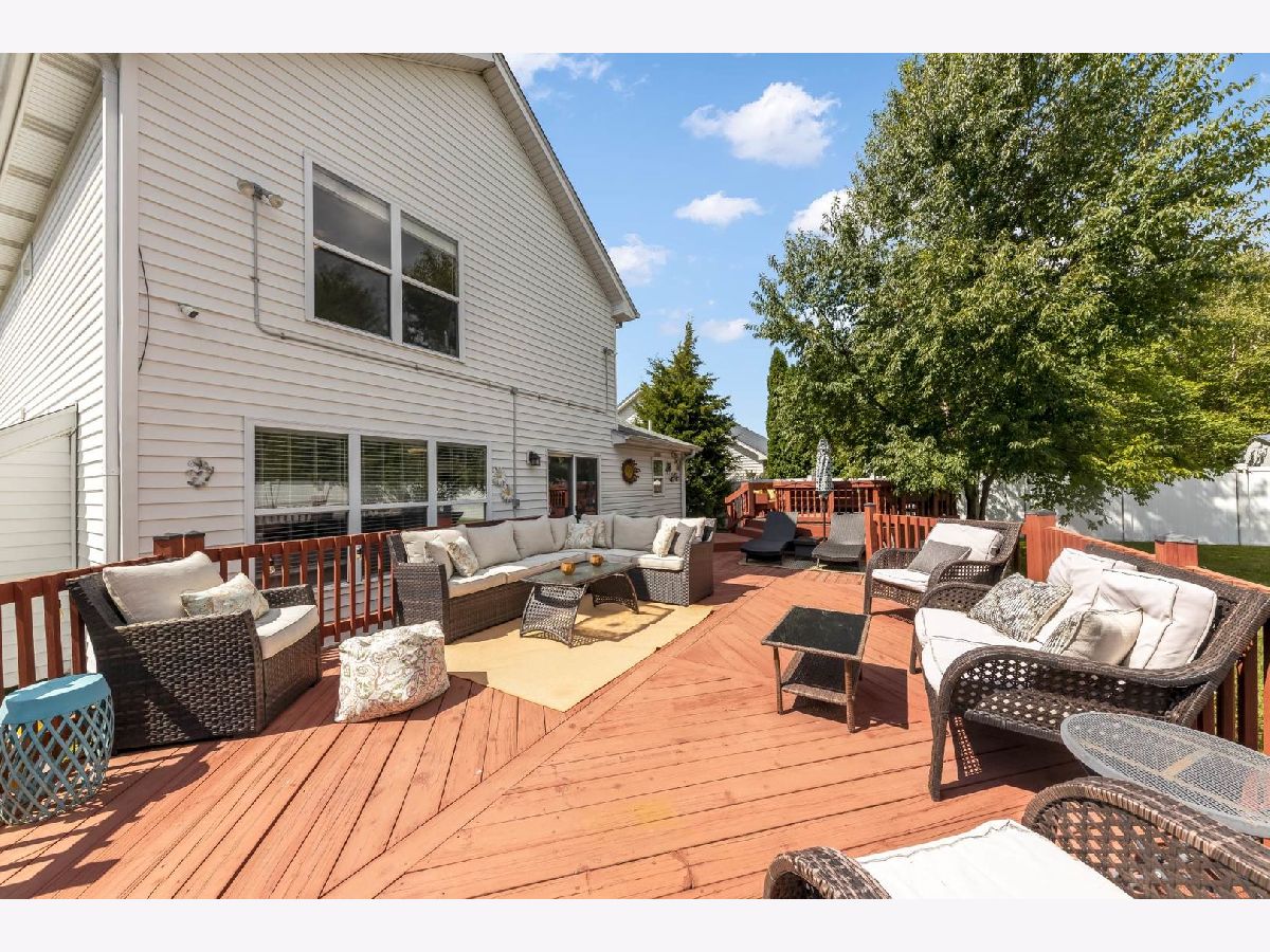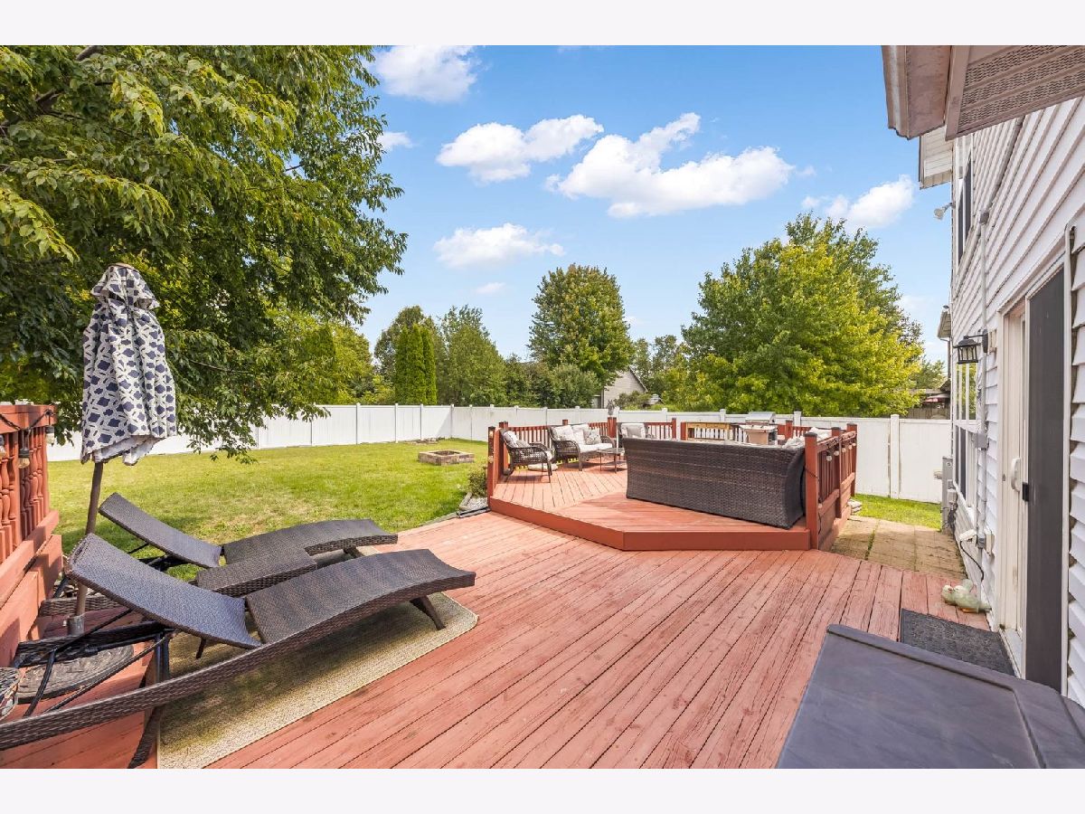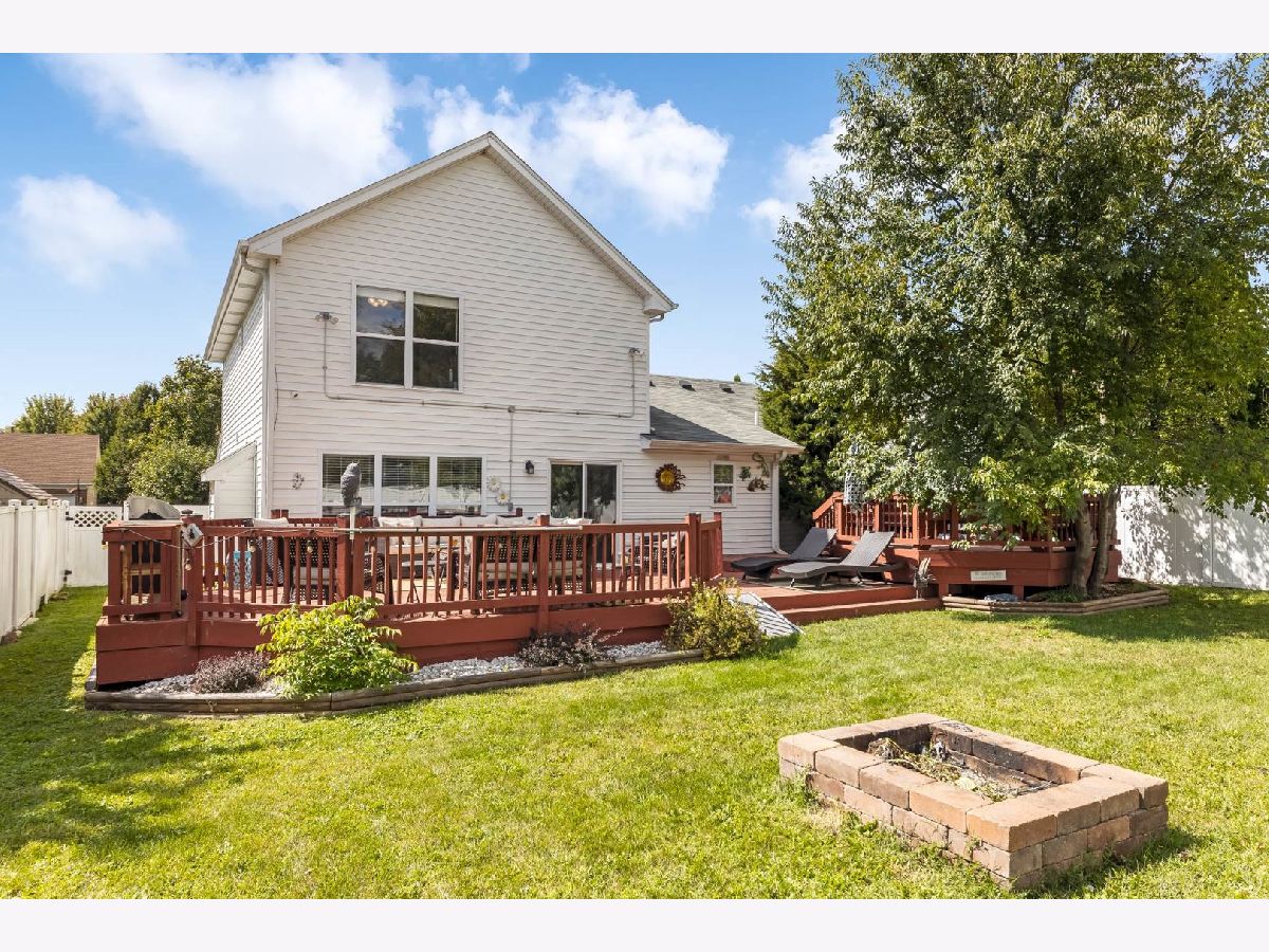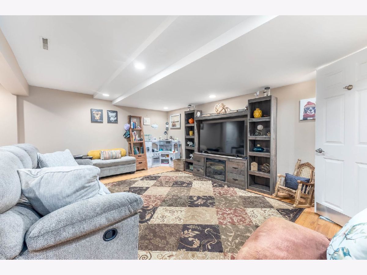 This beautiful 4 bedroom,3 bath home is located in the desirable Kensington Point neighborhood, offering both charm and comfort. Step inside to find gleaming hardwood floors throughout and a welcoming living room featuring a cozy gas-log fireplace.The formal dining room, accented by a large picture window, creates the perfect setting for gatherings.The recently updated kitchen boasts quartz countertops, stainless steel appliances, mini beverage refrigerator and a new sliding door that opens to the backyard. The primary suite impresses with a vaulted ceiling, ceiling fan, spacious walk-in closet, and an updated bathroom complete with double sinks and a sleek glass shower door. Bedrooms 2 & 3 are ample size with nice closet space. Additional bathrooms have also been thoughtfully upgraded with granite vanities, tiled showers, and modern fixtures.Convenience continues with a mud/laundry room that includes a sink along with washer and dryer. Fully finished basement with hardwood floors,leisure area,fully remodeled bath and private bedroom is perfect for teens or out of town guests. Outdoors, two expansive decks overlook the generous backyard with a fire pit, all fully enclosed by white vinyl fencing. The oversized two-car garage provides heavy-duty shelving and a pull down attic for additional storage. Ideally located near the tollway, shopping, dining, and more, this home truly has it all. Schedule your showing today and discover why this one is a must-see. Welcome home!