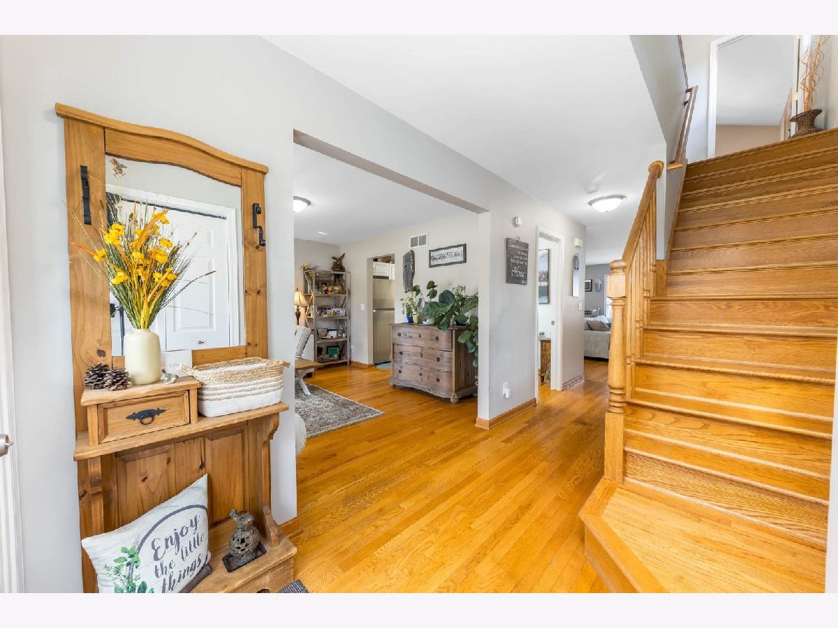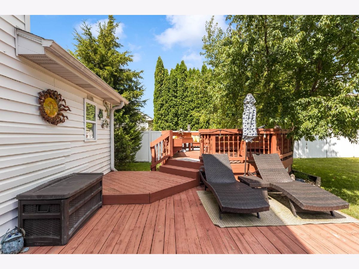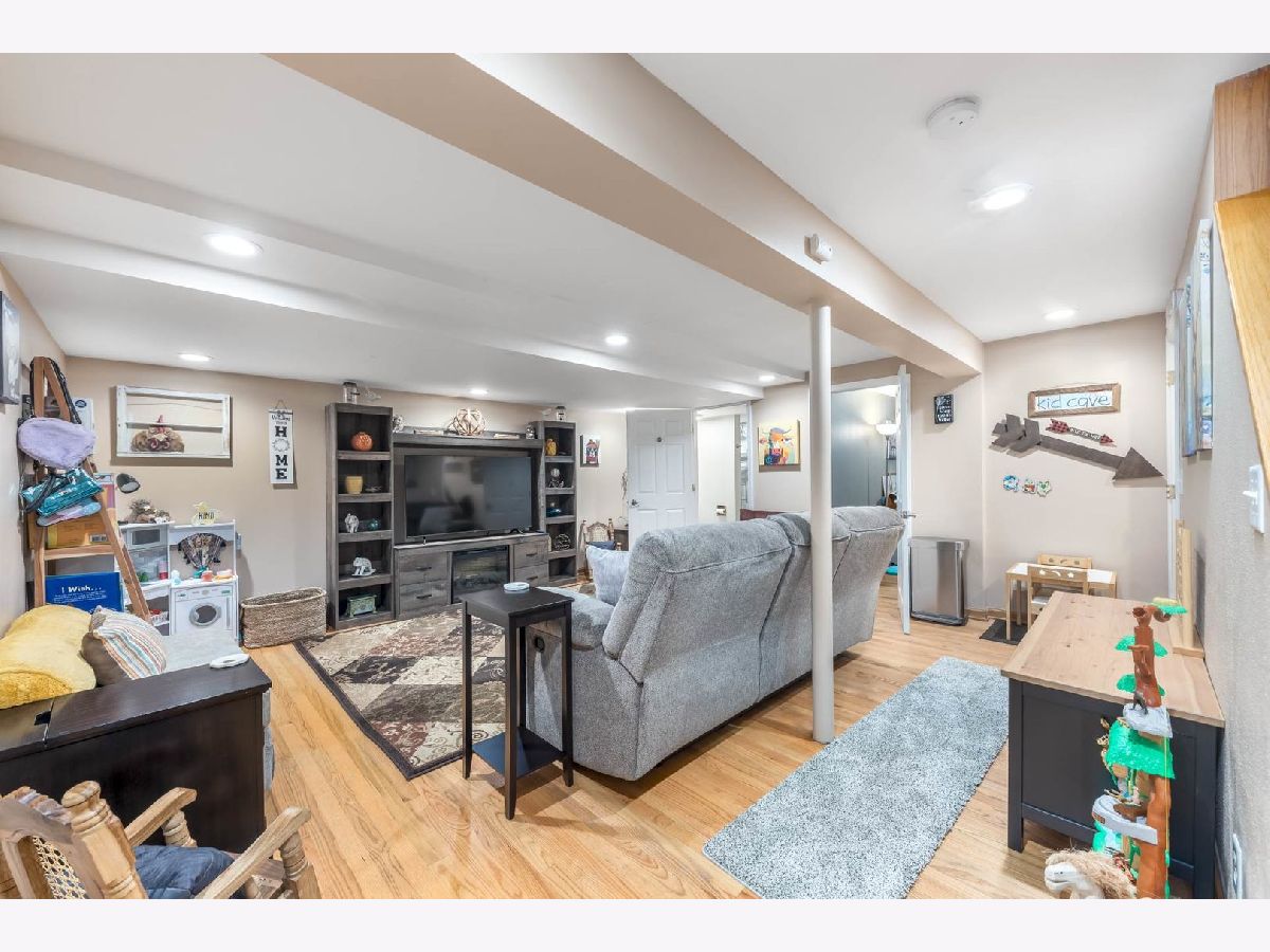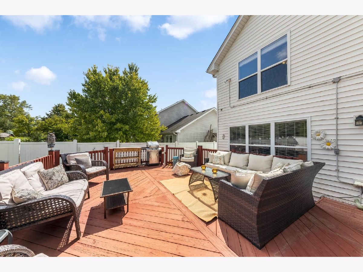 This beautiful 4 bedroom,3 bath home is located in the desirable Kensington Point neighborhood, offering both charm and comfort. Step inside to find gleaming hardwood floors throughout and a welcoming living room featuring a cozy gas-log fireplace.The formal dining room, accented by a large picture window, creates the perfect setting for gatherings.The recently updated kitchen boasts quartz countertops, stainless steel appliances, mini beverage refrigerator and a new sliding door that opens to the backyard. The primary suite impresses with a vaulted ceiling, ceiling fan, spacious walk-in closet, and an updated bathroom complete with double sinks and a sleek glass shower door. Bedrooms 2 & 3 are ample size with nice closet space. Additional bathrooms have also been thoughtfully upgraded with granite vanities, tiled showers, and modern fixtures.Convenience continues with a mud/laundry room that includes a sink along with washer and dryer. Fully finished basement with hardwood floors,leisure area,fully remodeled bath and private bedroom is perfect for teens or out of town guests. Outdoors, two expansive decks overlook the generous backyard with a fire pit, all fully enclosed by white vinyl fencing. The oversized two-car garage provides heavy-duty shelving and a pull down attic for additional storage. Ideally located near the tollway, shopping, dining, and more, this home truly has it all. Schedule your showing today and discover why this one is a must-see. Welcome home!