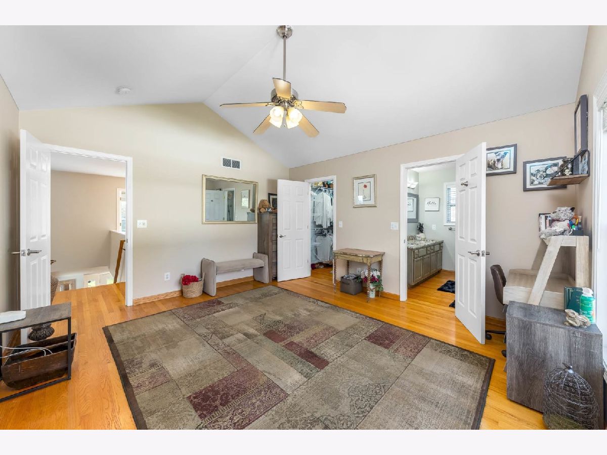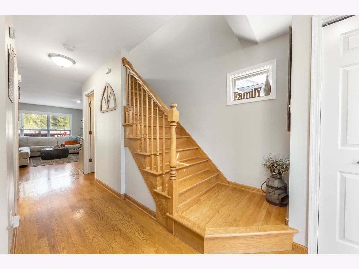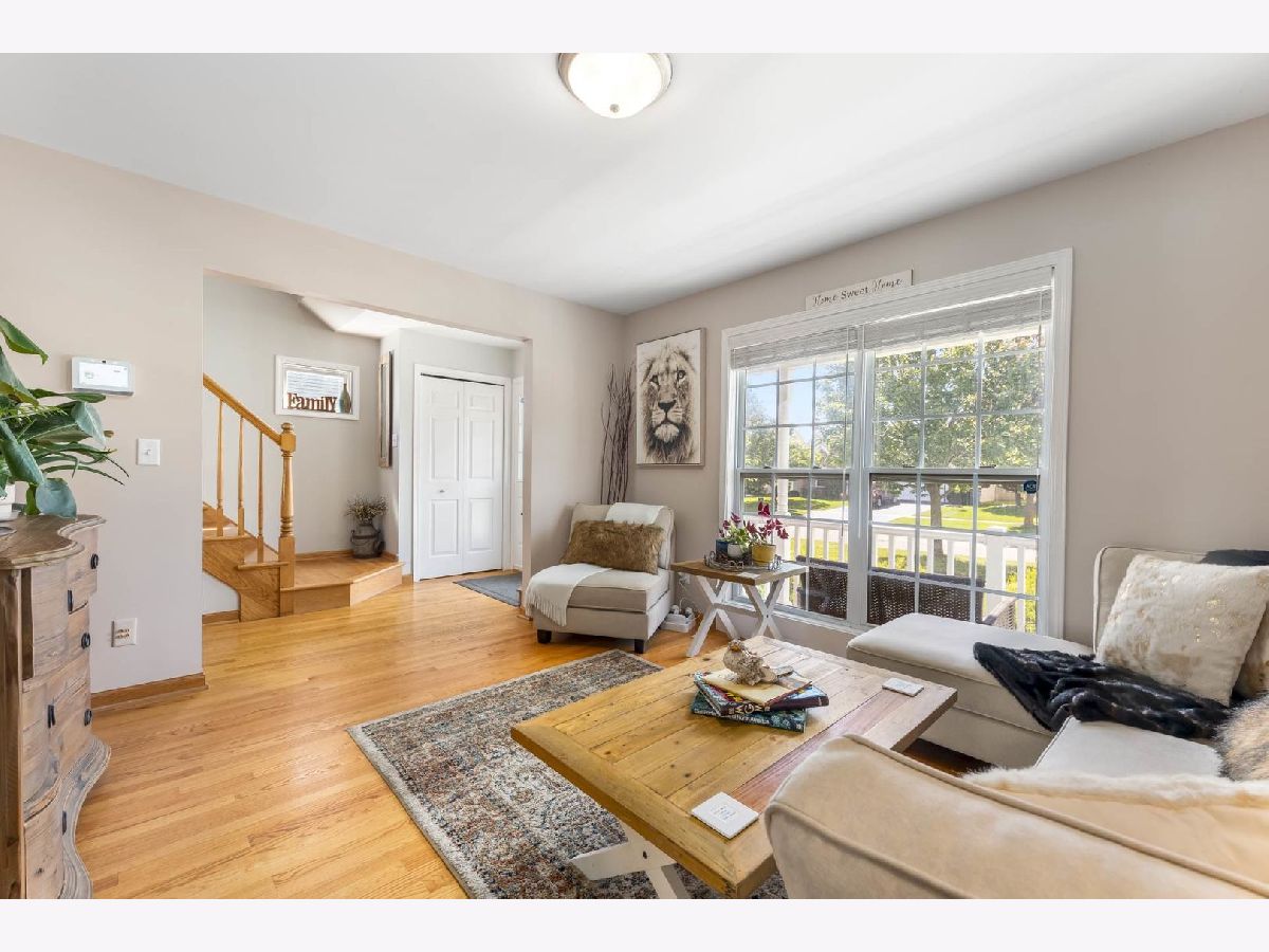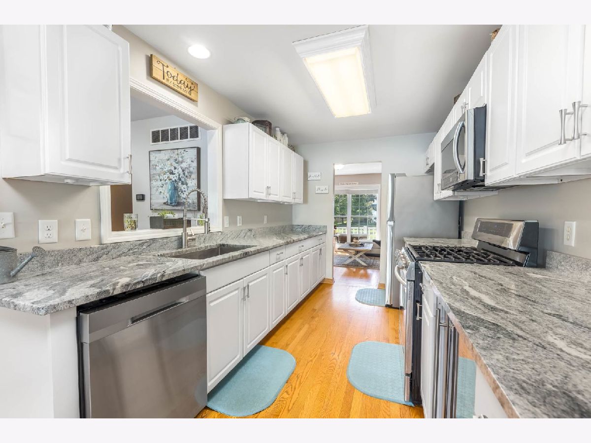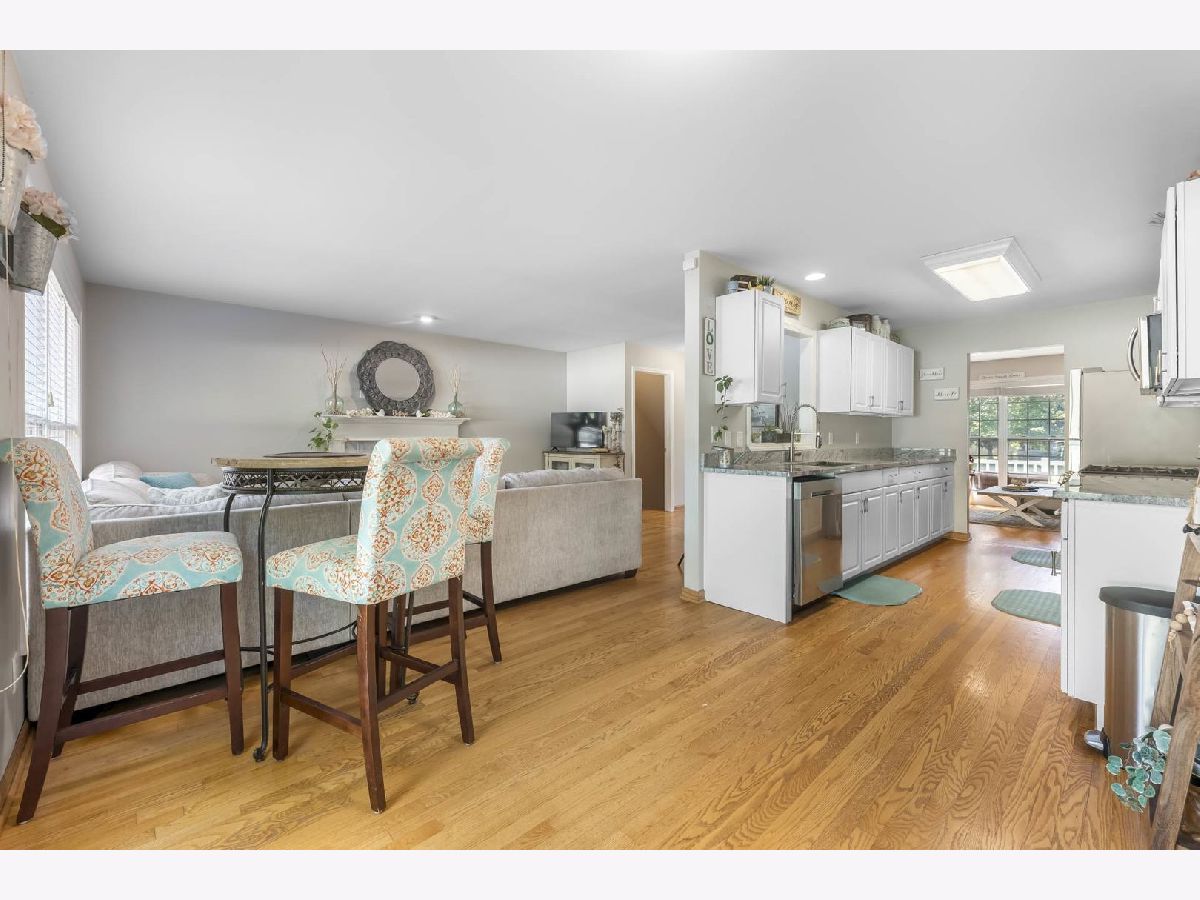 This beautiful 4 bedroom,3 bath home is located in the desirable Kensington Point neighborhood, offering both charm and comfort. Step inside to find gleaming hardwood floors throughout and a welcoming living room featuring a cozy gas-log fireplace.The formal dining room, accented by a large picture window, creates the perfect setting for gatherings.The recently updated kitchen boasts quartz countertops, stainless steel appliances, mini beverage refrigerator and a new sliding door that opens to the backyard. The primary suite impresses with a vaulted ceiling, ceiling fan, spacious walk-in closet, and an updated bathroom complete with double sinks and a sleek glass shower door. Bedrooms 2 & 3 are ample size with nice closet space. Additional bathrooms have also been thoughtfully upgraded with granite vanities, tiled showers, and modern fixtures.Convenience continues with a mud/laundry room that includes a sink along with washer and dryer. Fully finished basement with hardwood floors,leisure area,fully remodeled bath and private bedroom is perfect for teens or out of town guests. Outdoors, two expansive decks overlook the generous backyard with a fire pit, all fully enclosed by white vinyl fencing. The oversized two-car garage provides heavy-duty shelving and a pull down attic for additional storage. Ideally located near the tollway, shopping, dining, and more, this home truly has it all. Schedule your showing today and discover why this one is a must-see. Welcome home!