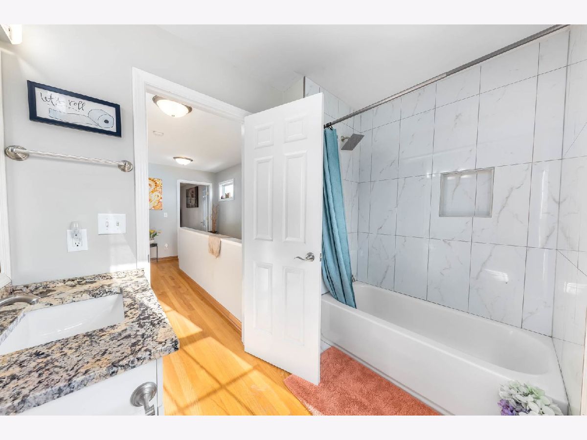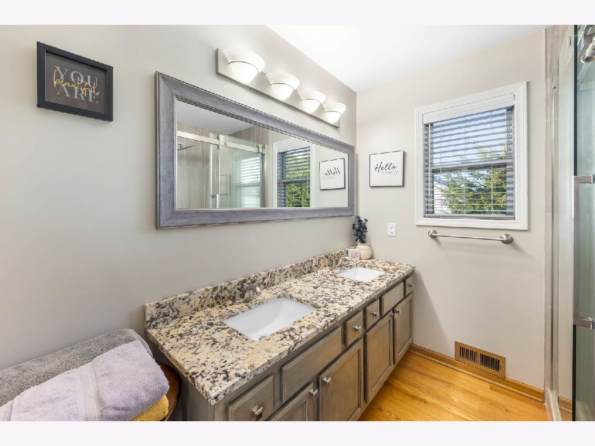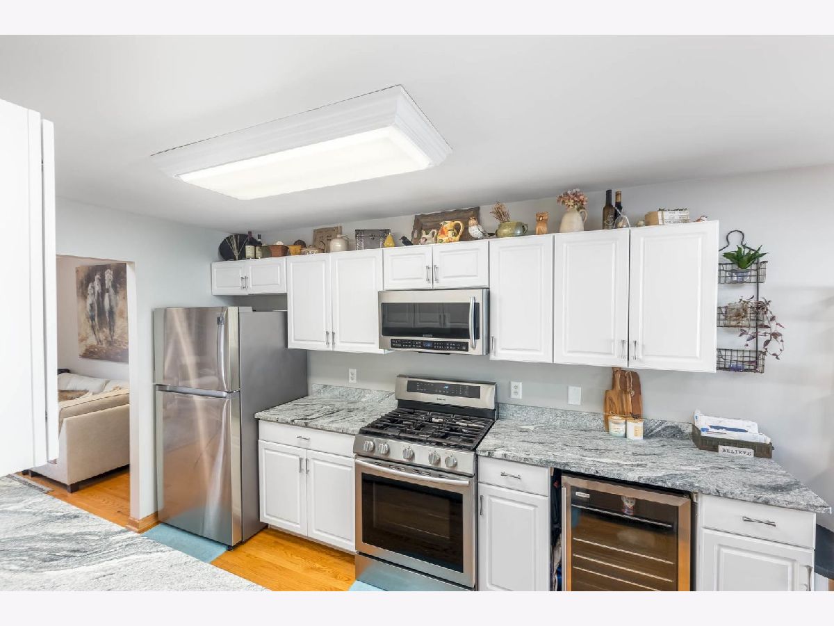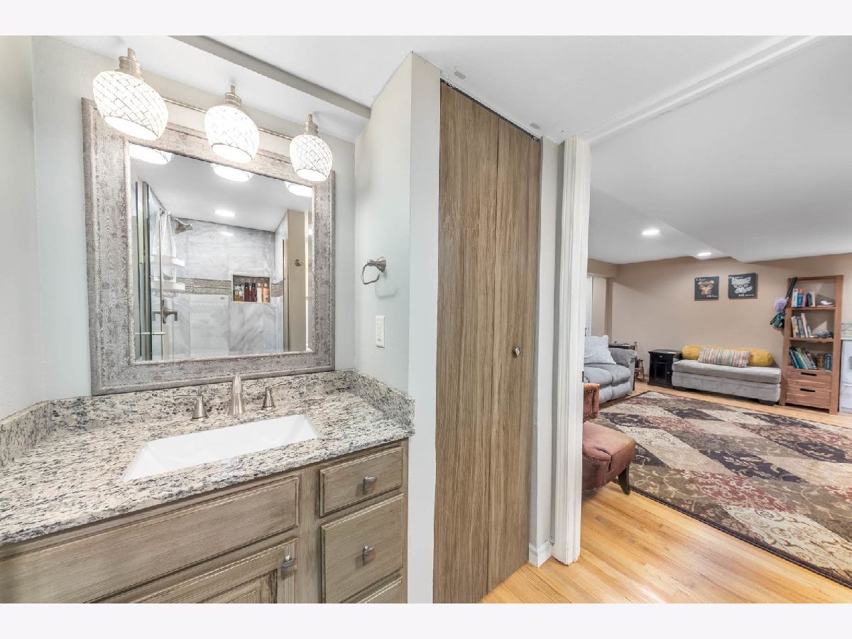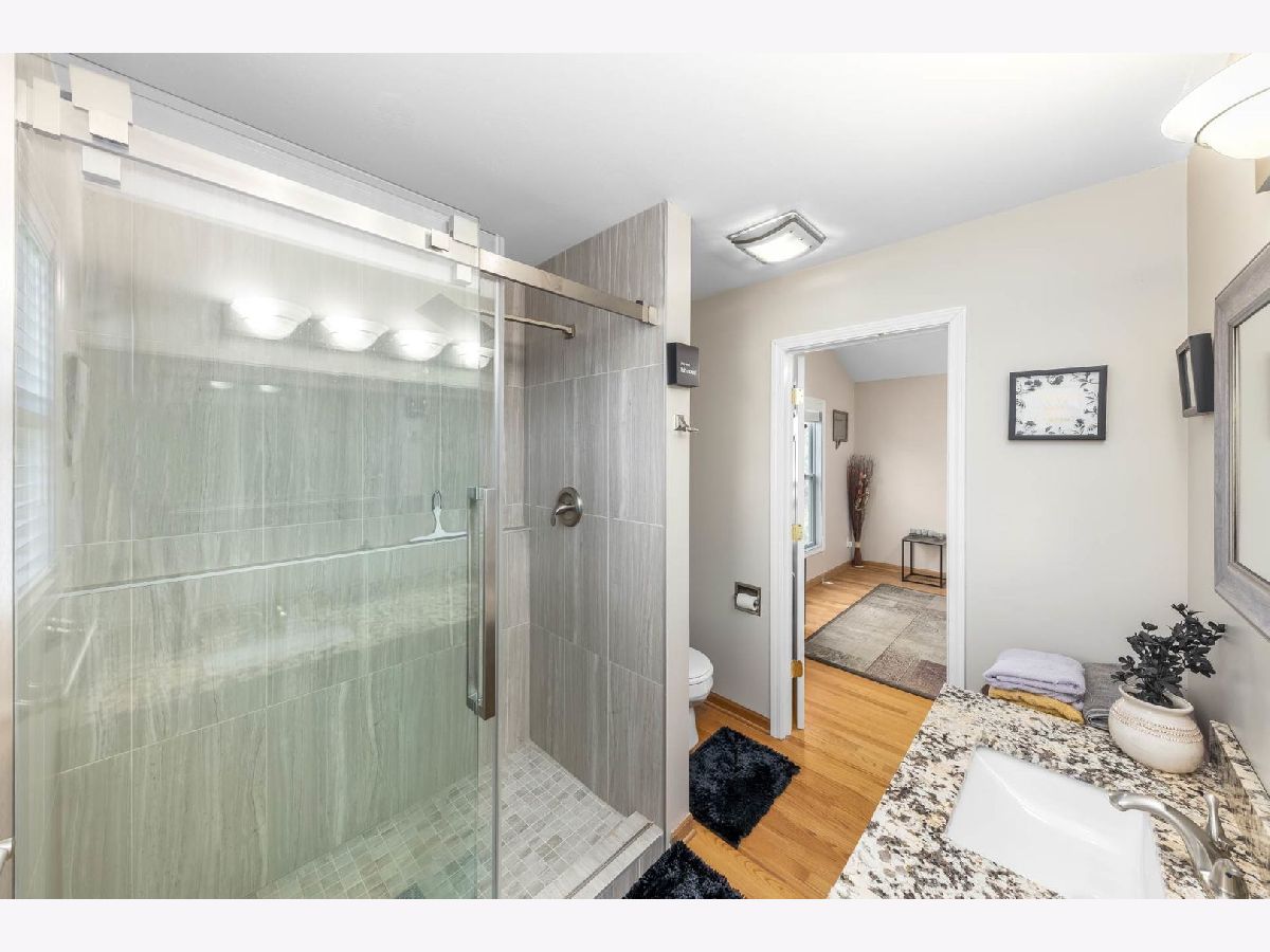 This beautiful 4 bedroom,3 bath home is located in the desirable Kensington Point neighborhood, offering both charm and comfort. Step inside to find gleaming hardwood floors throughout and a welcoming living room featuring a cozy gas-log fireplace.The formal dining room, accented by a large picture window, creates the perfect setting for gatherings.The recently updated kitchen boasts quartz countertops, stainless steel appliances, mini beverage refrigerator and a new sliding door that opens to the backyard. The primary suite impresses with a vaulted ceiling, ceiling fan, spacious walk-in closet, and an updated bathroom complete with double sinks and a sleek glass shower door. Bedrooms 2 & 3 are ample size with nice closet space. Additional bathrooms have also been thoughtfully upgraded with granite vanities, tiled showers, and modern fixtures.Convenience continues with a mud/laundry room that includes a sink along with washer and dryer. Fully finished basement with hardwood floors,leisure area,fully remodeled bath and private bedroom is perfect for teens or out of town guests. Outdoors, two expansive decks overlook the generous backyard with a fire pit, all fully enclosed by white vinyl fencing. The oversized two-car garage provides heavy-duty shelving and a pull down attic for additional storage. Ideally located near the tollway, shopping, dining, and more, this home truly has it all. Schedule your showing today and discover why this one is a must-see. Welcome home!
