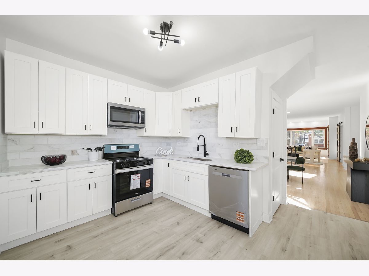 Welcome to 7545, a beautifully updated South Shore brick bungalow that perfectly blends timeless charm with modern comfort. This 4-bedroom, 2-bath home offers three levels of living space, featuring designer tiling, modern light fixtures, and an open-concept living and dining area ideal for entertaining. The renovated kitchen showcases sleek finishes, ample cabinetry, and thoughtful design throughout. With two bedrooms on the main level, the layout is perfect for multi-generational living or anyone seeking convenience and flexibility. Enjoy an all-seasons front porch, mudroom off the kitchen, and a fully fenced backyard with a deck and two-car garage-perfect for gatherings and summer barbecues. Located in the heart of vibrant South Shore, you'll love being just minutes from Lake Michigan, the South Shore Cultural Center, the upcoming Obama Presidential Library, and easy Metra access for a quick downtown commute. This home truly captures the essence of classic Chicago architecture paired with the perks of modern, coastal city living.