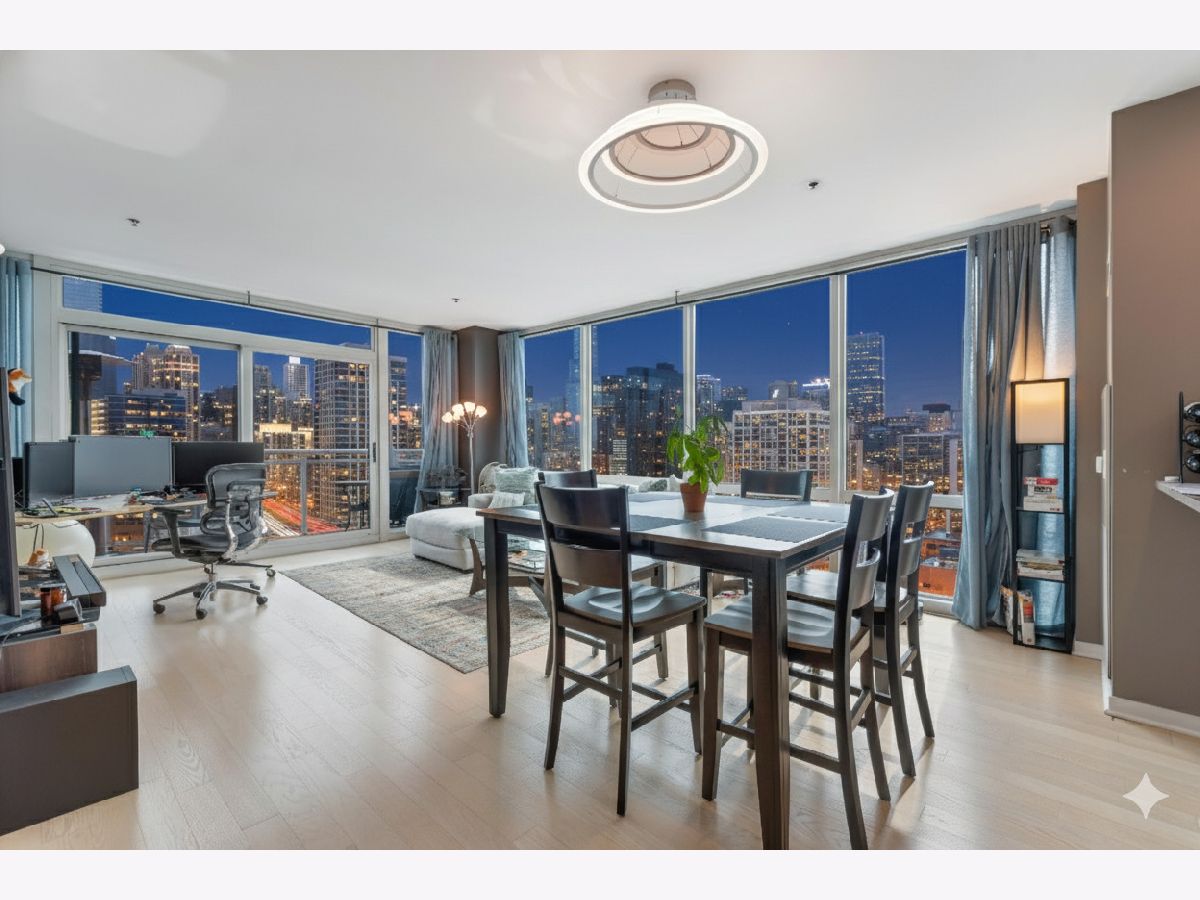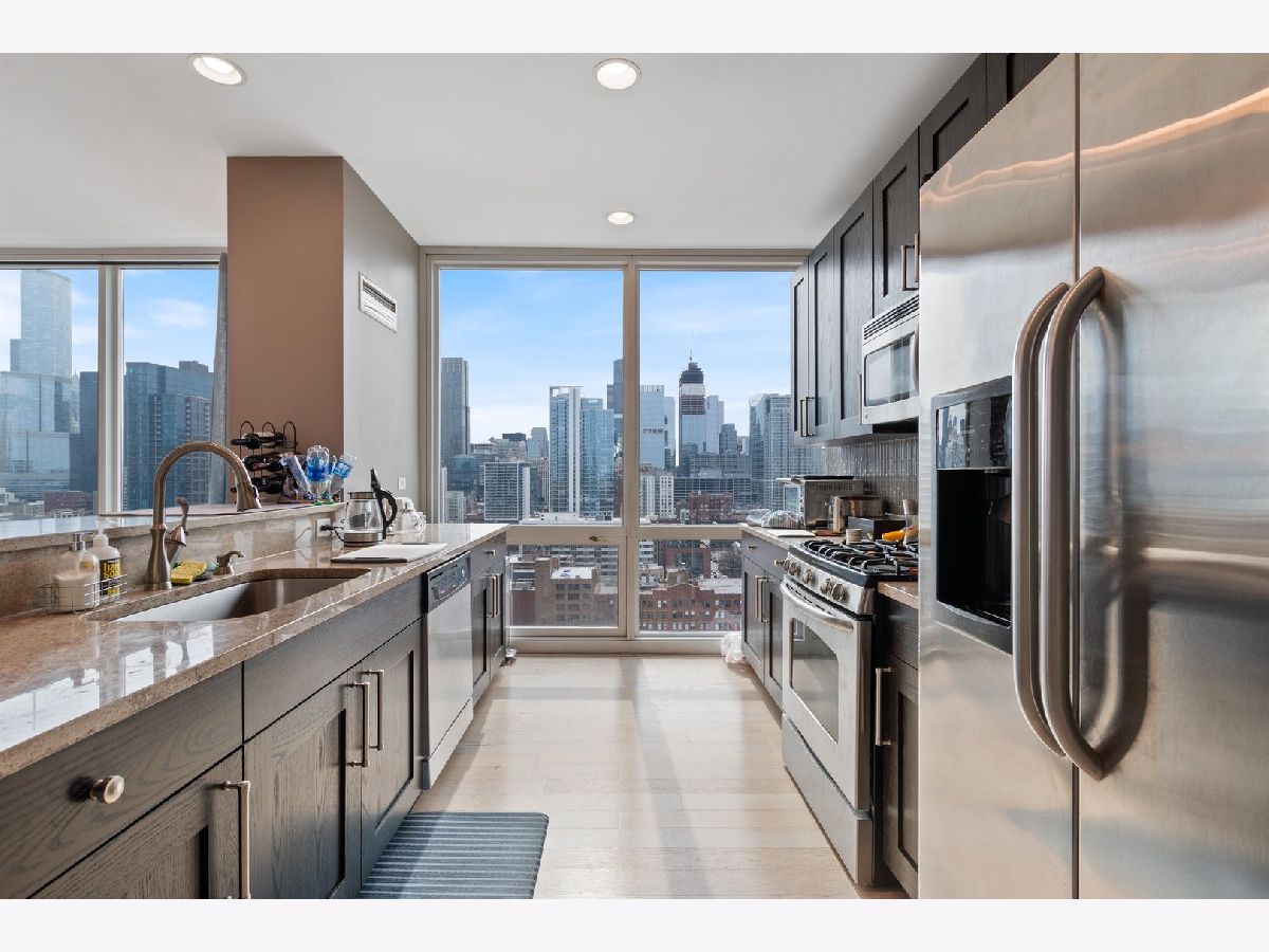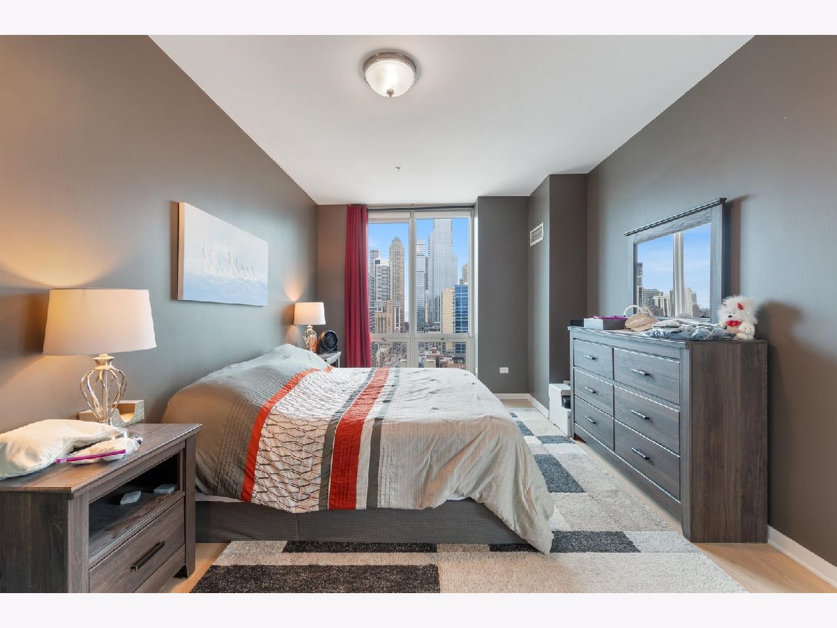 2 bd/2 ba in River North with jaw-dropping, unobstructed panoramic views of the Chicago Skyline w/Parking Included! This rarely available South East corner unit features flr-to-ceiling window, large private balcony off the living space to take in the city & even a glimmer of Lake Michigan! Spacious open floor plan offers room for a dining area and breakfast bar. Open kitchen with stainless steel appliances, granite countertops, breakfast bar & custom backsplash. Master bedroom with ensuite bathroom, large vanity, separate shower, soaking tub and concrete vanity top. Bright second bedroom with custom built-in closets. Fantastic full amenity building with 24 hour doorman, outdoor pool, gym and business center. Steps from the CTA Brown Line, trendy restaurants, shopping, easy highway access and more! Perfect location! ***Investors Only for now - Leased until May 2027***! No Rental Restrictions***
