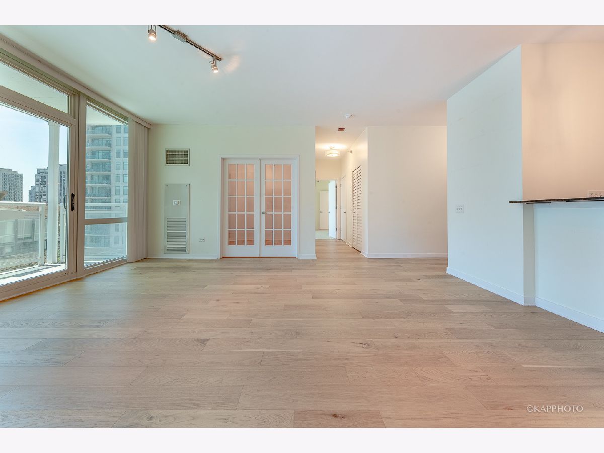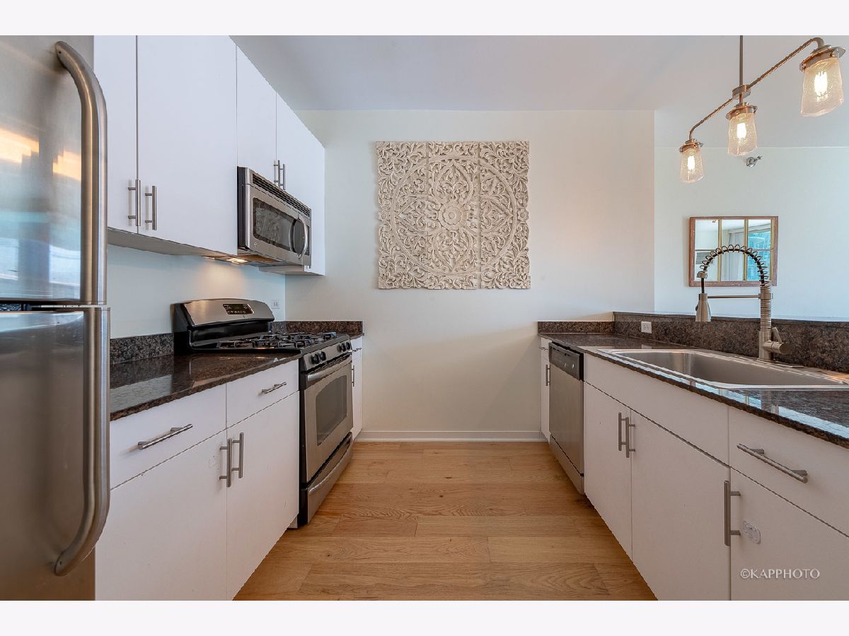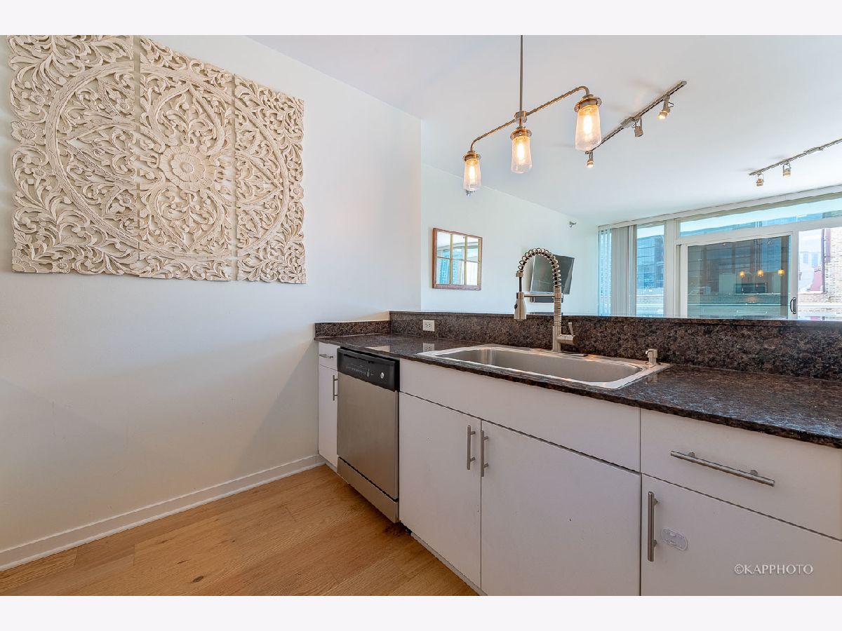 River North living at its finest! Stunning 2 bedroom condo in a full amenity building. Open and functional floor plan with newer flooring throughout. Bright and spacious living and dining room flows into the kitchen with a breakfast bar, granite counters, and stainless steel appliances. Floor-to-ceiling windows throughout. Master bedroom is en suite with a newer master bathroom. South-facing unit offers loads of light. W/D in unit. 24-hour doorman, incredible outdoor pool with panoramic city views, fitness center, business center, dry cleaners, and party room. This River North location is superb! Easy access to the Loop. Walk to CTA, trendy shopping, and fine dining! CASH ONLY