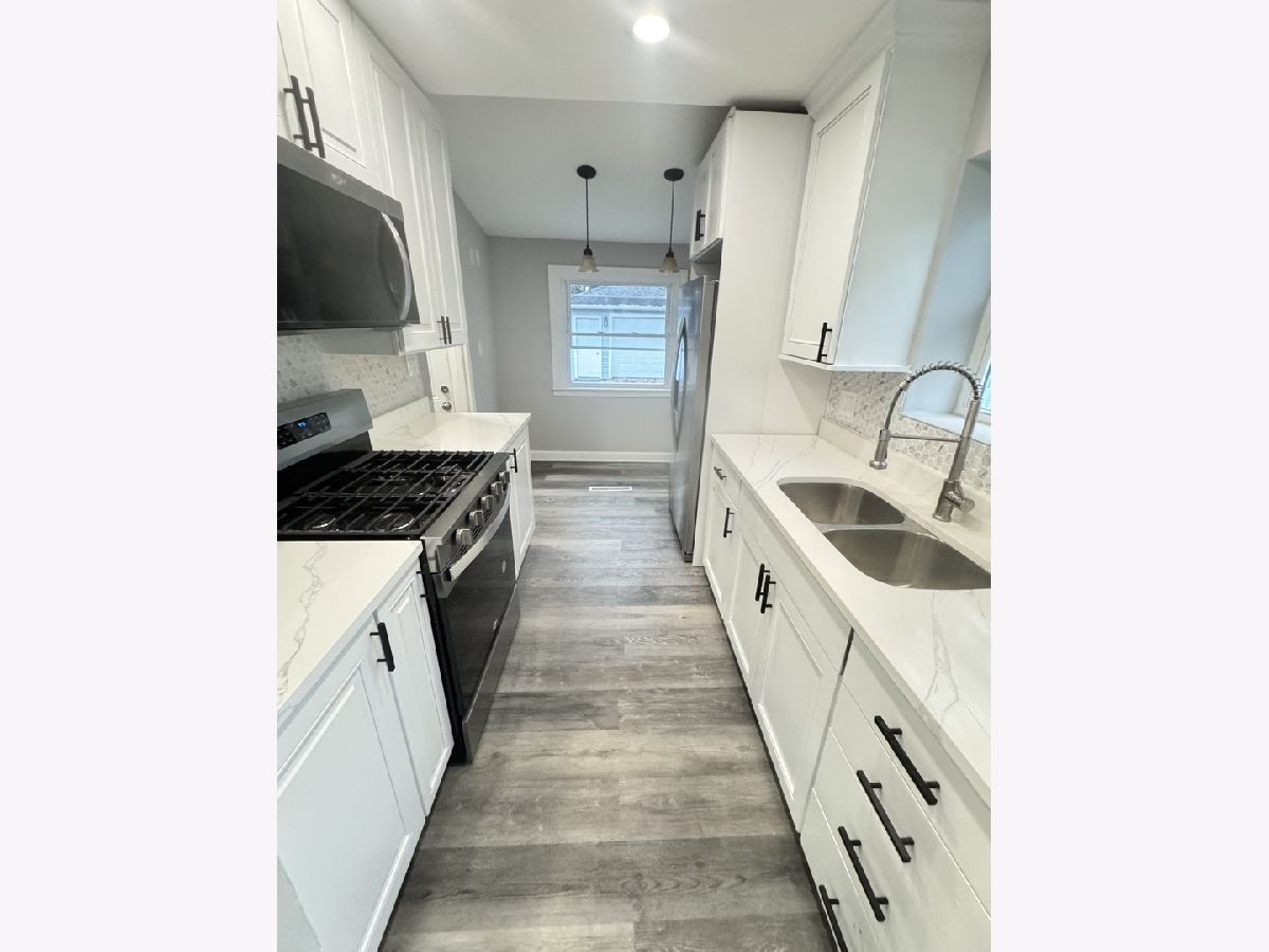 Beautifully rehabbed single-family ranch home with modern finishes throughout. This home features all-new waterproof vinyl flooring, a brand-new kitchen with abundant cabinet space, quartz countertops, and new stainless steel appliances. The main level offers three spacious bedrooms and one fully updated bathroom, providing comfortable one-floor living. The Home also features upgraded electrical and plumbing systems, providing buyers with peace of mind for years to come. The finished basement adds exceptional additional living space, including two large bonus rooms, a full bathroom, a dedicated laundry room, a utility room, and a generous living/lounge area perfect for entertaining or extended family. Enjoy outdoor living on the oversized back deck overlooking a large, private backyard-ideal for gatherings, kids, or pets. The fully rehabbed garage provides extra storage and convenience. Move-in ready and designed for today's lifestyle-nothing to do but unpack and enjoy!