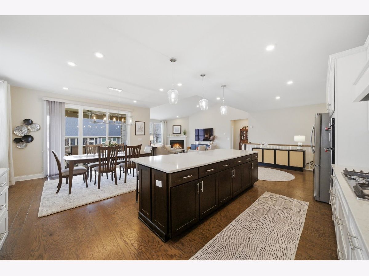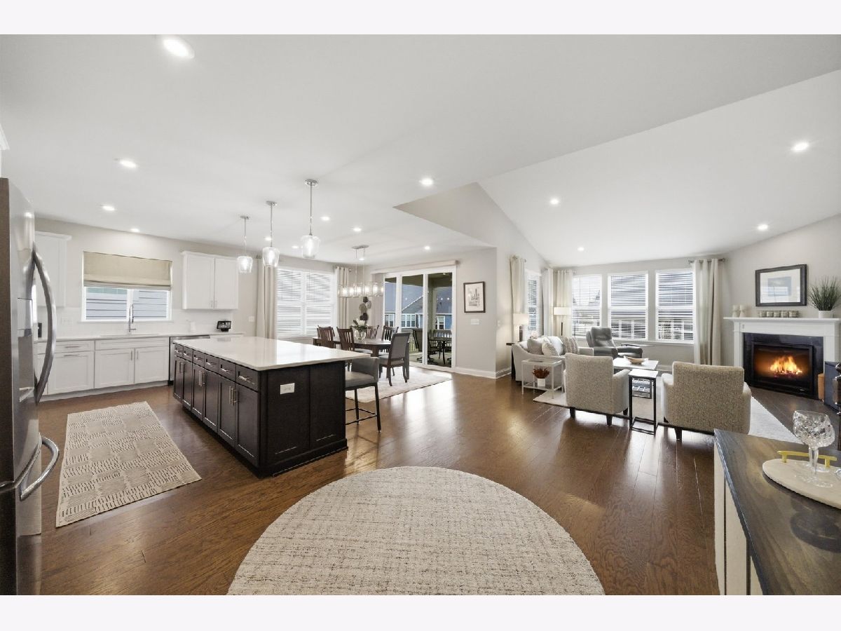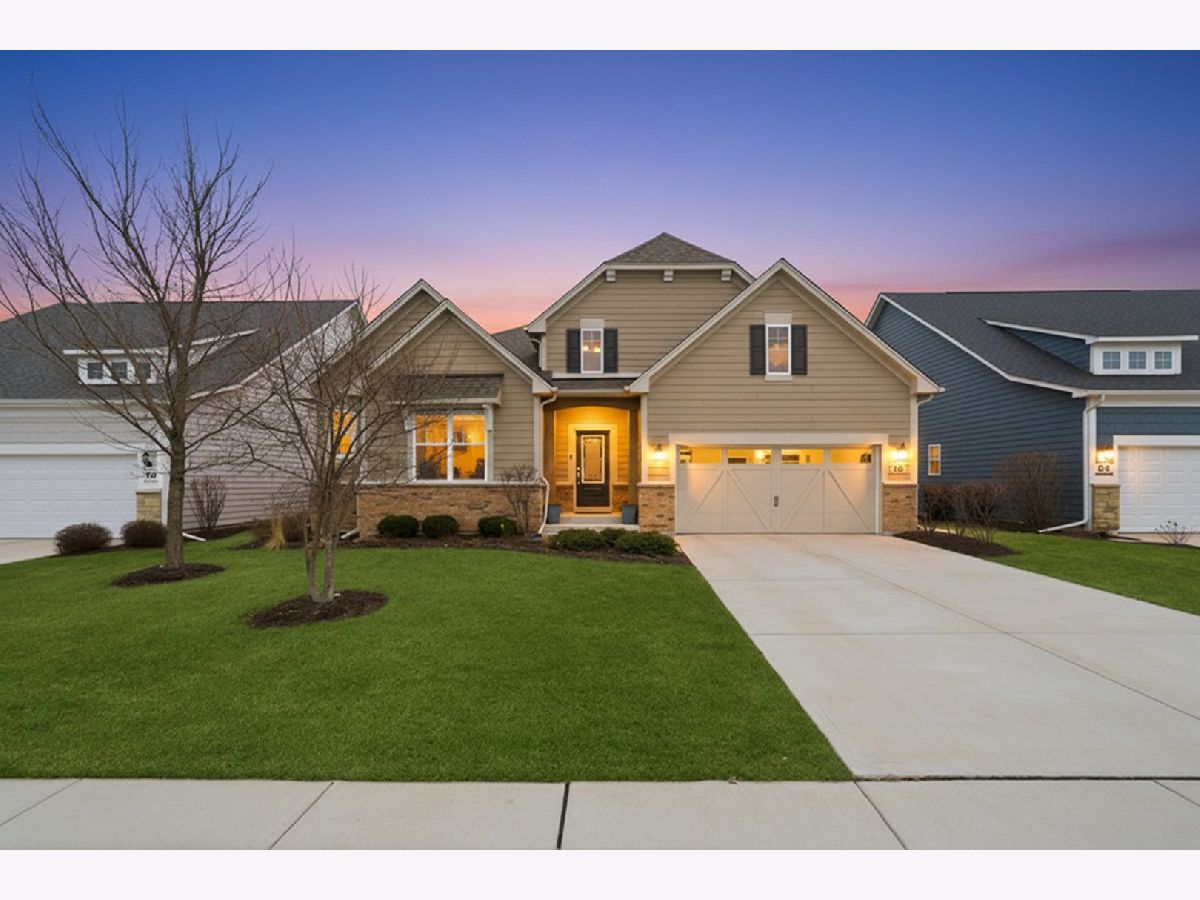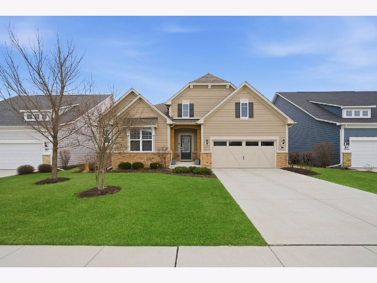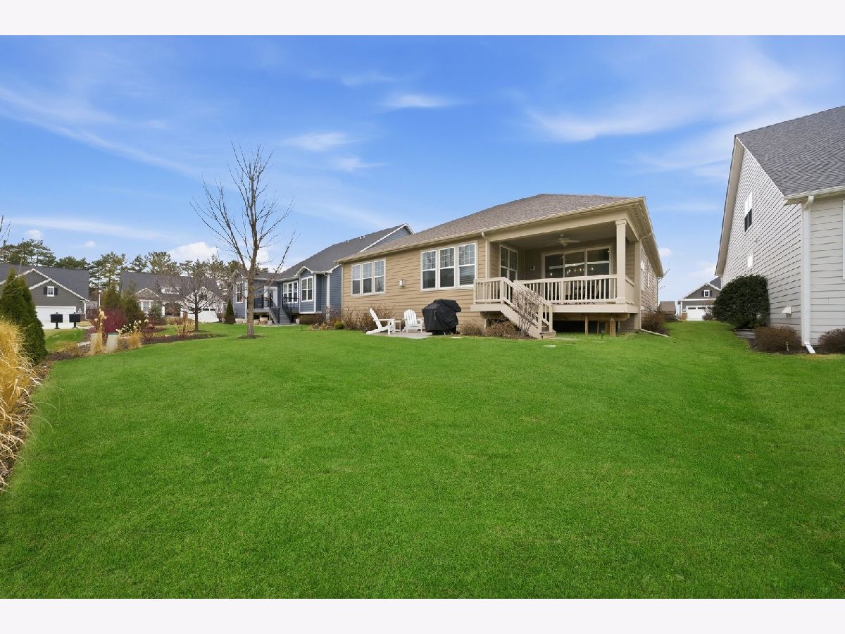 Welcome to the beautifully upgraded Lyon ranch model in the sought-after Loretto Club of south Wheaton. Built by Pulte Homes beginning in 2018-2020 on the former Loretto Convent site, this upscale enclave is ideally situated at the end of Somerset Lane between Chicago Golf Club and Seven Gables Park. Residents enjoy direct walking path access to the park's 66.5 acres of trails, sports fields, and tennis courts, while being just one mile to Danada Square and less than three miles to downtown Wheaton. Located west of Naperville Road and north of Butterfield Road, and served by Wheaton Community Unit School District 200. This spacious single-story home offers open-concept living with numerous upgrades throughout. Highlights include upgraded hardwood flooring, crown molding, tray ceilings, an elevated living room ceiling, and a gas fireplace. The kitchen features a walk-in pantry, quartz countertops, oversized island, KitchenAid gas cooktop, built-in oven and microwave, dishwasher, and Frigidaire Gallery refrigerator. LG washer and dryer are also included. The luxurious primary suite boasts an upgraded spa-style shower with rain showerhead, handheld, and four body sprays. A full unfinished English basement provides excellent storage or future expansion potential. Enjoy morning coffee in the dining area overlooking your covered deck, with views of mature trees, professional landscaping, Seven Gables Park & Chicago Golf Club. The professionally landscaped yard includes a sprinkler system and a new concrete patio perfect for grilling. Custom window treatments and drapes are included throughout the home. Experience low-maintenance living at its finest with HOA-covered lawn care and snow removal in one of Wheaton's most desirable communities.