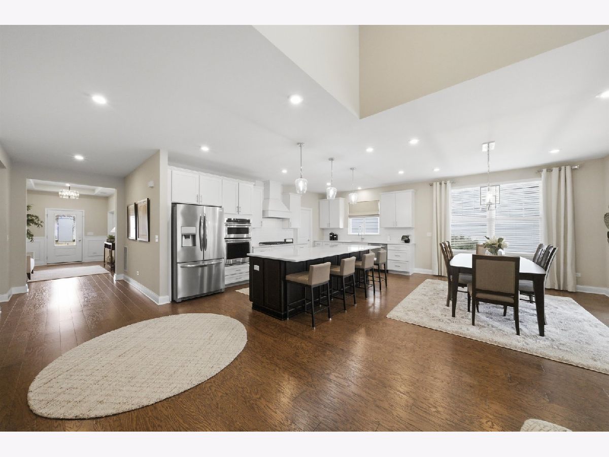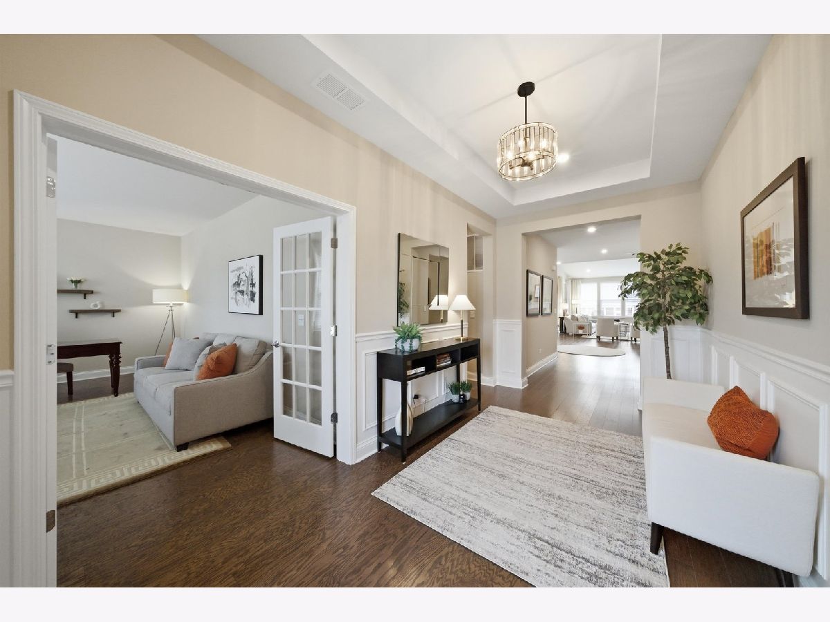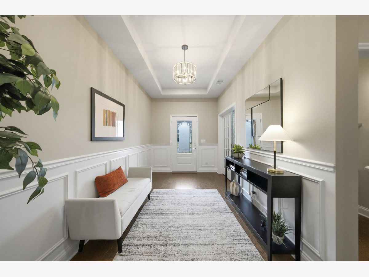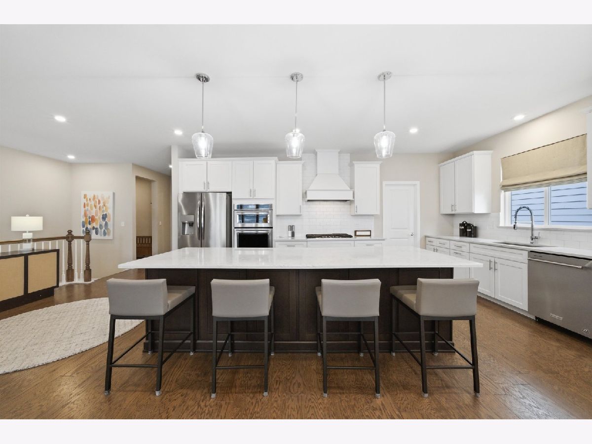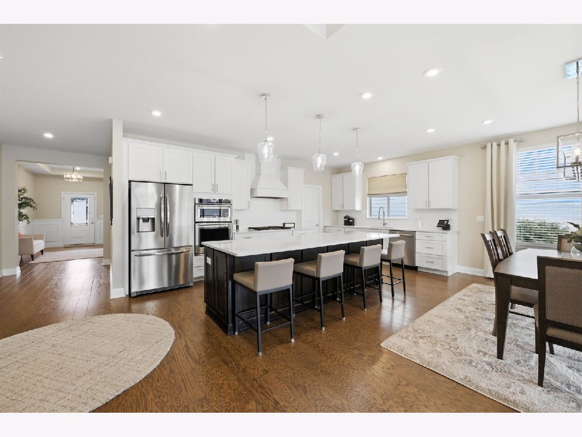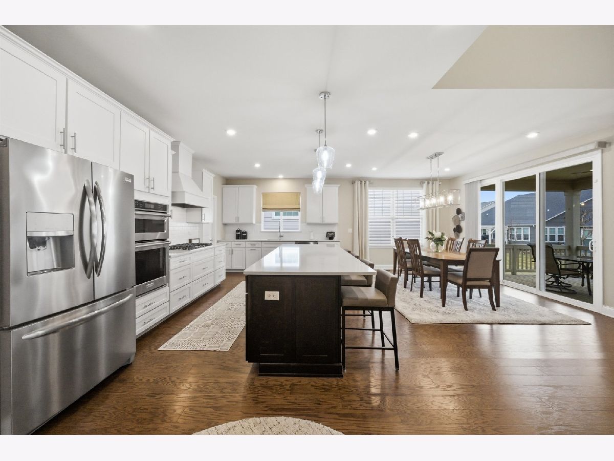 Welcome to the beautifully upgraded Lyon ranch model in the sought-after Loretto Club of south Wheaton. Built by Pulte Homes beginning in 2018-2020 on the former Loretto Convent site, this upscale enclave is ideally situated at the end of Somerset Lane between Chicago Golf Club and Seven Gables Park. Residents enjoy direct walking path access to the park's 66.5 acres of trails, sports fields, and tennis courts, while being just one mile to Danada Square and less than three miles to downtown Wheaton. Located west of Naperville Road and north of Butterfield Road, and served by Wheaton Community Unit School District 200. This spacious single-story home offers open-concept living with numerous upgrades throughout. Highlights include upgraded hardwood flooring, crown molding, tray ceilings, an elevated living room ceiling, and a gas fireplace. The kitchen features a walk-in pantry, quartz countertops, oversized island, KitchenAid gas cooktop, built-in oven and microwave, dishwasher, and Frigidaire Gallery refrigerator. LG washer and dryer are also included. The luxurious primary suite boasts an upgraded spa-style shower with rain showerhead, handheld, and four body sprays. A full unfinished English basement provides excellent storage or future expansion potential. Enjoy morning coffee in the dining area overlooking your covered deck, with views of mature trees, professional landscaping, Seven Gables Park & Chicago Golf Club. The professionally landscaped yard includes a sprinkler system and a new concrete patio perfect for grilling. Custom window treatments and drapes are included throughout the home. Experience low-maintenance living at its finest with HOA-covered lawn care and snow removal in one of Wheaton's most desirable communities.