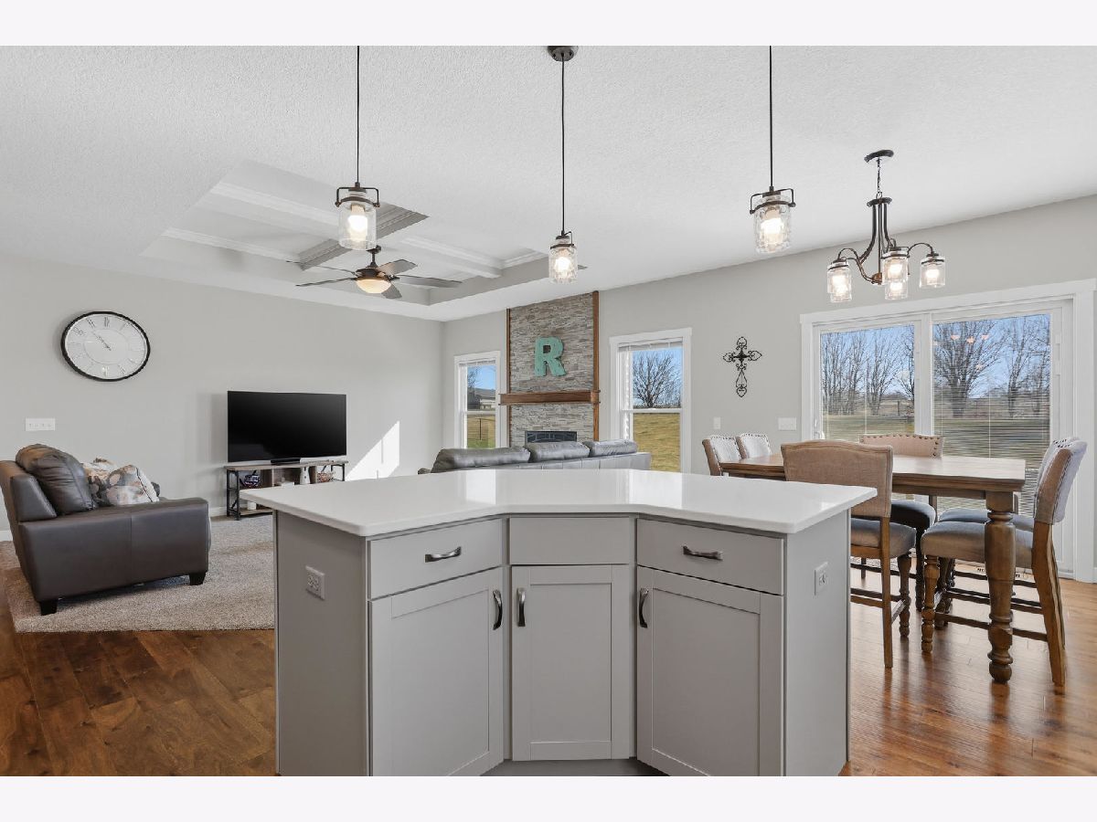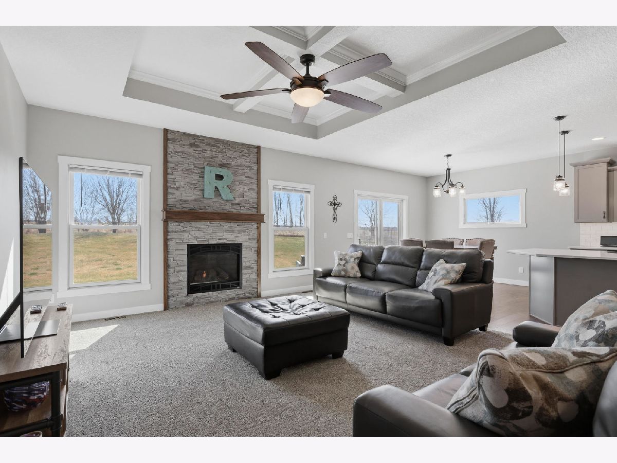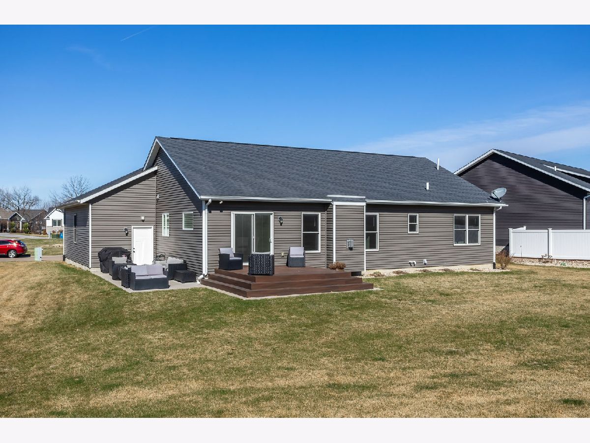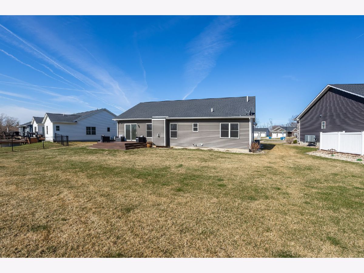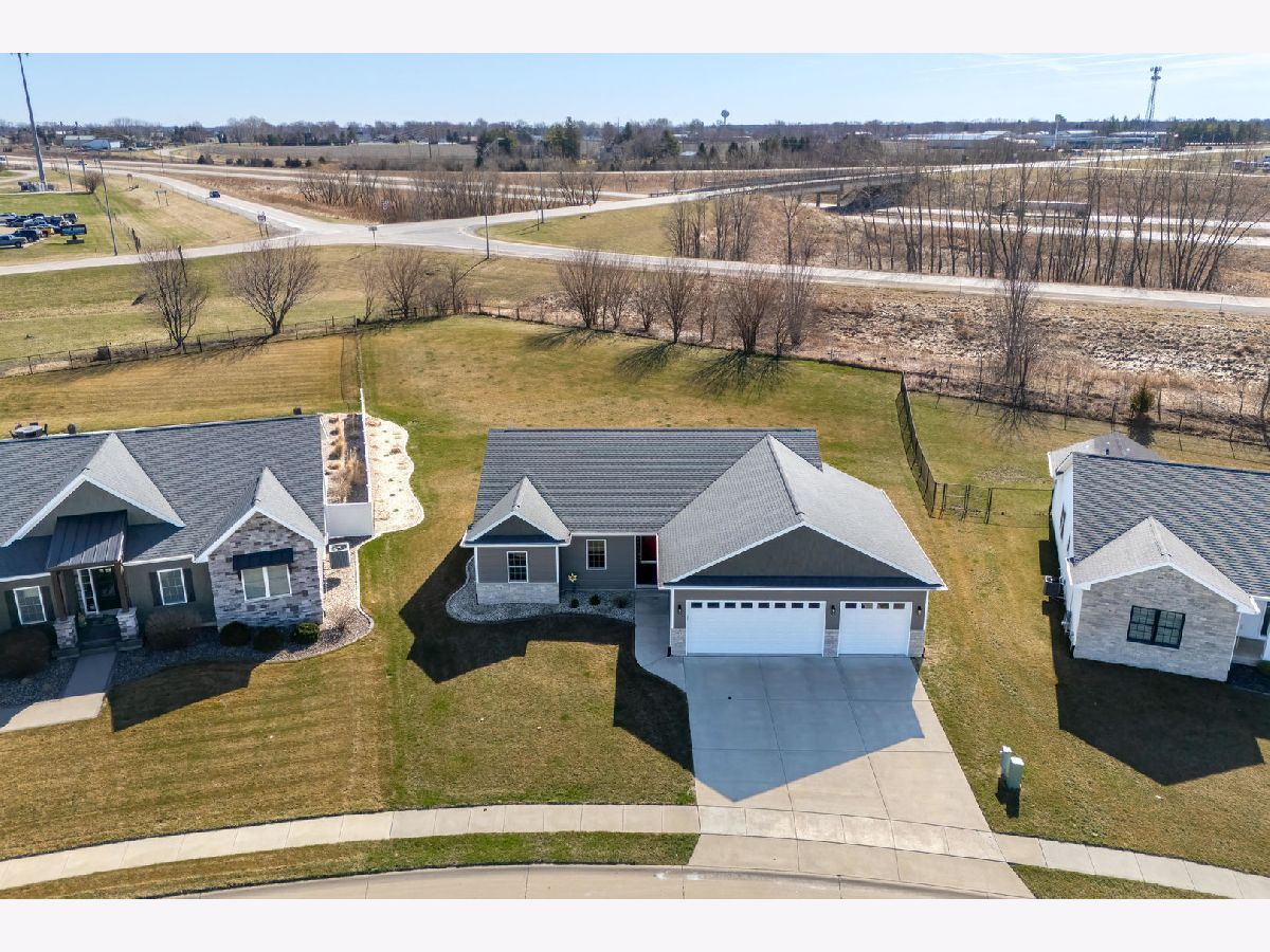 This newer, move-in ready ranch style home offers 4 bedrooms*, 3.5 bathrooms, a 3-car attached garage, and over 2,800 square feet of finished living space on a lot just over half an acre. The open-concept main level features a spacious great room with coffered tray ceilings, a gas fireplace, hardwood flooring, and a curved island that anchors the kitchen and dining areas. A sliding glass door off the dining space leads to a low-maintenance deck and an expansive backyard, providing ample space for outdoor activities. An additional patio on the side of the home connects to the garage service door, offering privacy and added flexibility for outdoor use. You will appreciate the spacious main floor laundry room. Primary suite has a walk-in closet and ensuite bath with dual sinks and a tiled shower. The finished basement expands the living space with a large recreation room, wet bar with refrigerator, a 4th bedroom, and a full bathroom. Additional unfinished areas offer room for storage, a home gym, workshop, or future finishing options. The attached 3-car garage features extra-tall ceilings, a 30-foot deep bay suitable for larger vehicles or equipment, and a floor drain. All appliances are included. Located within the Blue Grass Elementary School district. 4th Bedroom is a legal bedroom in the basement with egress. Special Financing Incentives available on this property from SIRVA Mortgage. Schedule your showing today to explore all this home has to offer.