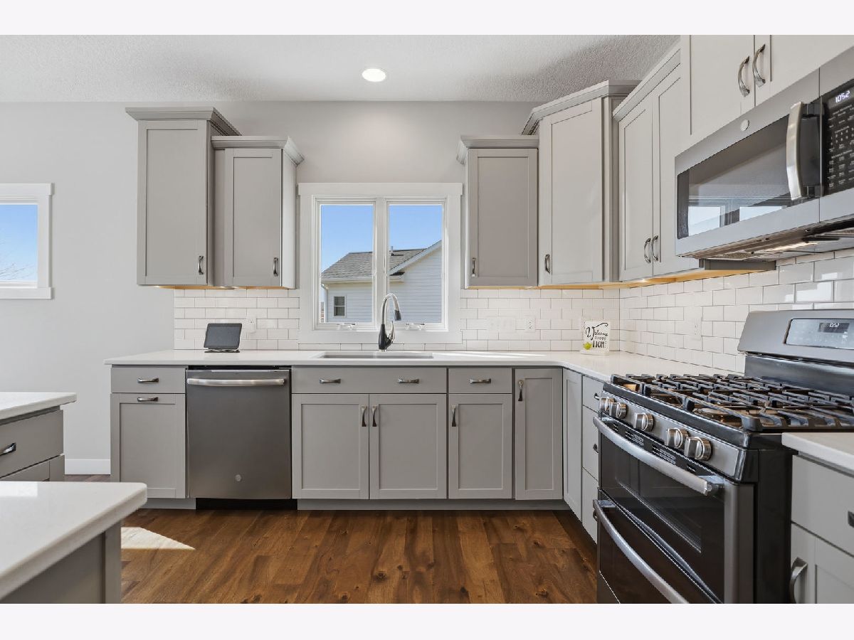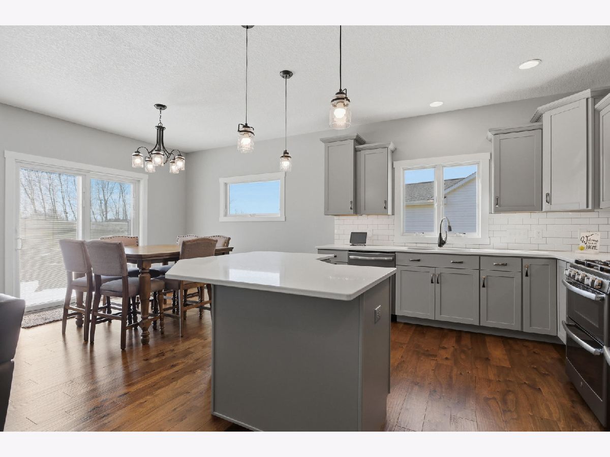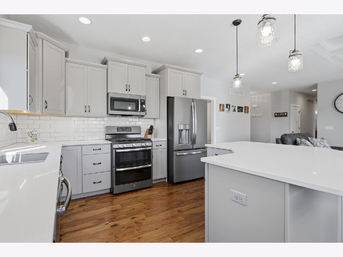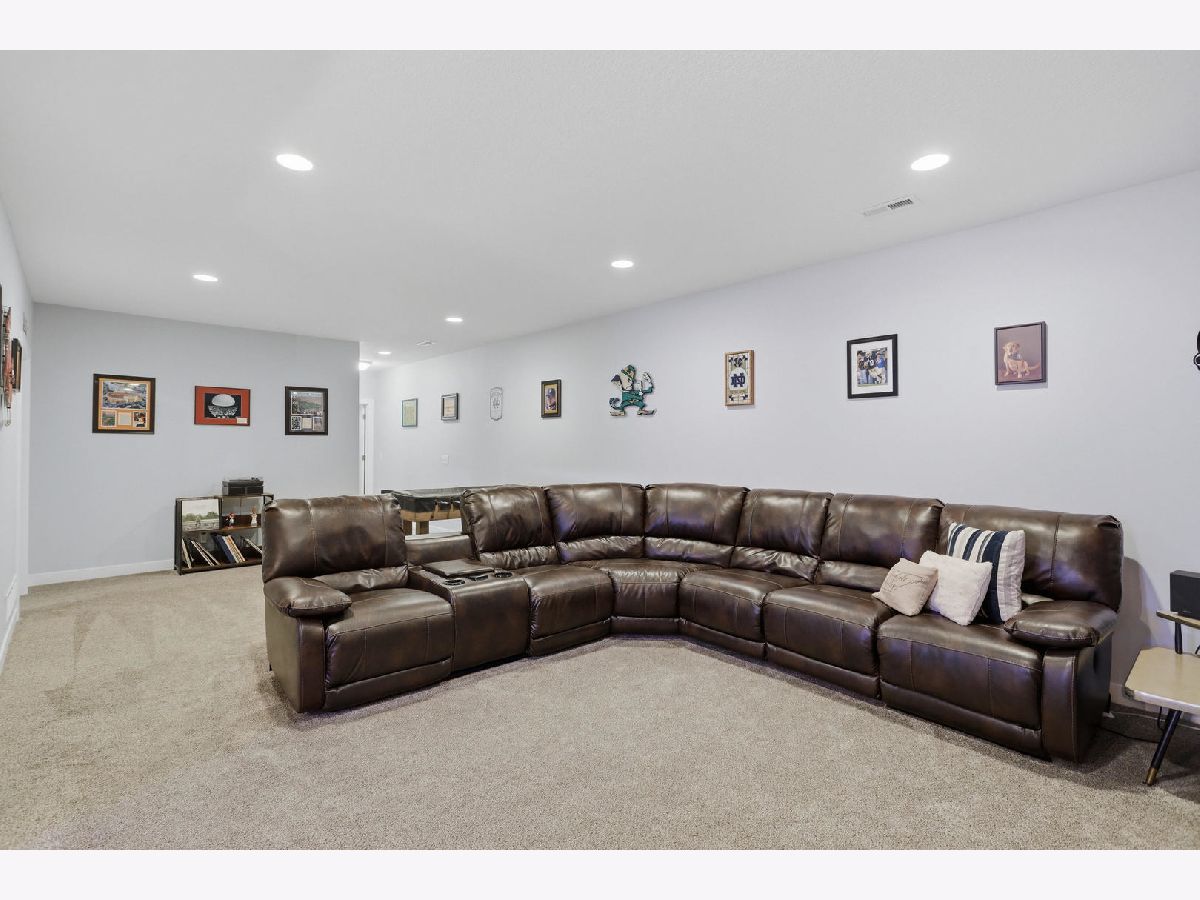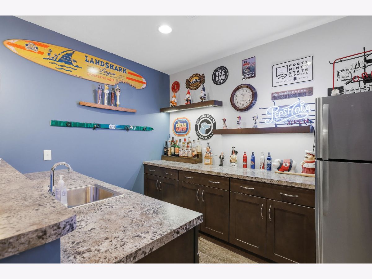 This newer, move-in ready ranch style home offers 4 bedrooms*, 3.5 bathrooms, a 3-car attached garage, and over 2,800 square feet of finished living space on a lot just over half an acre. The open-concept main level features a spacious great room with coffered tray ceilings, a gas fireplace, hardwood flooring, and a curved island that anchors the kitchen and dining areas. A sliding glass door off the dining space leads to a low-maintenance deck and an expansive backyard, providing ample space for outdoor activities. An additional patio on the side of the home connects to the garage service door, offering privacy and added flexibility for outdoor use. You will appreciate the spacious main floor laundry room. Primary suite has a walk-in closet and ensuite bath with dual sinks and a tiled shower. The finished basement expands the living space with a large recreation room, wet bar with refrigerator, a 4th bedroom, and a full bathroom. Additional unfinished areas offer room for storage, a home gym, workshop, or future finishing options. The attached 3-car garage features extra-tall ceilings, a 30-foot deep bay suitable for larger vehicles or equipment, and a floor drain. All appliances are included. Located within the Blue Grass Elementary School district. 4th Bedroom is a legal bedroom in the basement with egress. Special Financing Incentives available on this property from SIRVA Mortgage. Schedule your showing today to explore all this home has to offer.