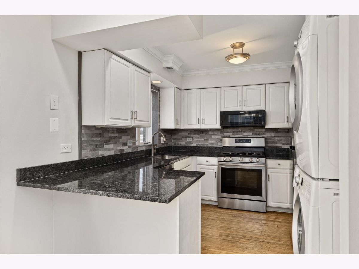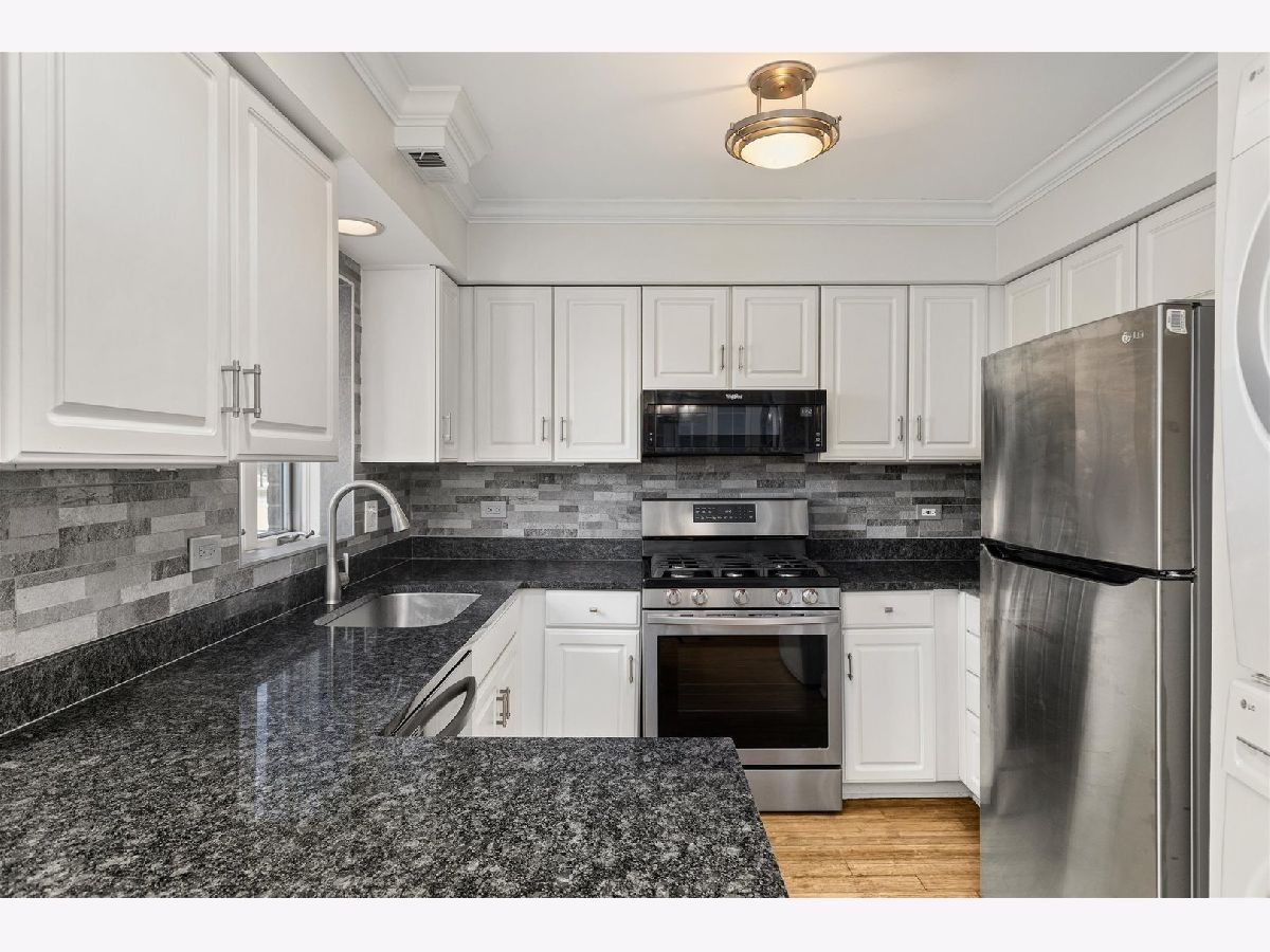 Nestled next to the peaceful greenery of Veteran's Park, this owner-occupied condo building offers a serene retreat the moment you arrive. This second floor unit is situated on the north side of the building with only one shared wall, perfect for those looking for a private and tranquil space. Step inside to discover a spacious living area featuring custom built-in cabinetry with bookcases, overhead lighting, and stylish crown molding throughout. The updated eat-in kitchen shines with all-new stainless steel appliances, granite countertops, a coordinated backsplash, and a convenient breakfast bar-perfect for casual dining and entertaining. Enjoy your morning coffee or unwind in the evening on your private balcony, overlooking a calm and inviting setting. The generously sized bedrooms include a serene primary suite complete with a walk-in closet and a private bath. Everyday living is made easy with in-unit laundry, a private one-car garage plus additional parking, and a quiet, well-maintained building with longtime residents. Additional highlights include newer mechanicals, all refreshed light fixtures and interior doors, recently updated bathrooms, new wood flooring in the primary bedroom, and a private storage closet on the first floor of the building. Centrally located in North Riverside, you'll have quick access to vibrant shops, restaurants, public amenities, playgrounds, and the recreation center. This home is within the highly sought-after Riverside School District, offering exceptional comfort, convenience, and a welcoming sense of community-a perfect place to settle in and truly feel at home.