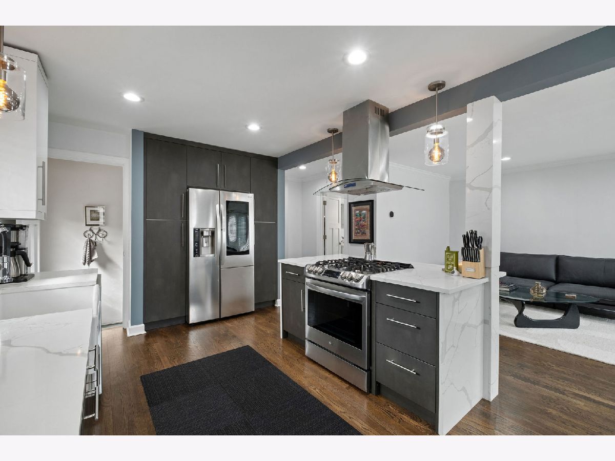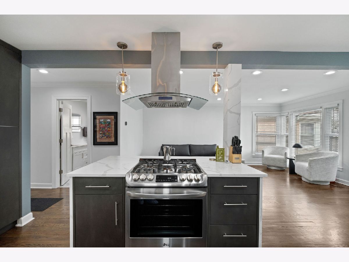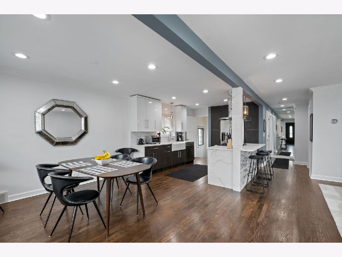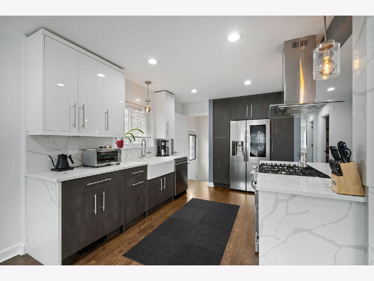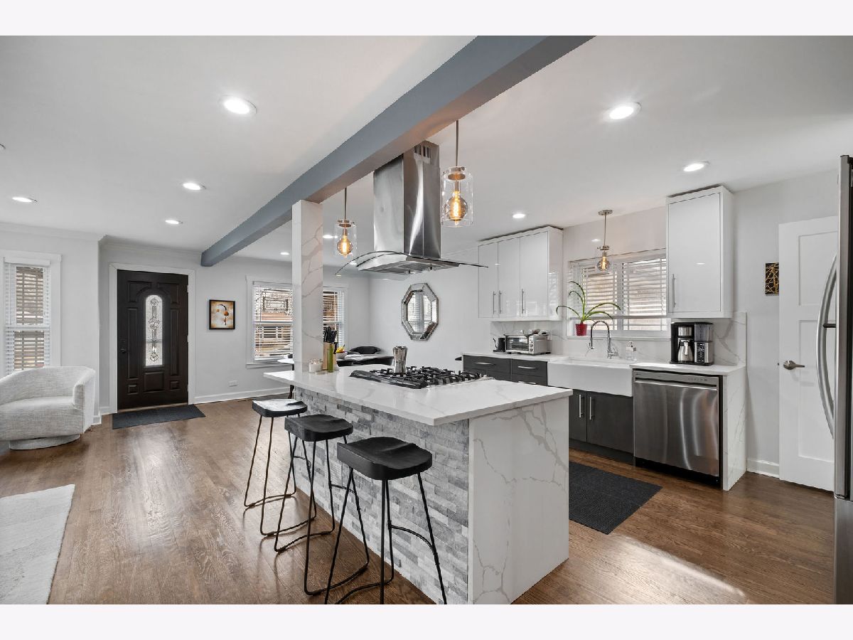 Don't miss this turn-key brick ranch in the heart of Skokie! The charming curb appeal invites you inside to a well-appointed floor plan, with open-concept living and dining areas, rich hardwood floors and recessed lighting. Prepare meals in style in the designer kitchen, featuring modern cabinetry, quartz countertops and backsplash, stainless steel appliances, farmhouse sink, and functional center island. Two comfortable bedrooms and a spa-inspired bath complete the main level. Host family and friends in the finished basement, which offers a generous family room, a convenient kitchenette, a 3rd bedroom, another full bath, and a laundry room with storage. Outside, relax on the large concrete patio or under the new pergola, overlooking the oversized lot with a stylish cedar privacy fence, manicured landscaping with perennial foliage and bonus shed. Recent updates include a new furnace and water heater 2025, appliances and windows 2021, providing peace of mind for years to come. Centrally located and close to shopping, dining, parks, schools, public transportation, and easy interstate access. Just move in and start making memories!