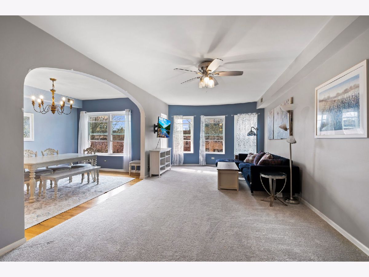 Stunning 2000sf 3bed/2bath condo. Hardwood floors throughout... INCLUDING HARDWOOD UNDER THE LIVING ROOM CARPET!!! Lovely, large living-room with new front lintels and new dining/living room Windows (2022) allowing tons of natural light. Open kitchen layout leads to a dining room plenty large for your holiday dinner parties. Extra-large kitchen with tons of cabinets and plentiful counter space to prepare all your favorite dishes. New Stainless dishwasher (Nov 2025), Stainless Samsung Refrigerator 2018, Stainless Oven (APR 2025) with VENTED range hood. New Furnace & AC (July 2025), Hot Water tank (2020) and kitchen plumbing upgrade (2025)! Two impeccable bathrooms with linen closets. Tons of closet space. Stacked Laundry in the hallway! Long hallway, perfect art gallery for your favorite art pieces. Fantastic 9x8 back deck with rolling blinds for privacy, Common area Meeting/party room in the basement, and an ASSIGNED PARKING SPACE is INCLUDED, along with an allotted Large Storage 7'x11.5' in the common area! The building does NOT allow rentals, it is 100% owner occupied. There are no PET restrictions/limits ! Just 3.5 blocks to parks, beaches, and Lake Michigan; 2 blocks to Redline, Purple line, Yellow Line at the Howard CTA Hub; and 3 blocks to Gateway Plaza with Jewel Osco, Marshalls, LA Fitness gym and shops. Award-winning Easy access to Evanston shops, restaurants, and NorthWestern University too. Additional $40/mth for common area maintenance (Not in HOA). PATIO FURNITURE INCLUDED WITH UNIT.