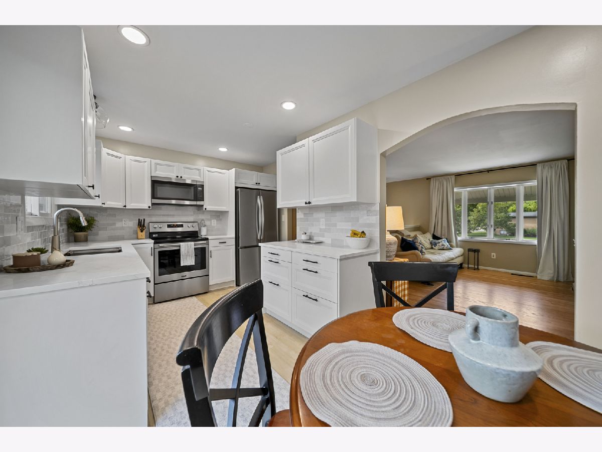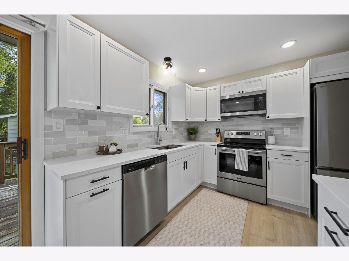 This charming home in the Coventry subdivision of Crystal Lake on a large corner lot has so many updates! Hardwood floors span most of the upper level, including the living room, which is light and airy. The all new kitchen was installed in August 2025 and includes quartz countertops, soft-close drawers, a French-door refrigerator, a custom tile backsplash, and a stainless steel sink with specialty inserts. Three bedrooms on the upper level feature hardwood floors and the full bath has been updated as well. On the lower level, enjoy the spacious family room - there's lots of opportunity for entertaining or relaxing at the end of a long day. A fourth bedroom and second full bath as well as a generous laundry room complete this level. A fully fenced backyard provides lots of space to enjoy, along with a large deck and patio. The siding was replaced in 2022, the 2-stage Trane furnace with Aprilaire humidifier was added in 2024 and the water heater was replaced in 2025. Tucked away in a cozy neighborhood, you're still close to shopping, the Metra train station and great restaurants. You'll love living in this appealingly attractive home!