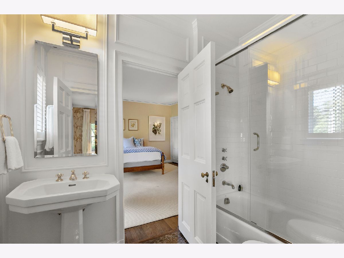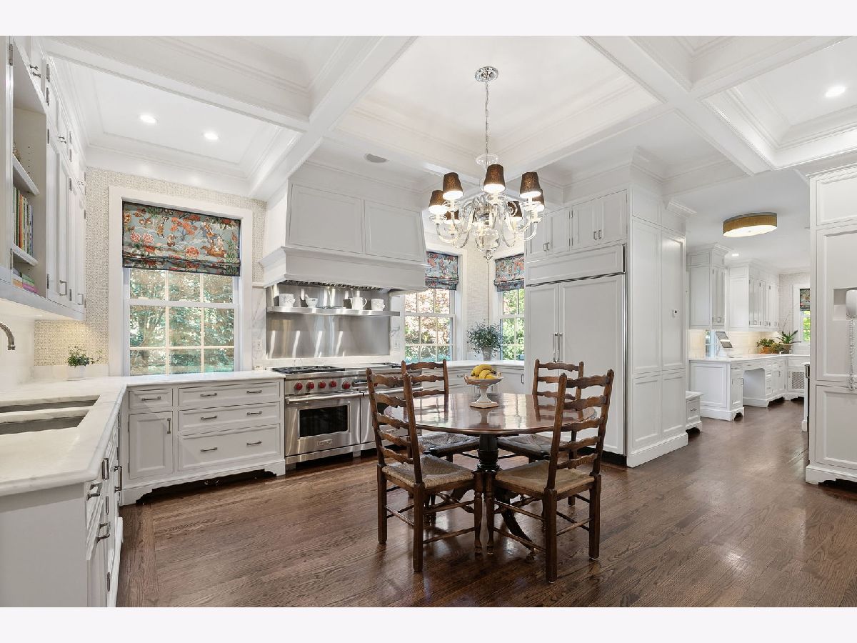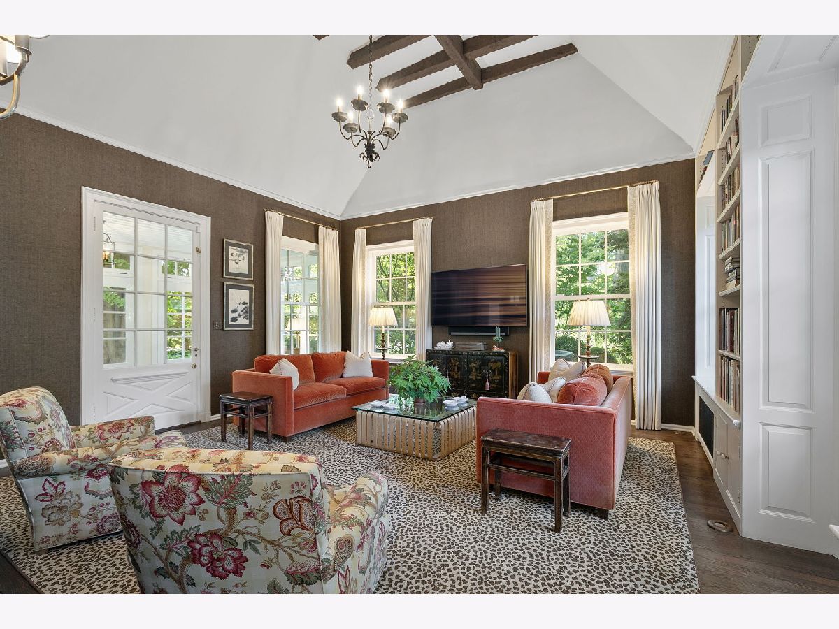 A masterwork of architectural pedigree and refined luxury this exceptional East Lake Forest home blends historic elegance with modern comfort in a premier location. Originally designed in 1923 by acclaimed architect Russell Walcott and artfully reimagined in 2008 by Steven Rugo, the residence offers timeless sophistication perfectly suited for both everyday living and grand entertaining. Secluded from the street, the home captivates with lime-washed brick facade, custom shutters, lush grounds, and a welcoming front porch. Inside, the gracious foyer introduces exquisite millwork, soaring 10-foot ceilings, and original architectural detailing carried throughout. The sun-filled formal living room, anchored by a stately fireplace, flows seamlessly into the inviting family room with vaulted ceiling, custom built-ins, and its own fireplace. The cozy family room opens to private outdoor terraces and a cheerful sunroom which extends the living space, offering the perfect backdrop for relaxed mornings or elegant gatherings. The spacious dining room, ideally scaled for both intimate dinners and large-scale entertaining, also connects effortlessly to the terraces for indoor-outdoor living. At the heart of the home, the renovated chefs kitchen is a true showpiece with coffered ceiling, custom cabinetry, abundant storage, 60" Wolf range/oven, Sub-Zero refrigerator, butler's pantry, and a wet bar with Sub-Zero wine refrigerator and ice machine. The eat-in kitchen opens directly to the bluestone terrace, ideal for grilling. A versatile office/mudroom completes the main level with functional flexibility. A curved staircase with original moldings leads to the second-floor foyer. The primary suite is a serene retreat featuring a sitting area, dual walk-in closets, and a spa-inspired bath with oversized steam shower, soaking tub, and custom cabinetry. Three additional bedrooms, each with renovated en-suite baths and generous closets, complete the second level. The fully renovated(2018) third floor offers endless versatility with a large recreation room, fifth bedroom, and full bath. Throughout the home, oversized Marvin double-hung windows bathe each room in natural light. Outdoors, landscape architect Craig Bergmann designed enchanting gardens, bluestone terraces, and inviting green spaces, including a spa, for year-round enjoyment. Additional highlights include two staircases to the second floor, an attached garage and an unbeatable location, just two blocks from downtown East Lake Forest and three blocks from Lake Michigan. A rare offering of architectural tradition, modern amenities, and impeccably designed grounds, this is truly a home to be cherished for generations.